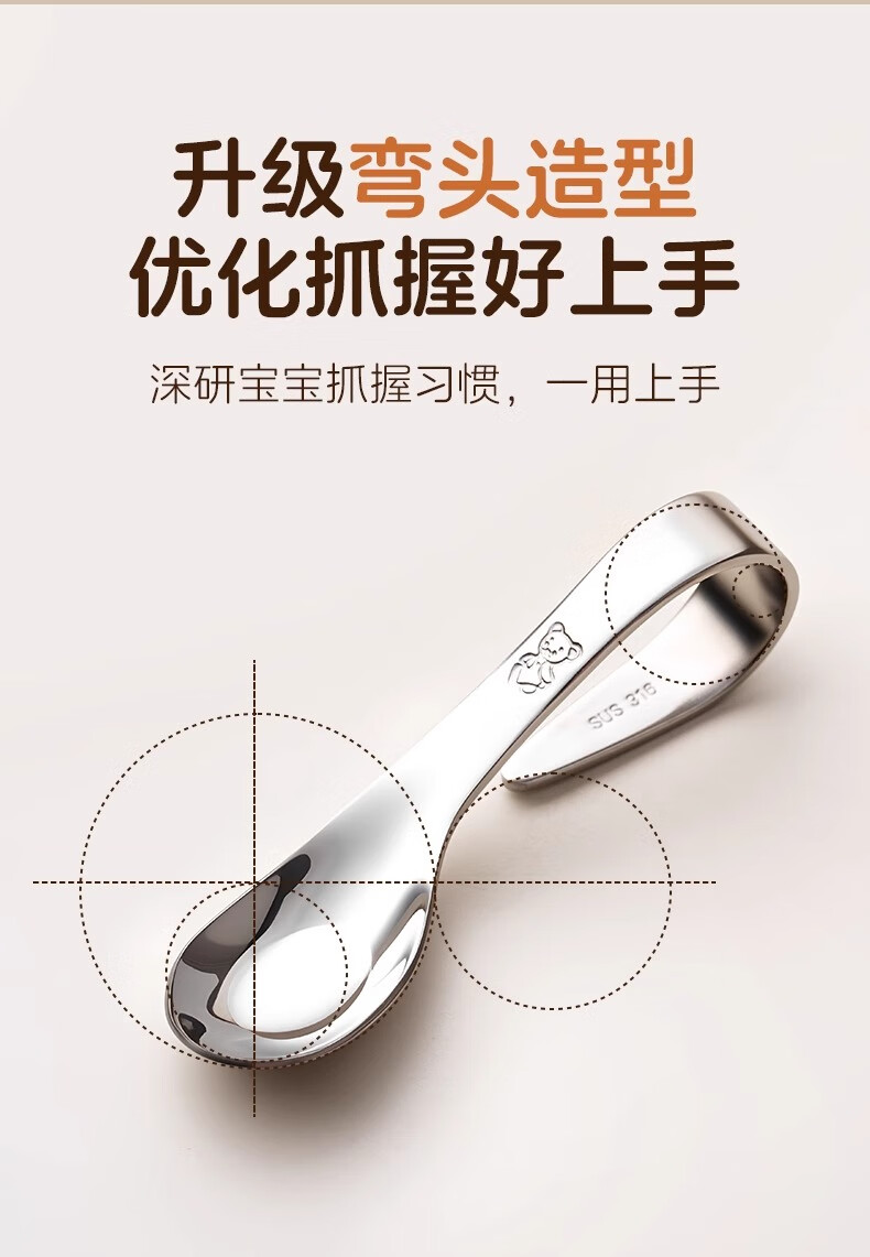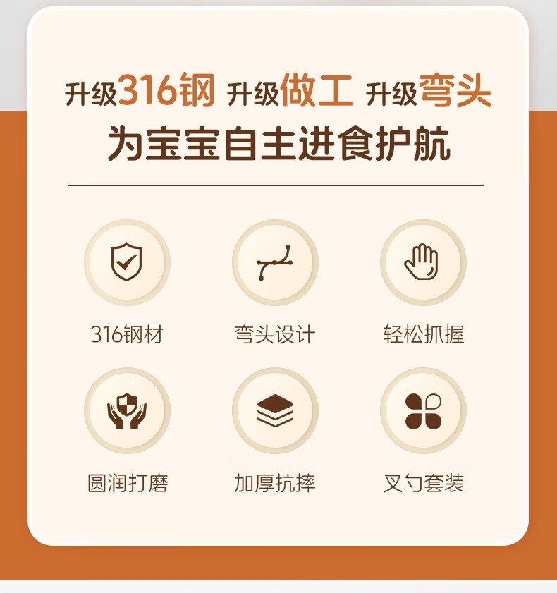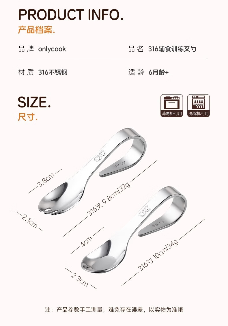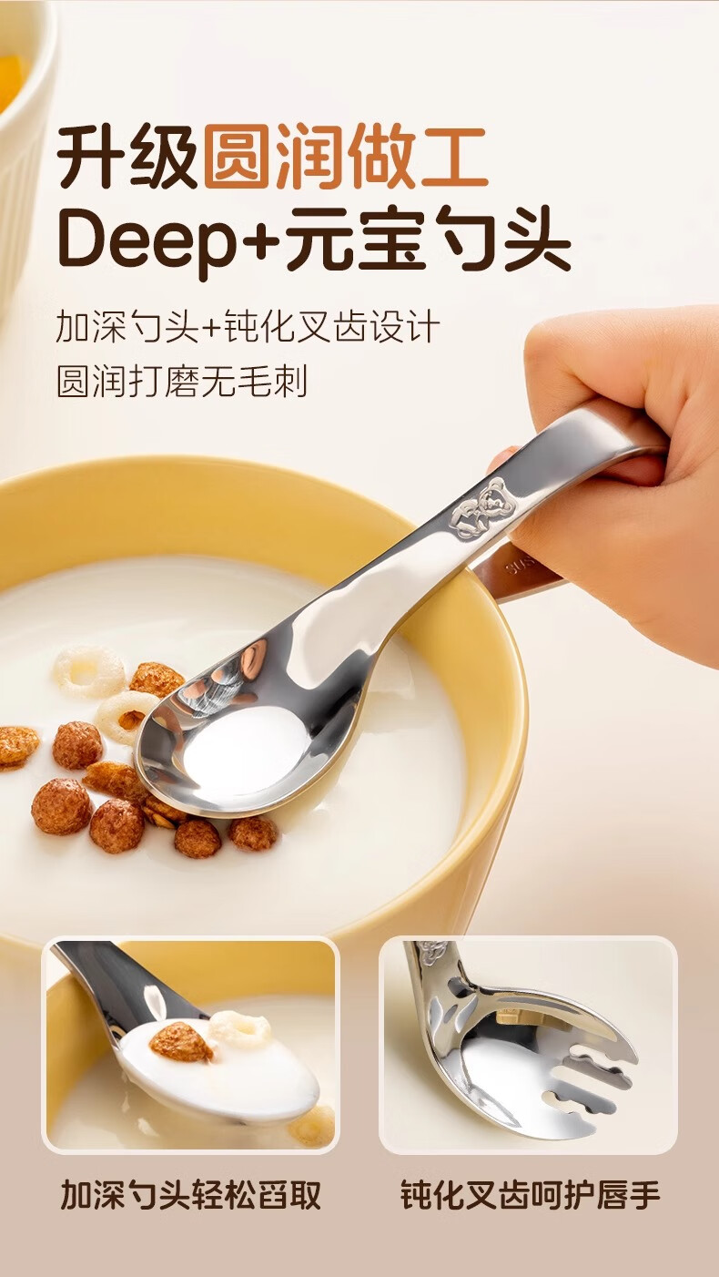 onlycook316不锈钢叉勺 儿童自主进食训练勺子 婴幼儿学吃饭辅食勺