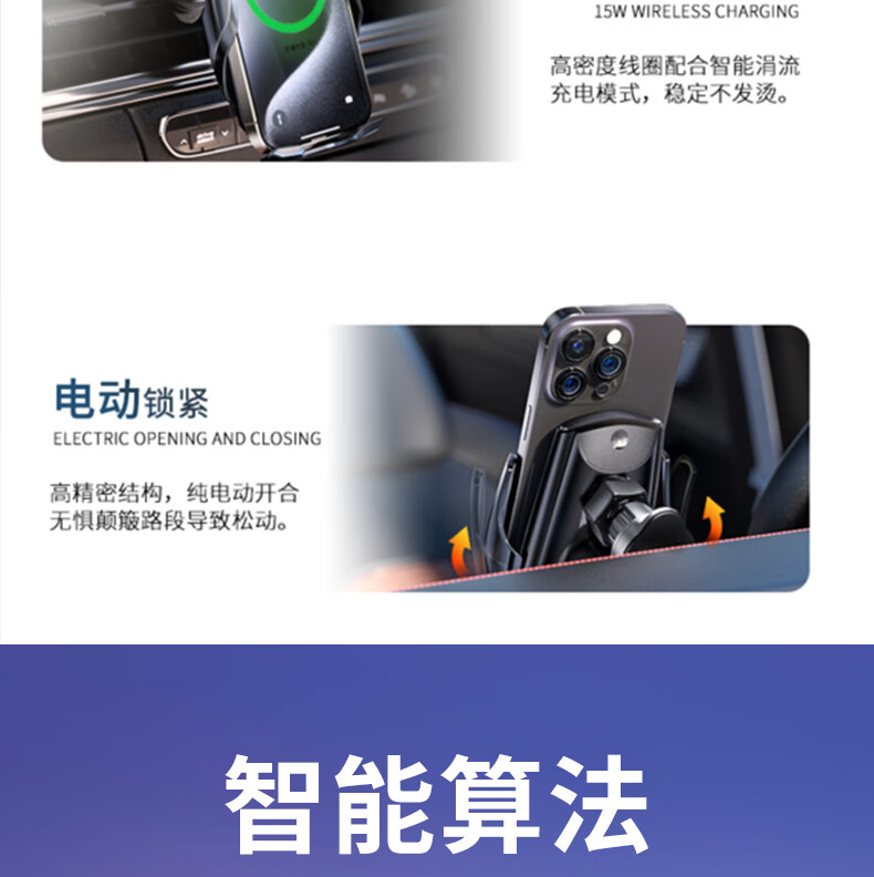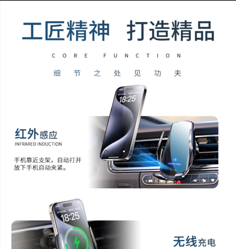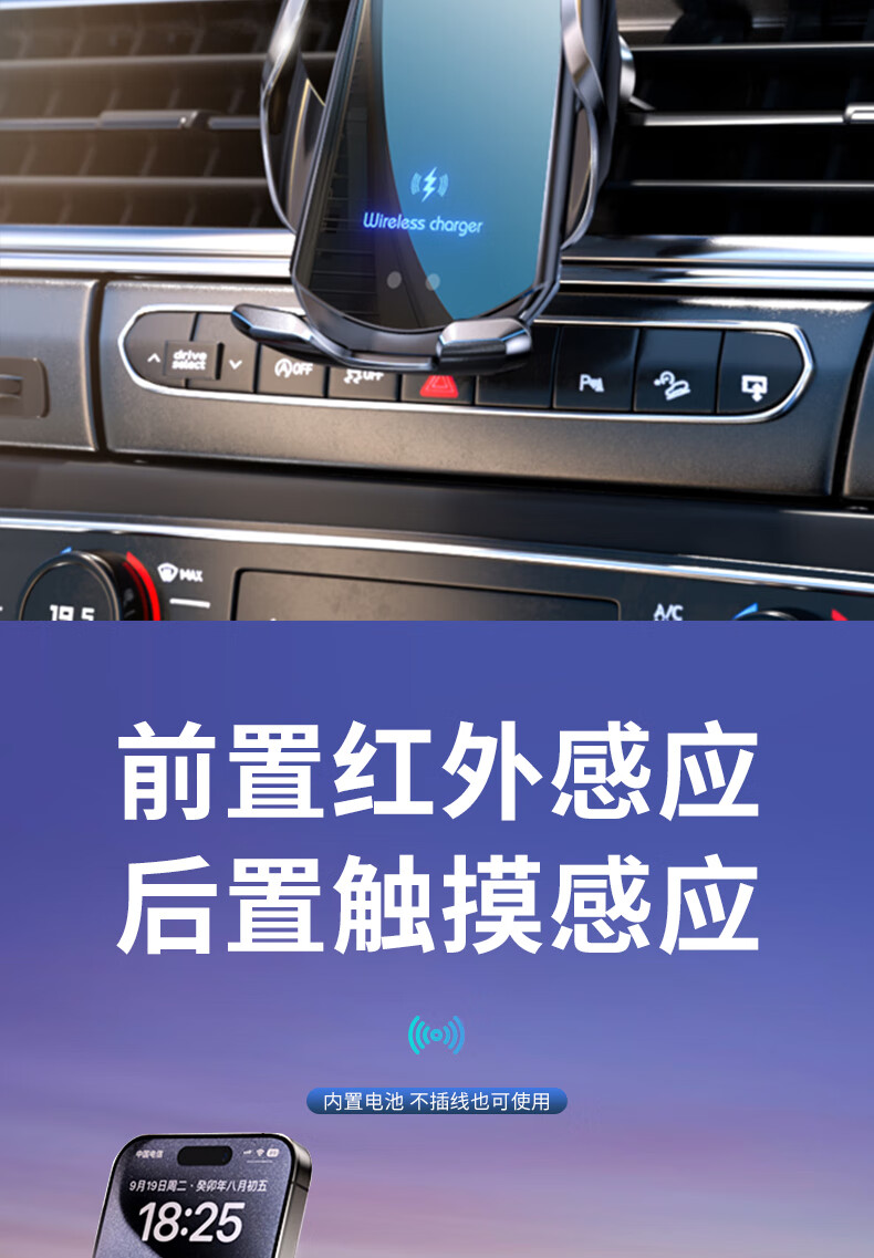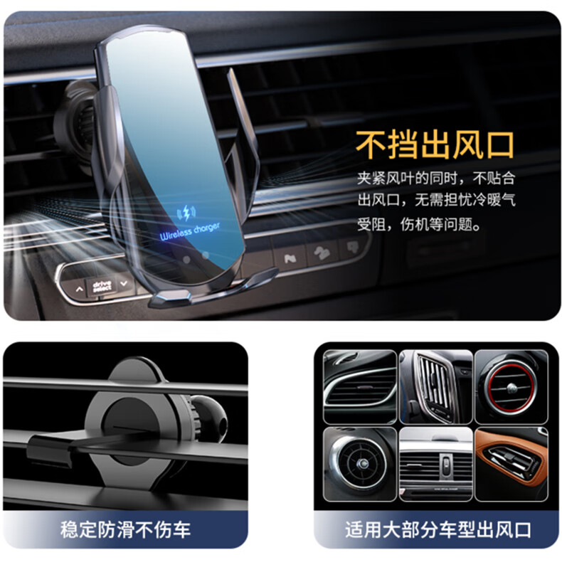 鑫卡威车载手机架支架无线充电器2025新款汽车出风口专用导航固定感应 无线快充-感应开合-内置电池