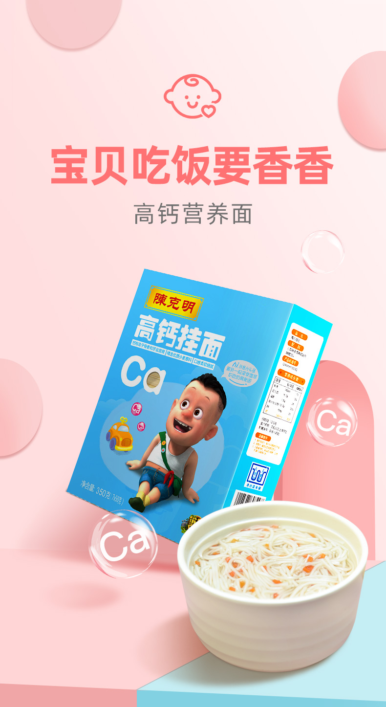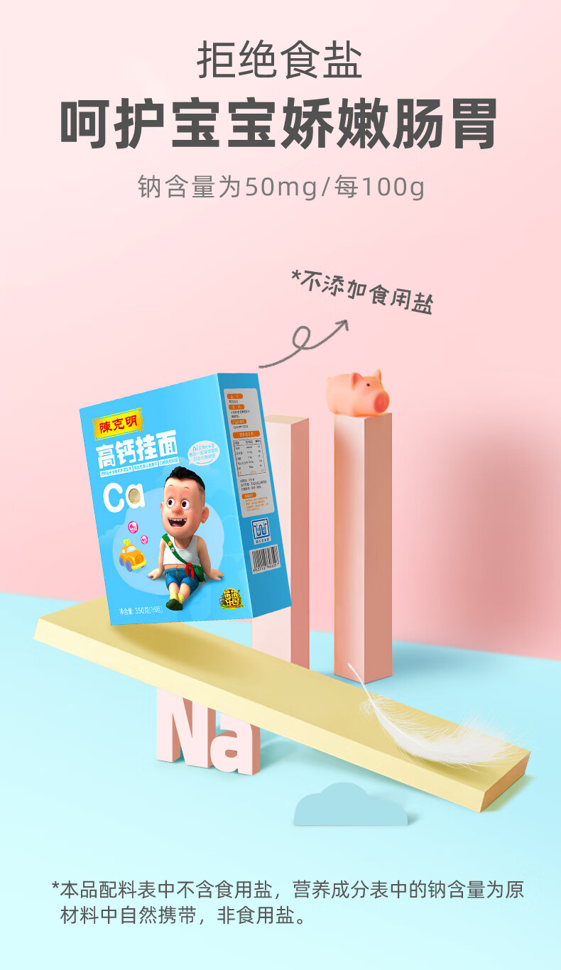 陈克明面条 儿童面高钙面350g 不添加食盐易消化 儿童营养挂面