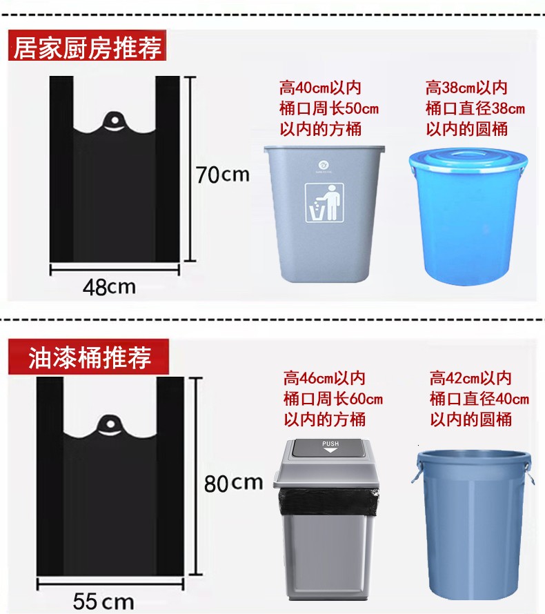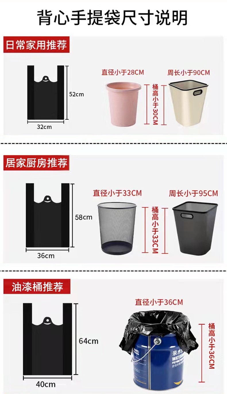 凡趣100只 垃圾袋家用加厚普通大中小号办公酒店手提背心式黑色塑料袋 40*64cm(加厚款)100个