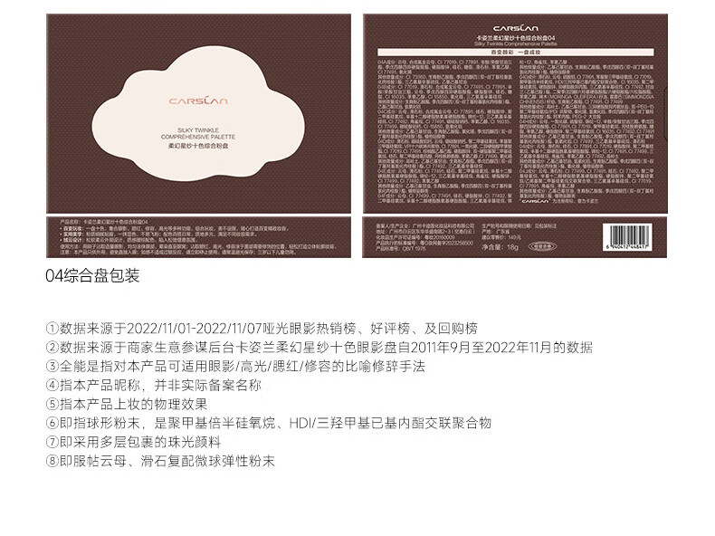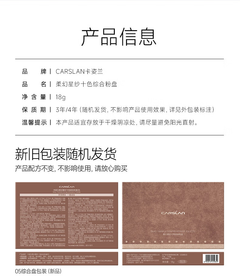 卡姿兰(Carslan)十色眼影盘一盘多用大地色眼影腮红高光修容鼻影盘01#18g新年礼物