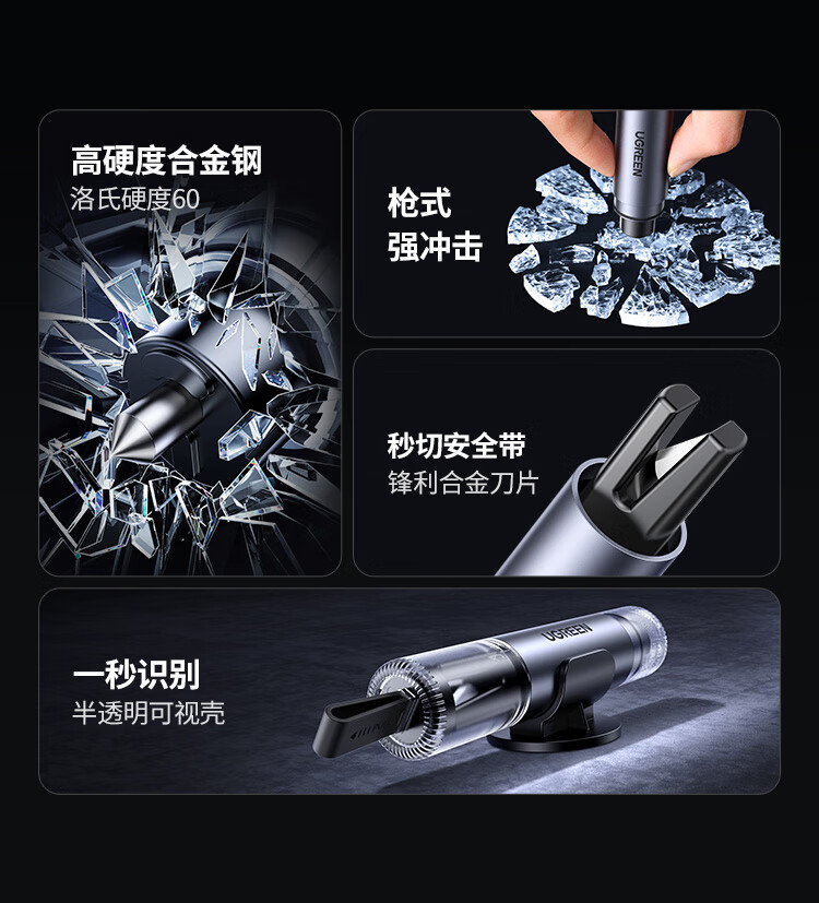 绿联破窗神器汽车逃生安全锤车载救生锤大冲力安全带切割车载应急救援