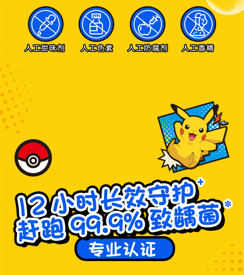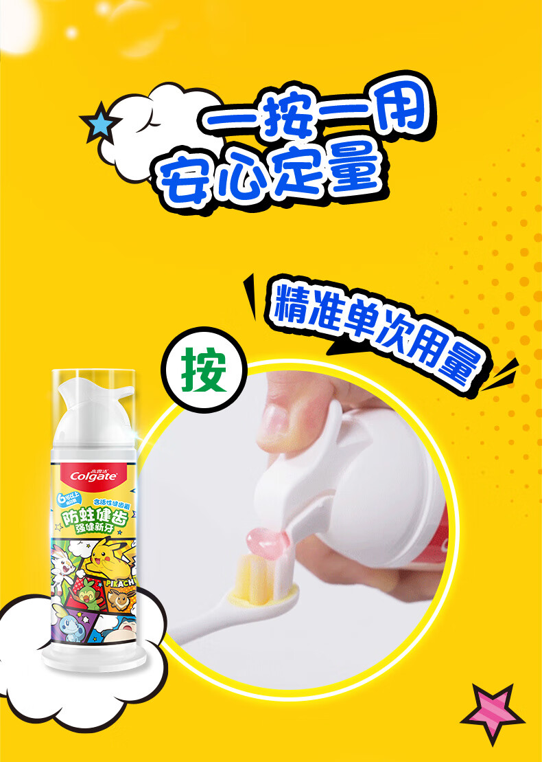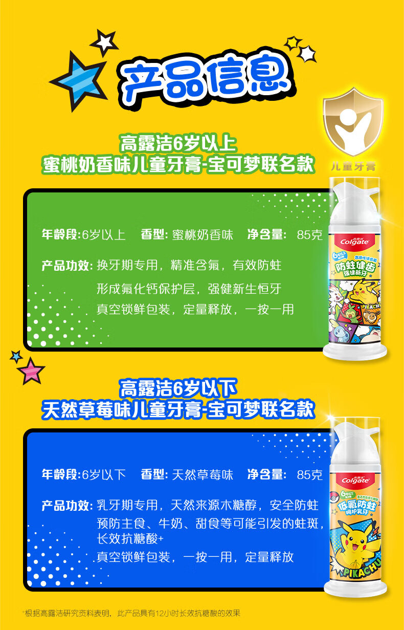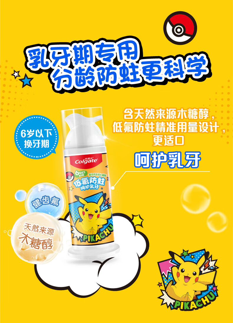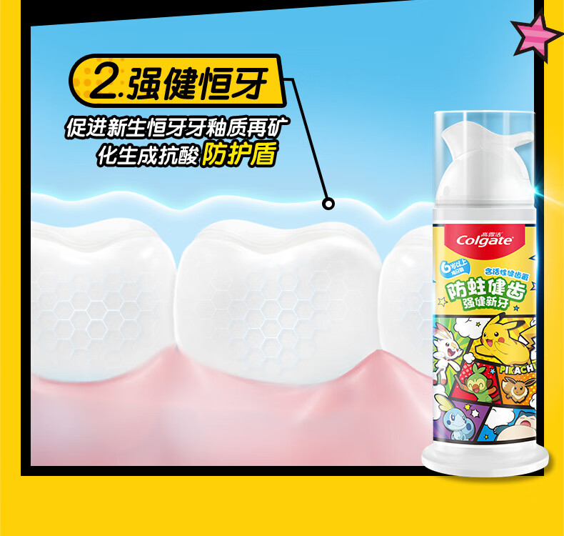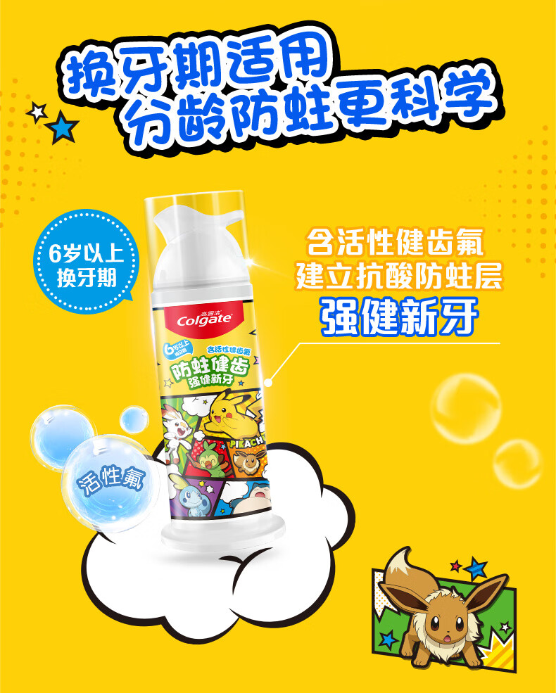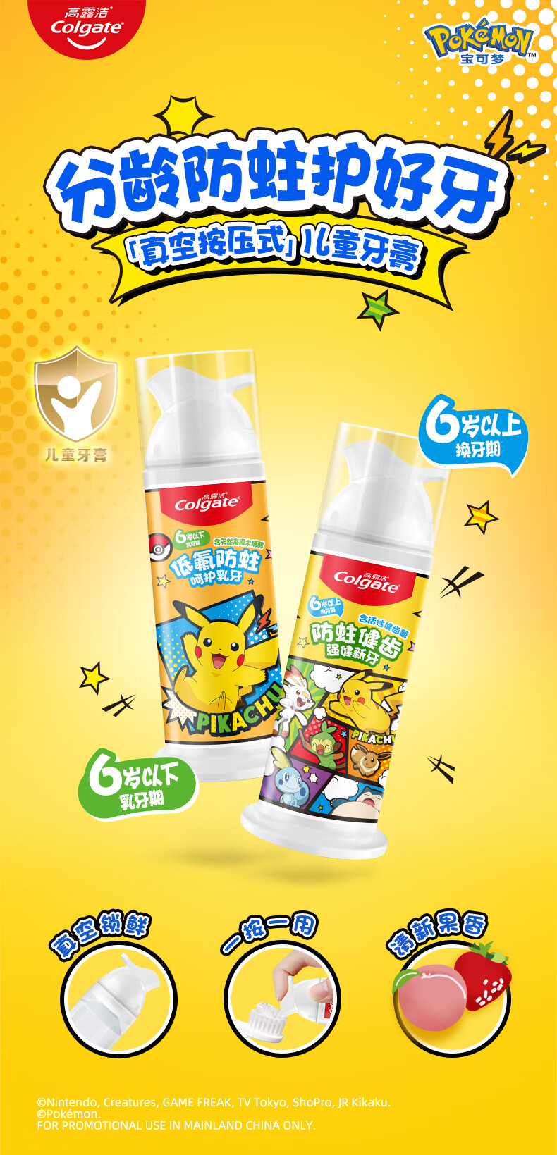 高露洁(Colgate)【好评金榜】宝可梦儿童牙膏6-12岁防蛀含氟按压青少年牙膏85g