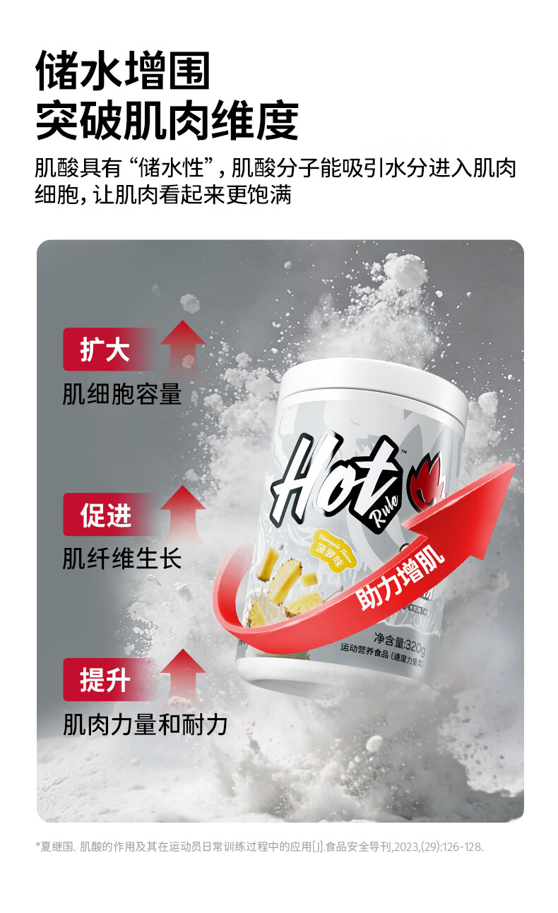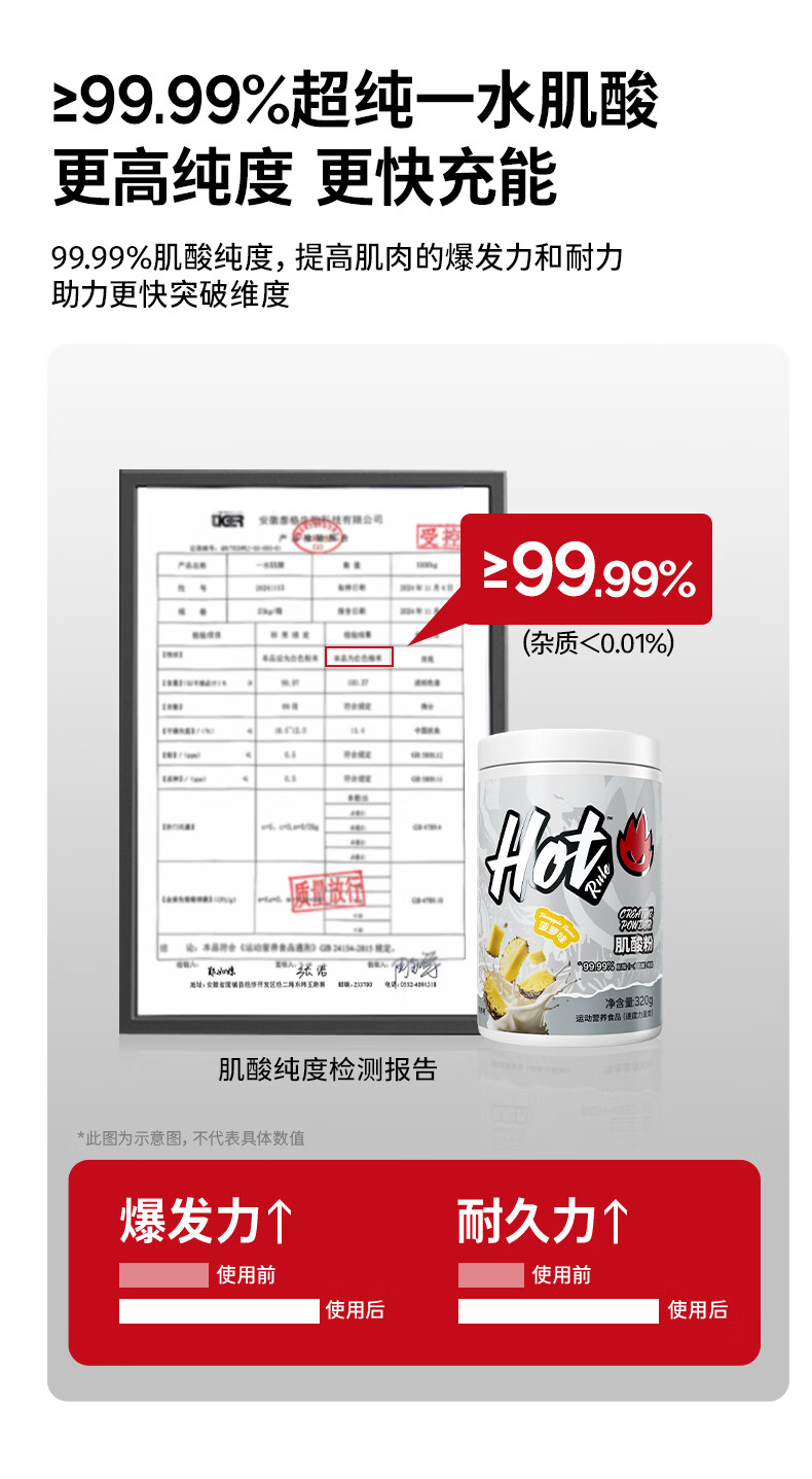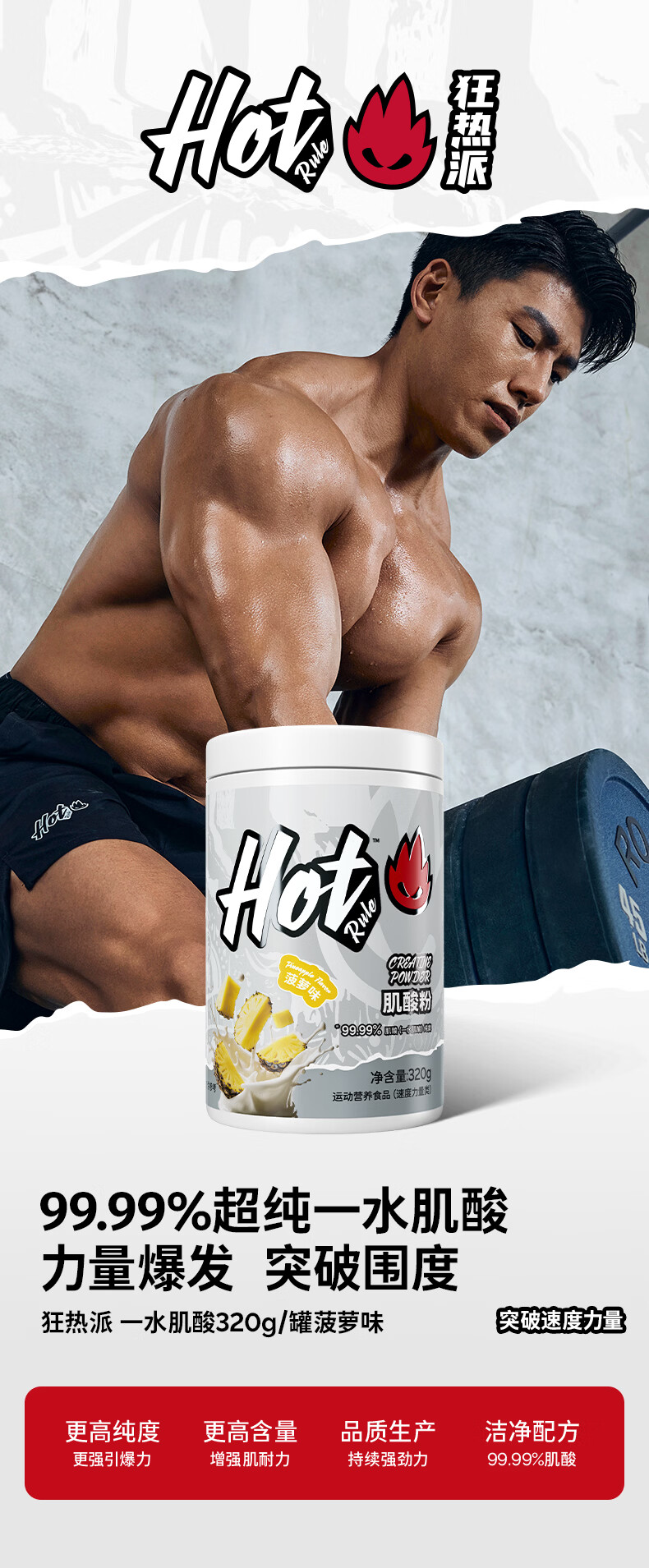Hot Rule一水肌酸99.99%高纯度锌镁肌酸粉马拉松爆发耐力健身人士营养补剂 【100%德国Creapure肌酸】 300g*1罐
