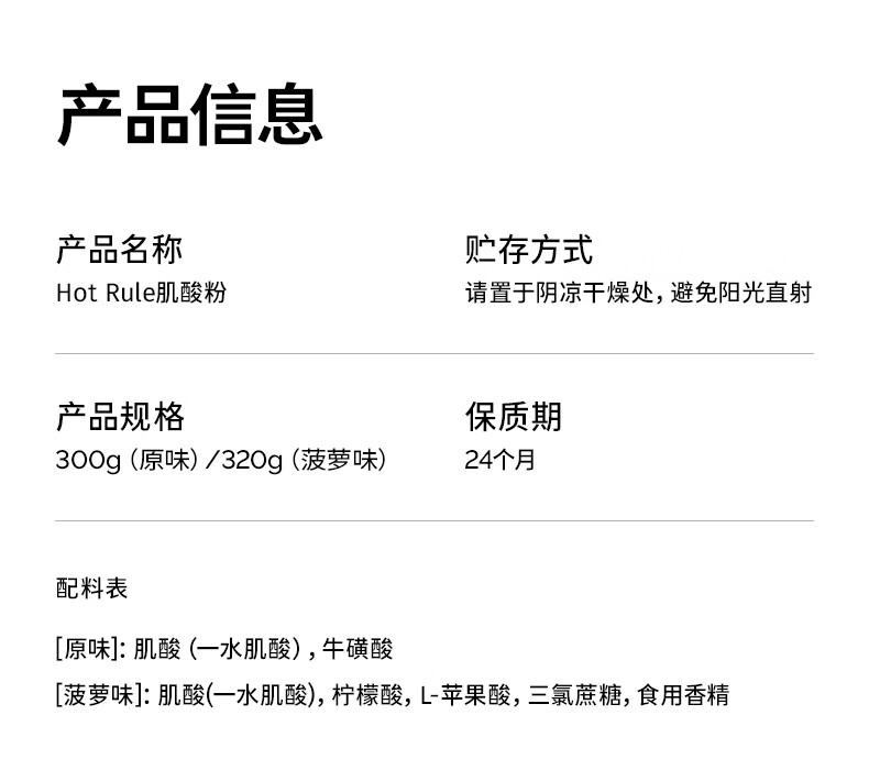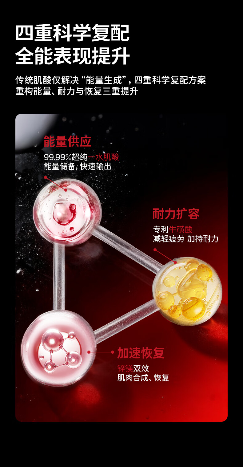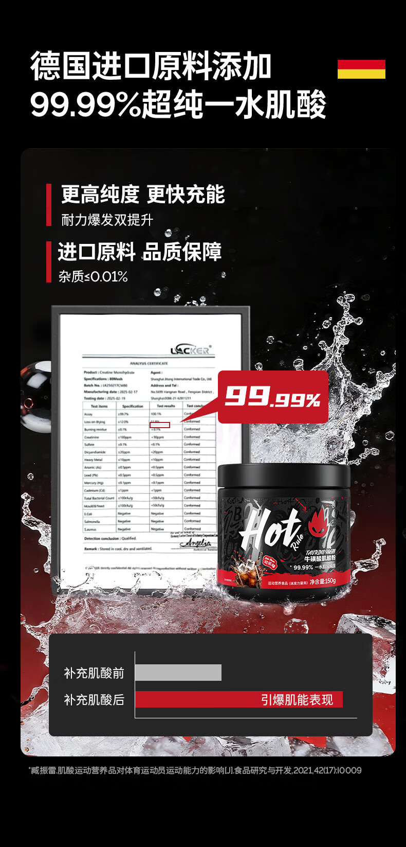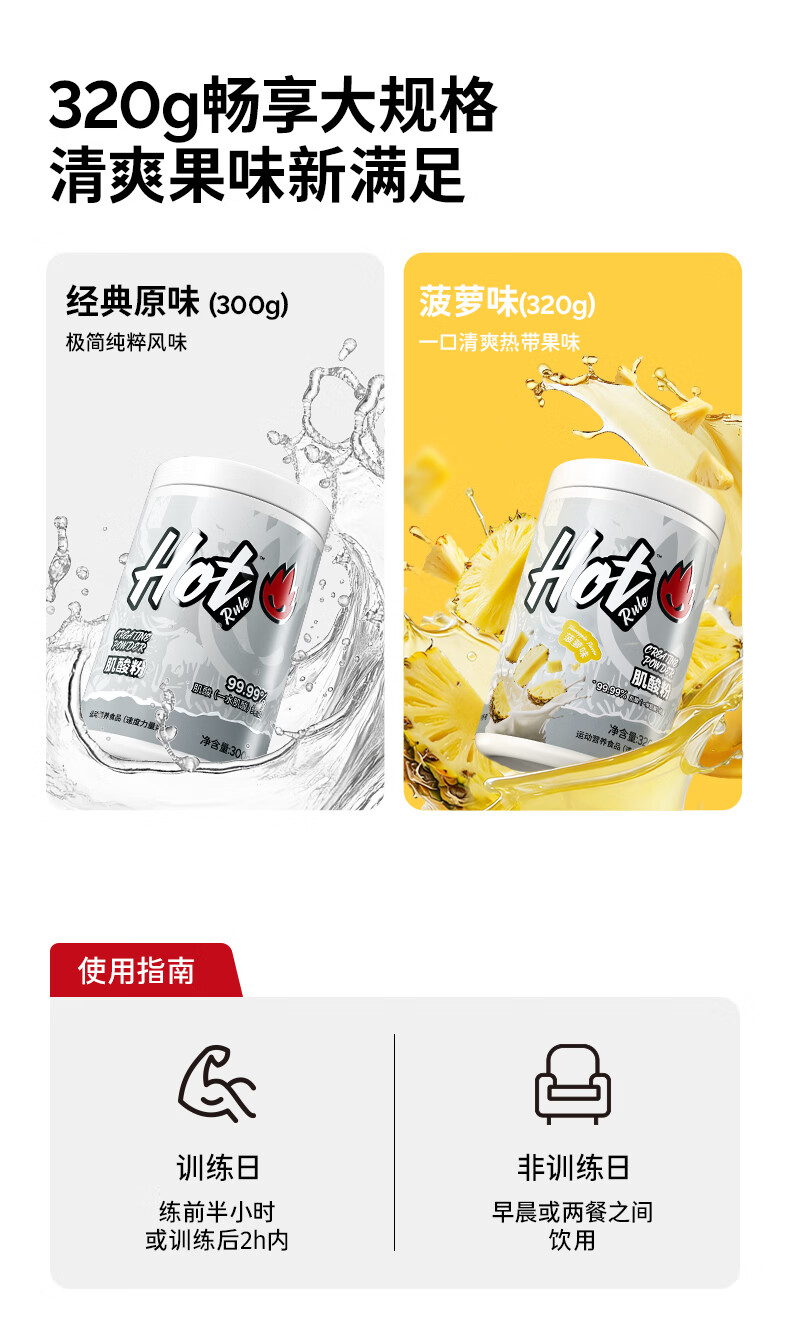 Hot Rule一水肌酸99.99%高纯度锌镁肌酸粉马拉松爆发耐力健身人士营养补剂 【100%德国Creapure肌酸】 300g*1罐