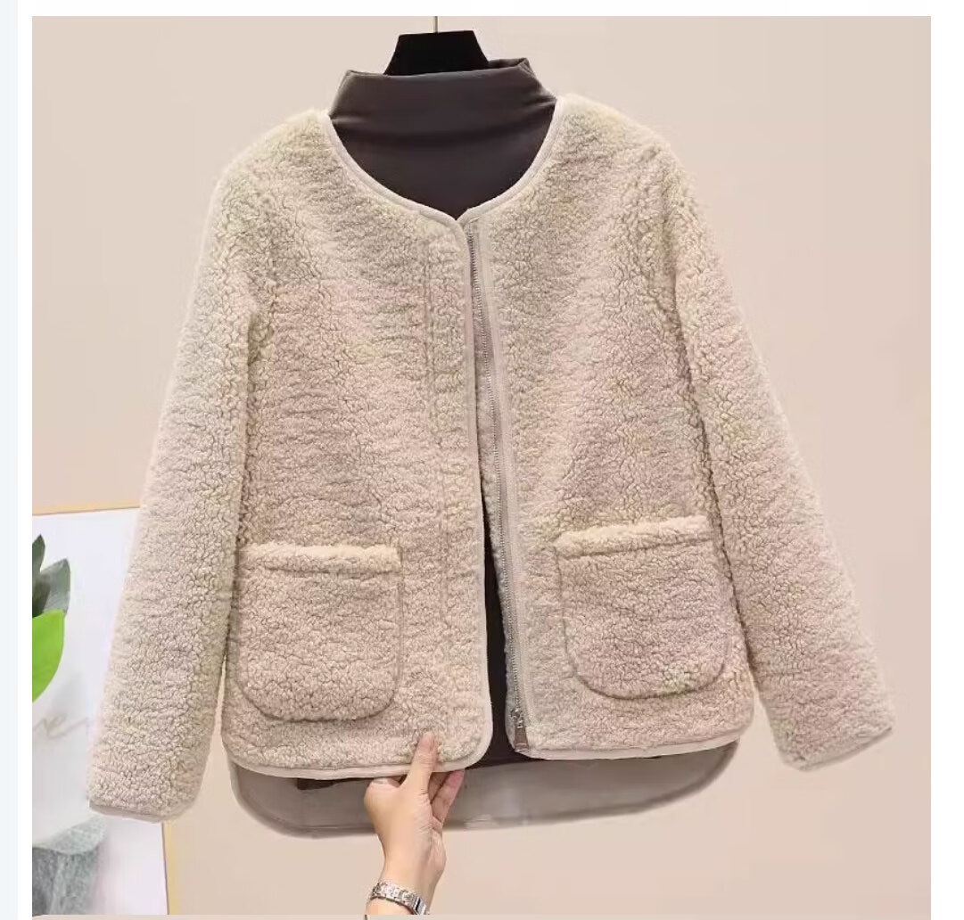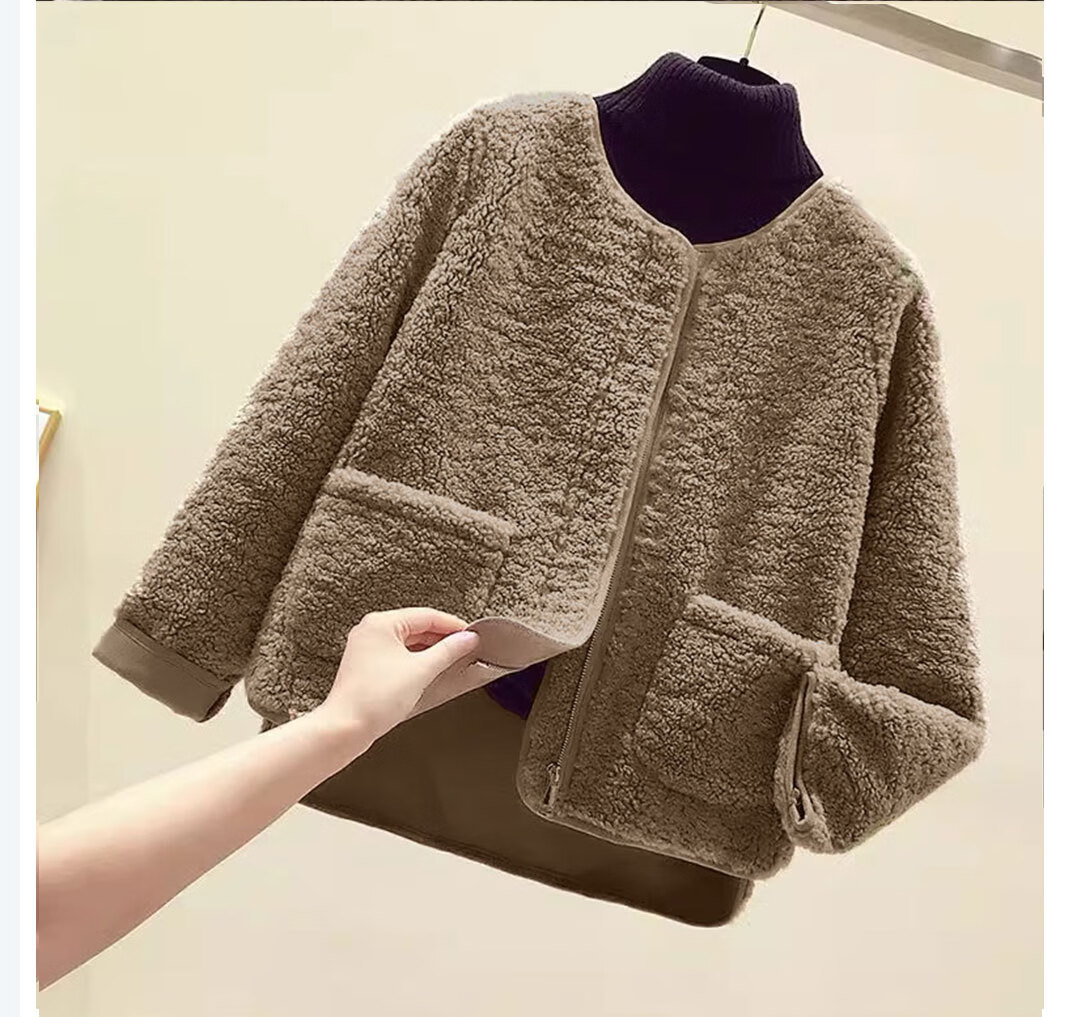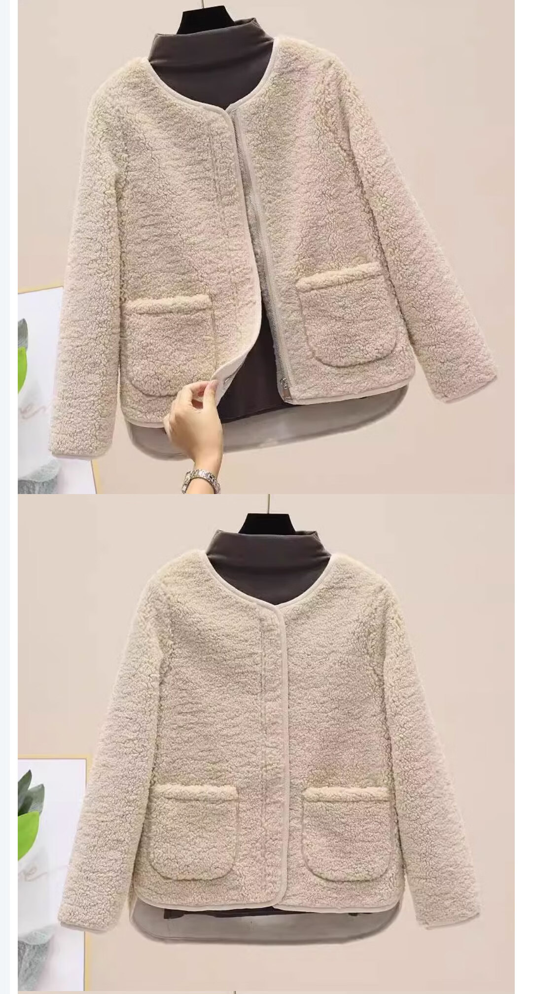 子牧棉麻秋冬装 女韩版百搭上衣百搭显瘦加厚开衫外套8095 杏色 均码 (建议95-145斤)