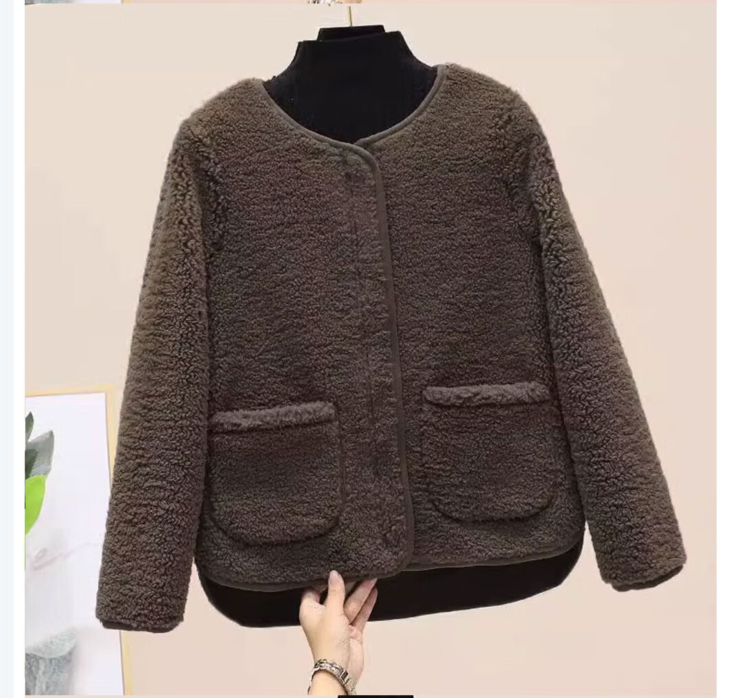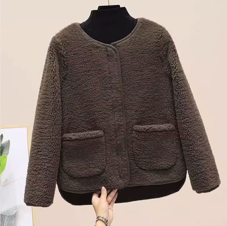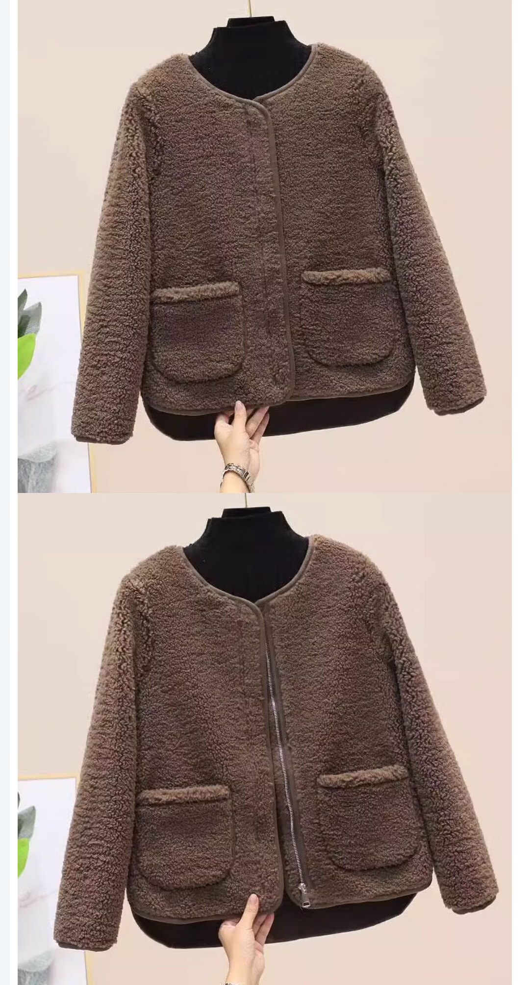 子牧棉麻秋冬装 女韩版百搭上衣百搭显瘦加厚开衫外套8095 杏色 均码 (建议95-145斤)