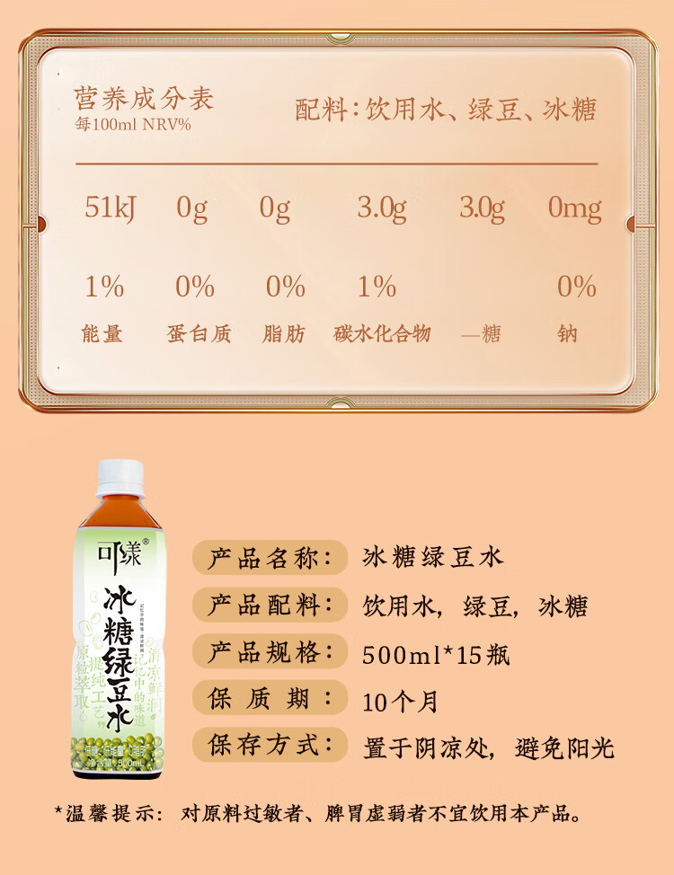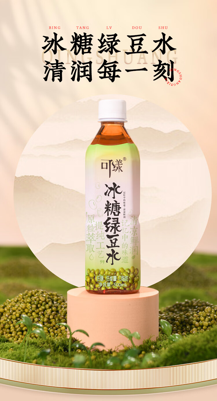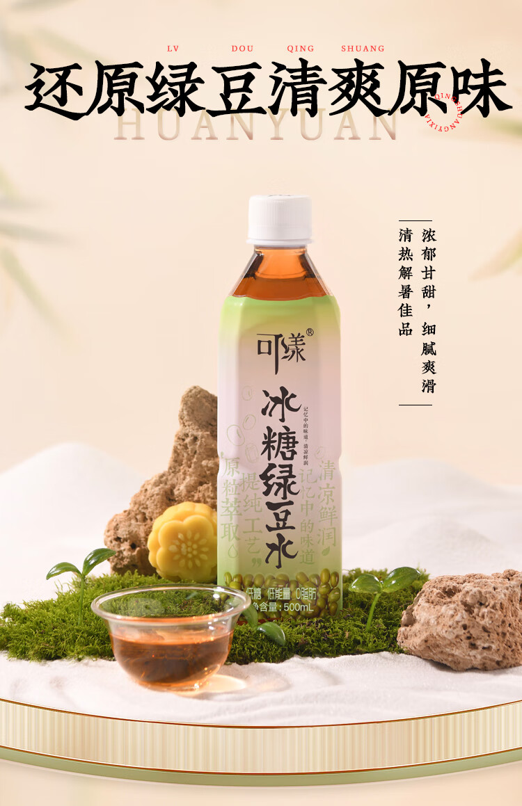 可漾张若昀同款500ML*15瓶冰糖绿豆水风味饮品夏日解暑绿豆饮料 冰糖绿豆水1箱(500ml*15瓶)