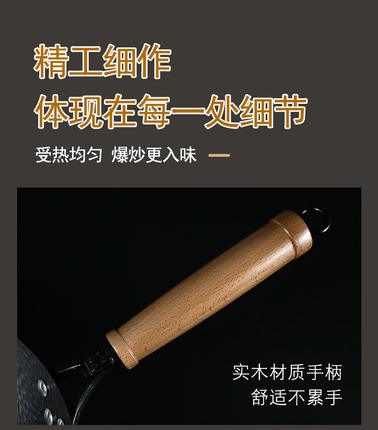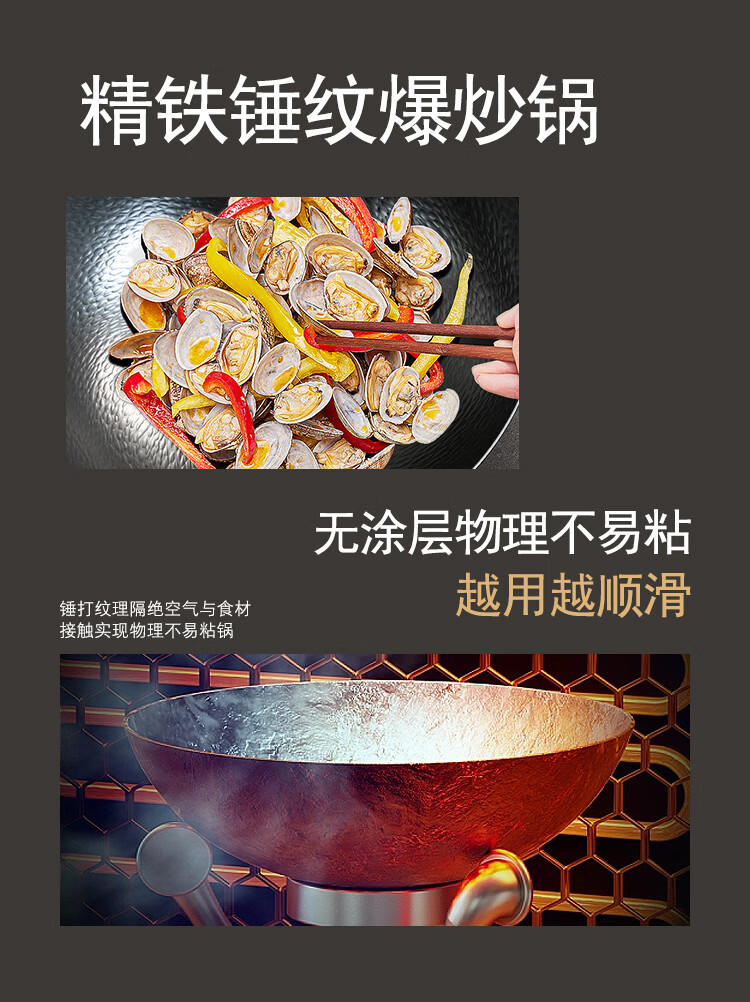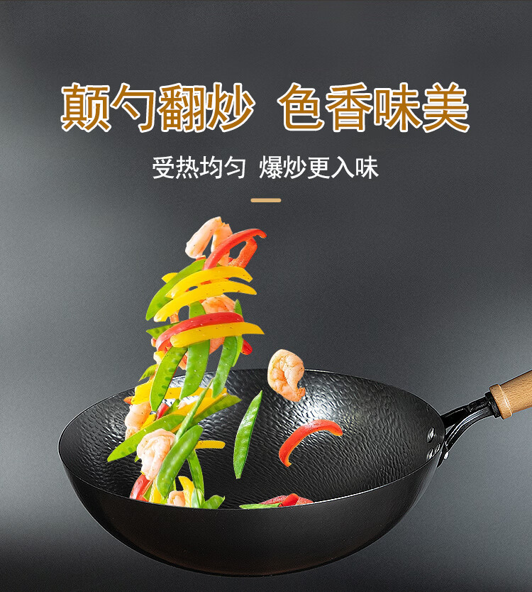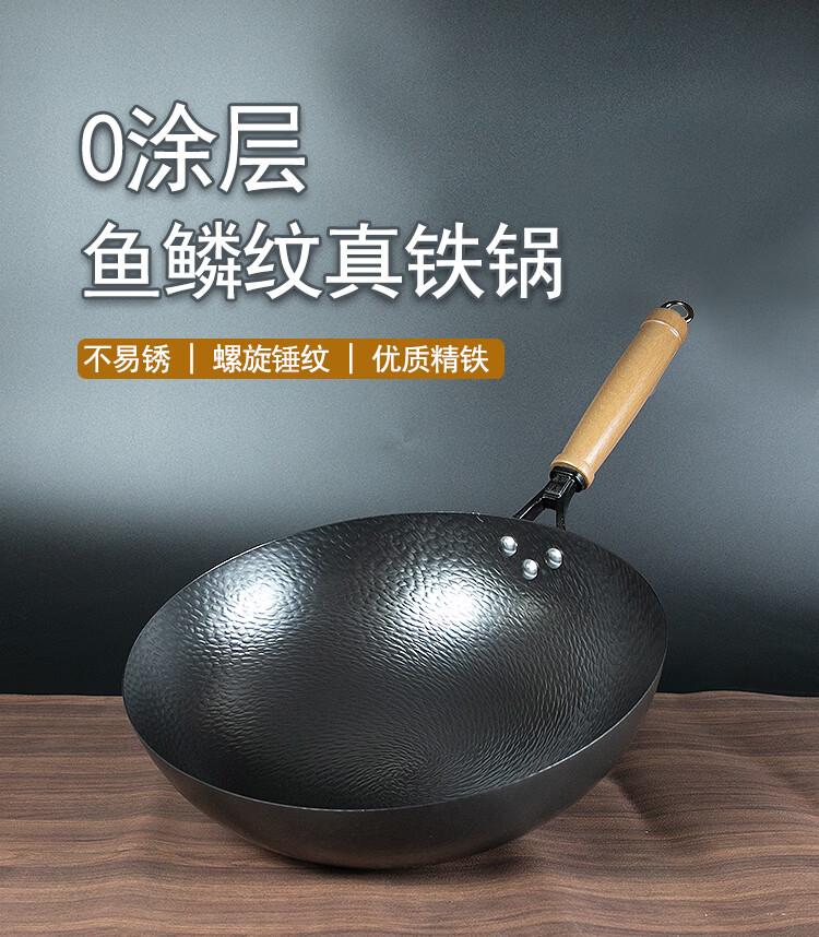 冀创炒锅铁锅健康无涂层精铁家用炒菜锅不易生锈炉灶通用 锤印轻便款(加耳赠锅盖) 36cm