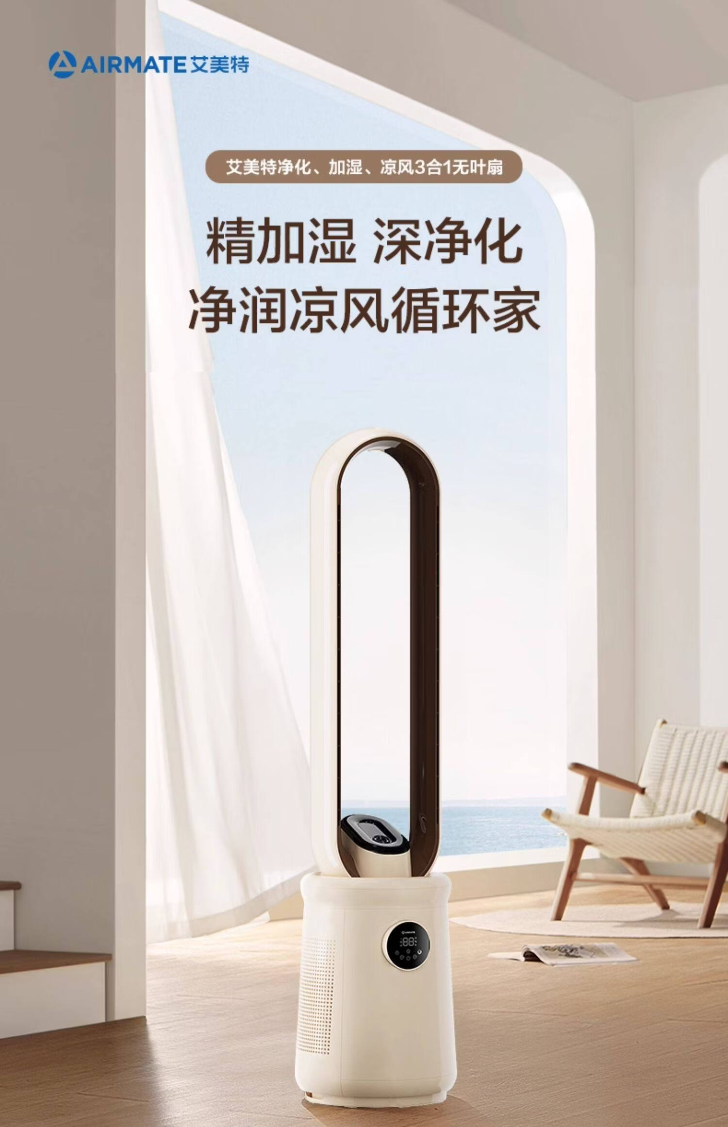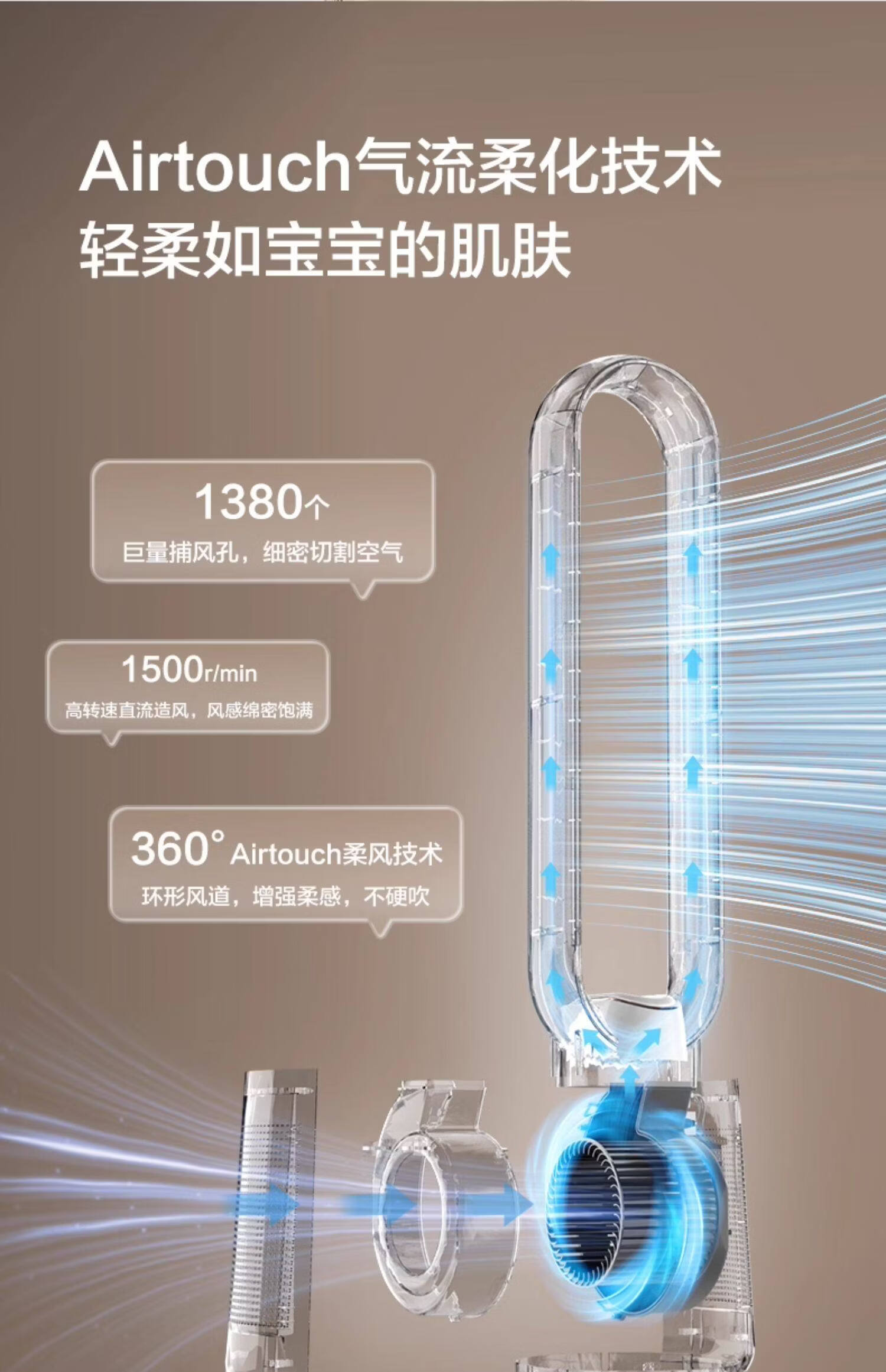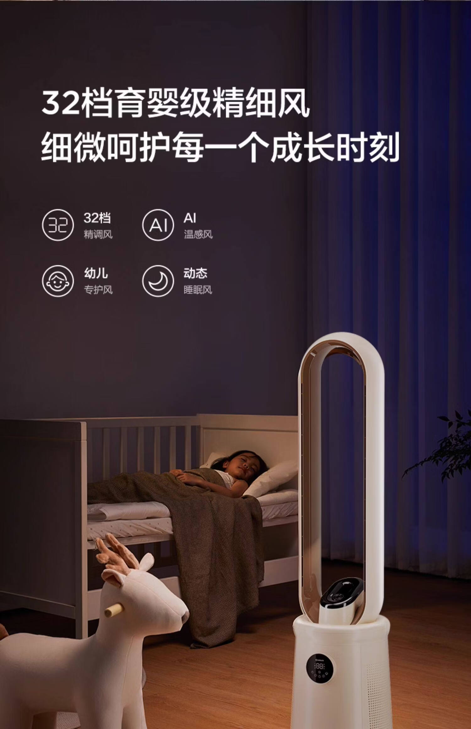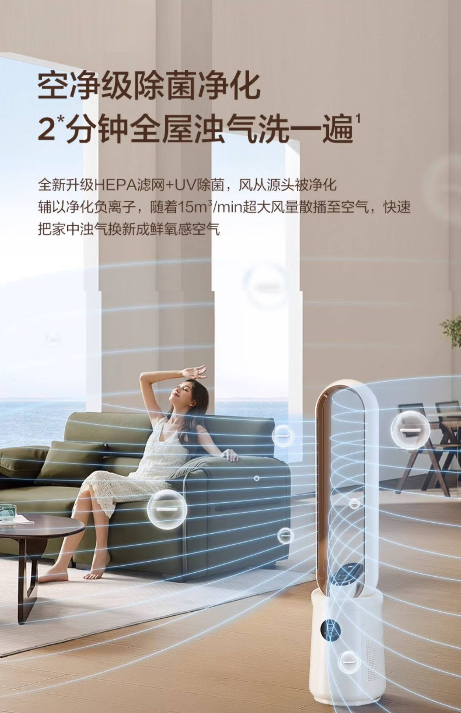 艾美特(AIRMATE)【母婴优选】无叶风扇电风扇落地家用轻音塔扇直流变频AI语音智控风扇摇头循环扇负离子净化除菌扇 语音豪华款【净化+抗菌+加湿+32档】