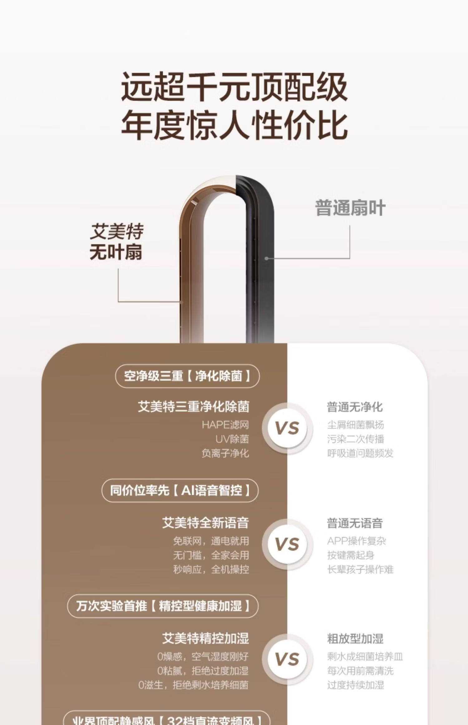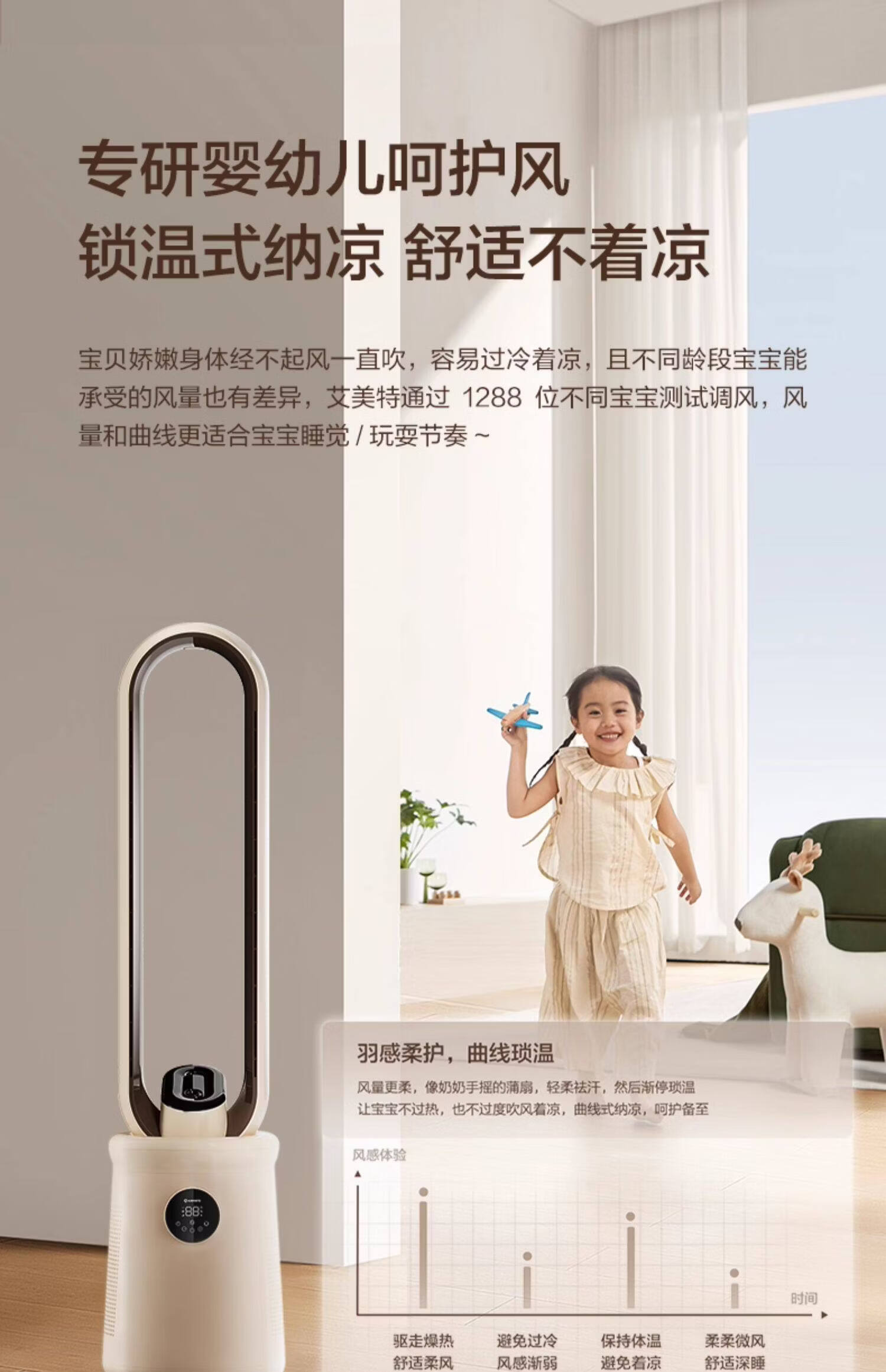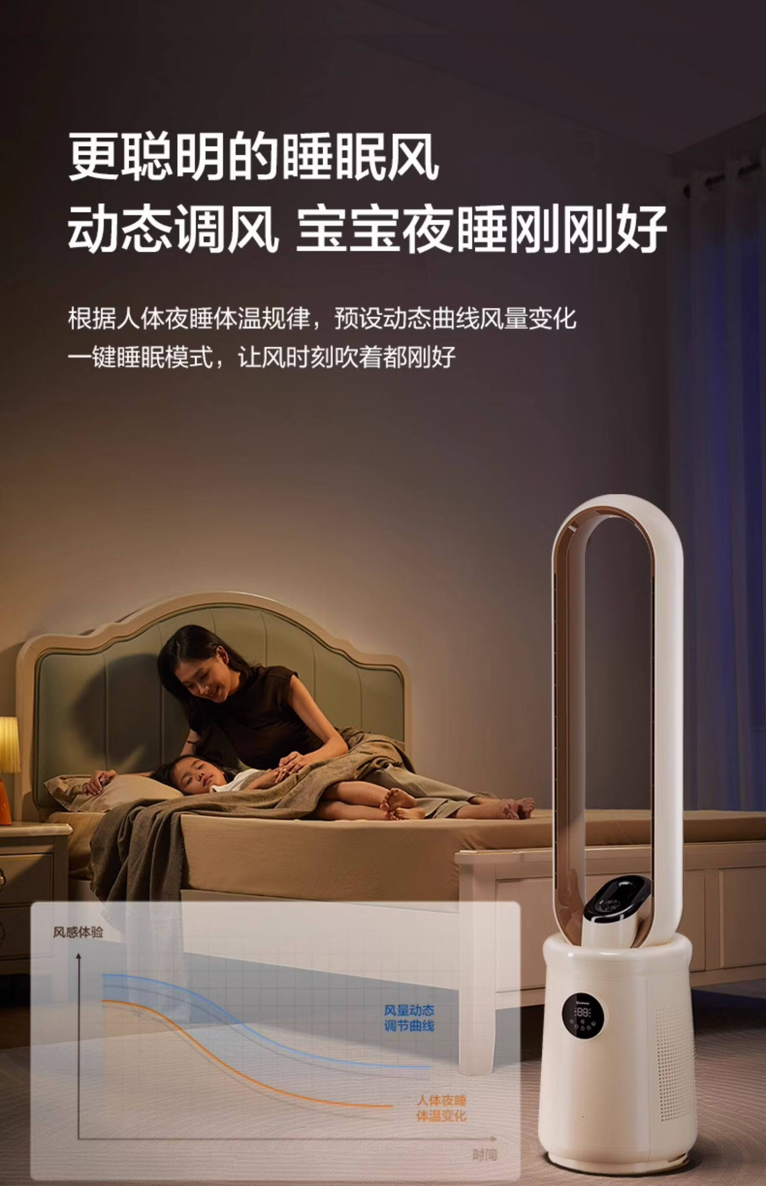艾美特(AIRMATE)【母婴优选】无叶风扇电风扇落地家用轻音塔扇直流变频AI语音智控风扇摇头循环扇负离子净化除菌扇 语音豪华款【净化+抗菌+加湿+32档】