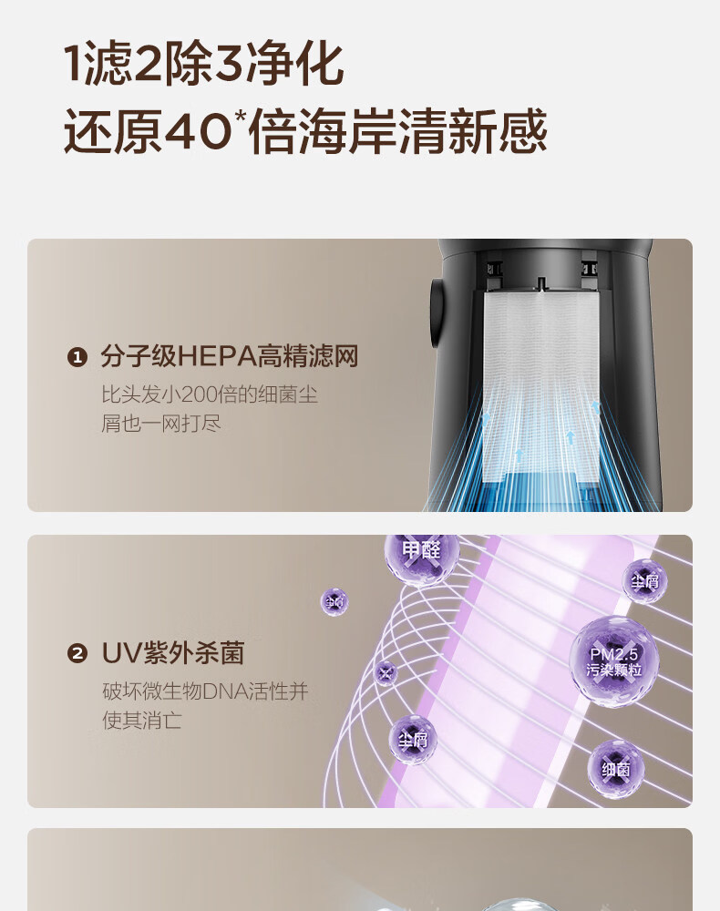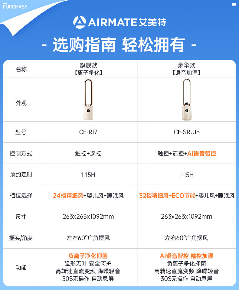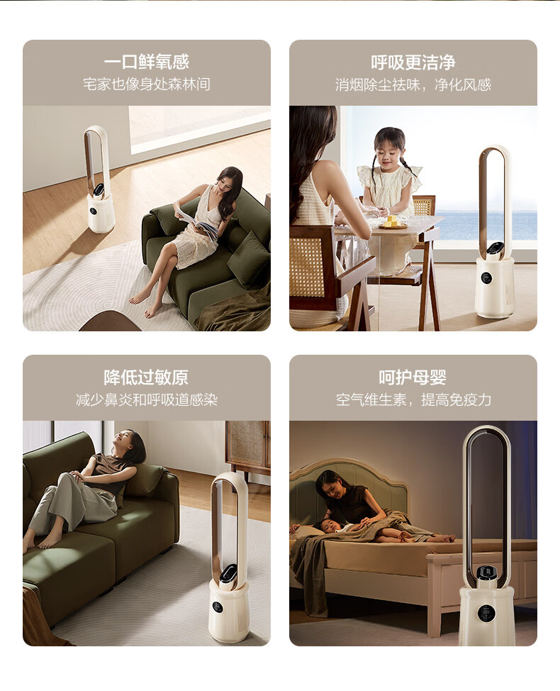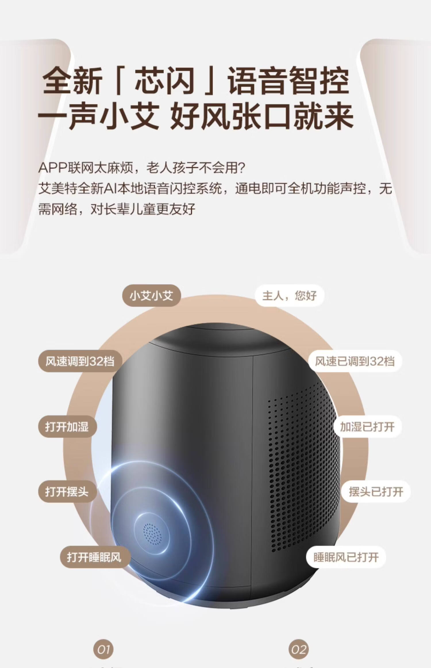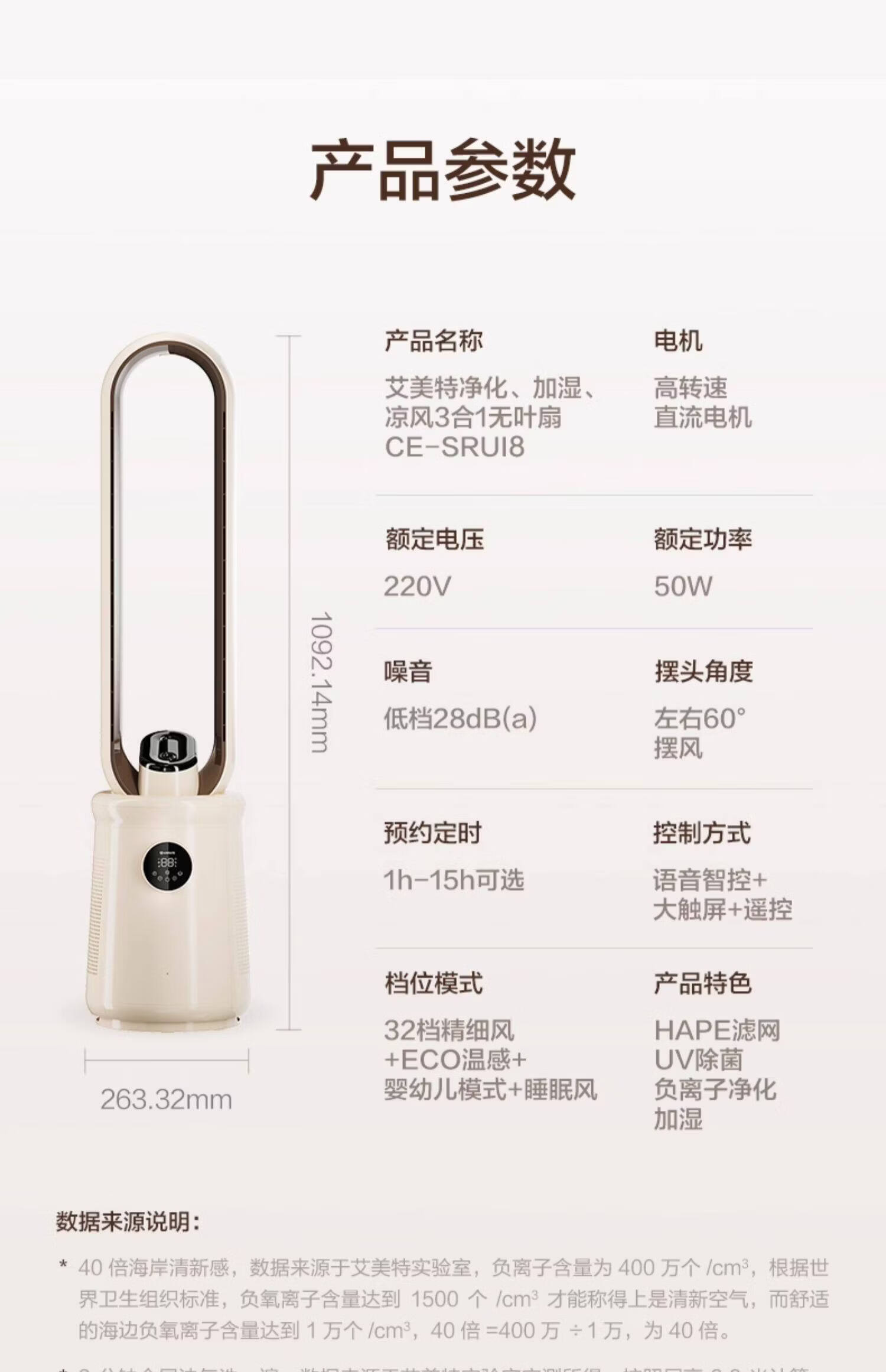 艾美特(AIRMATE)【母婴优选】无叶风扇电风扇落地家用轻音塔扇直流变频AI语音智控风扇摇头循环扇负离子净化除菌扇 语音豪华款【净化+抗菌+加湿+32档】
