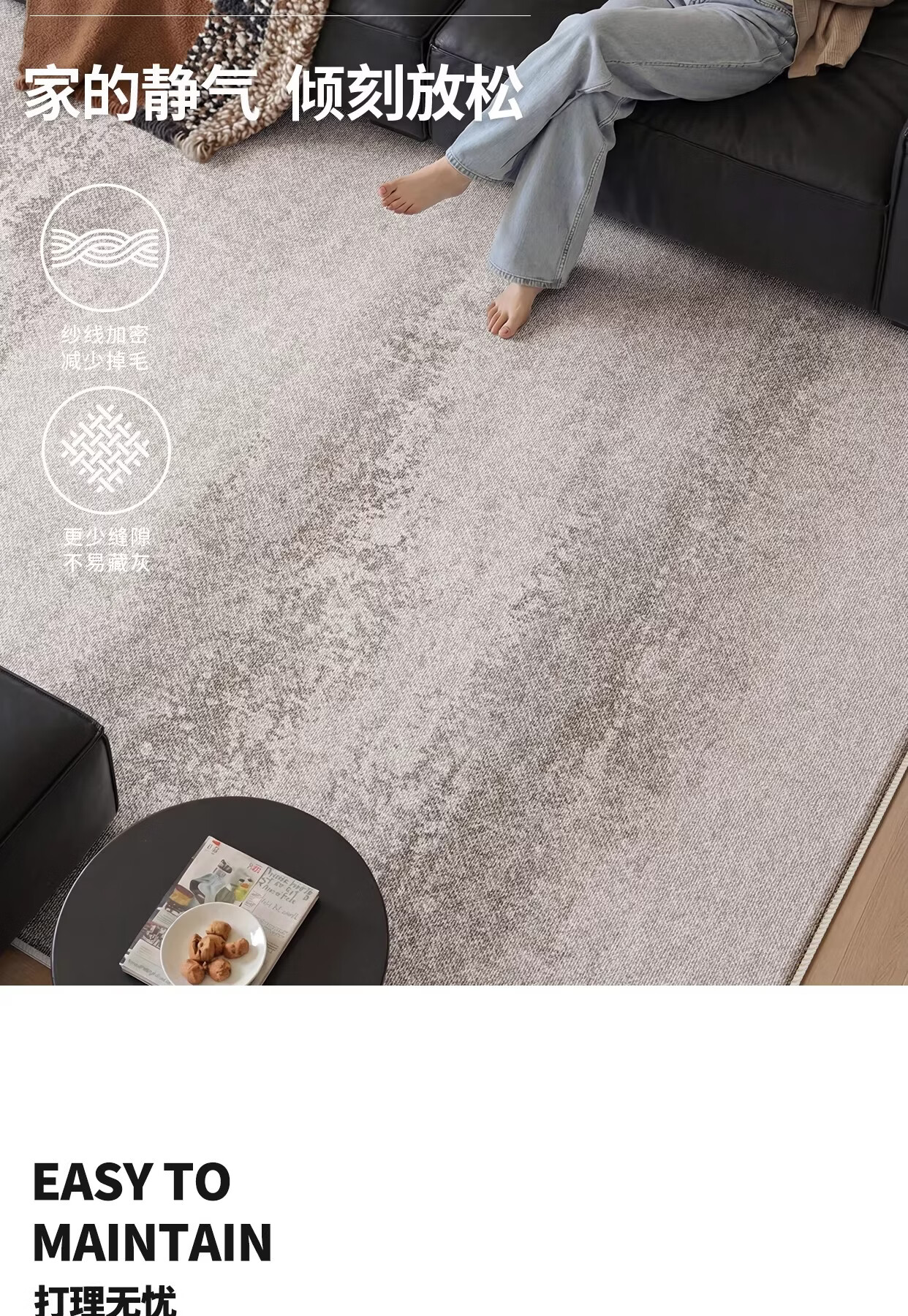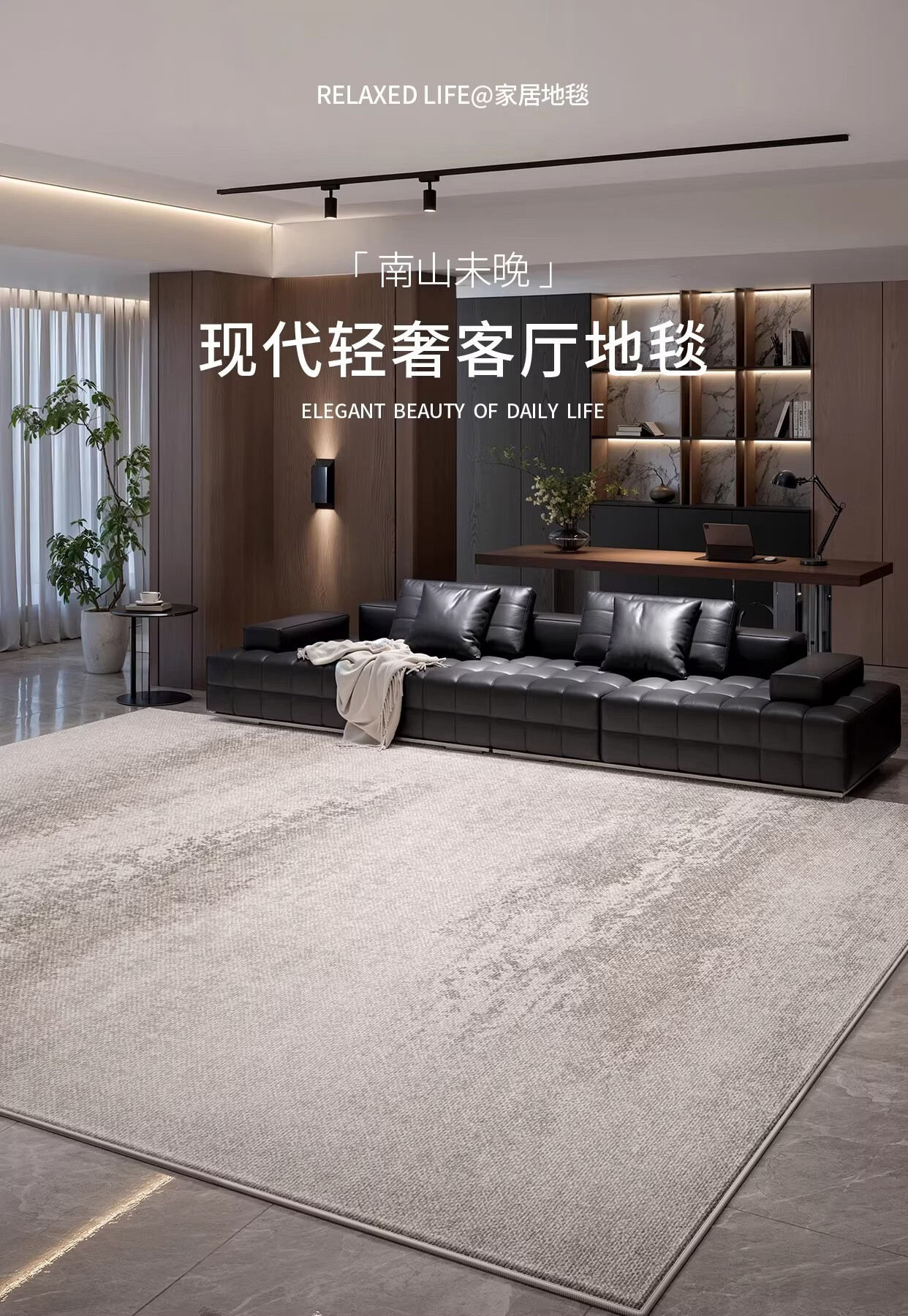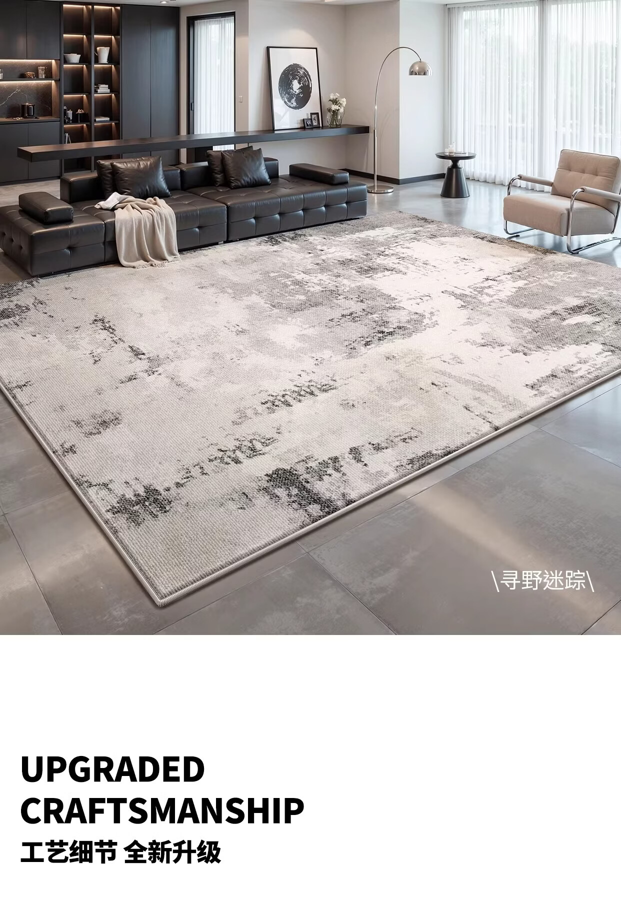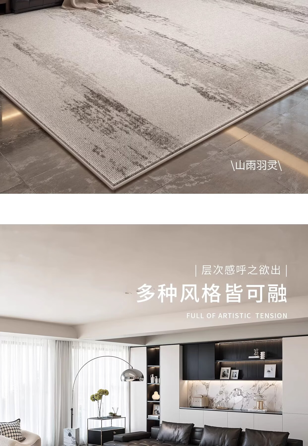 Y U-LIVE地毯客厅轻奢高级免洗可擦灰色意式极简卧室地垫家用沙发防水防污 圈绒-南山未晚 120×160cm【加厚不加价】