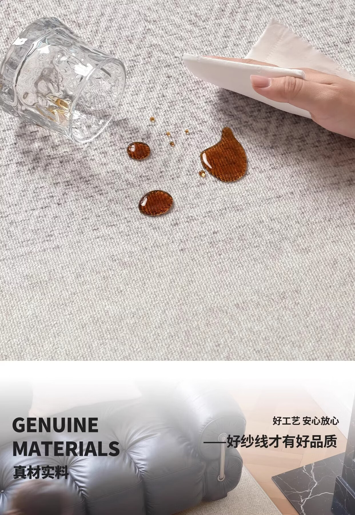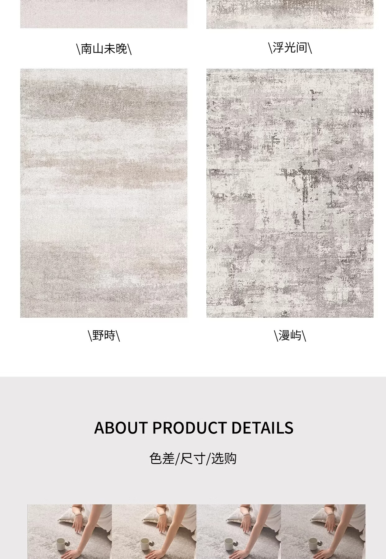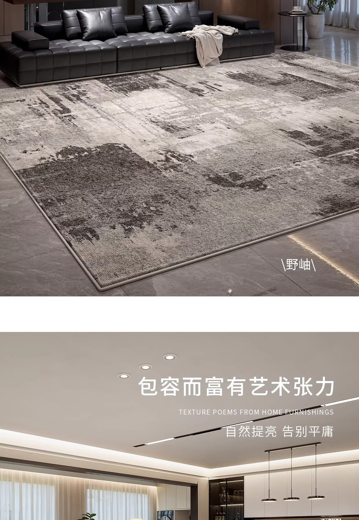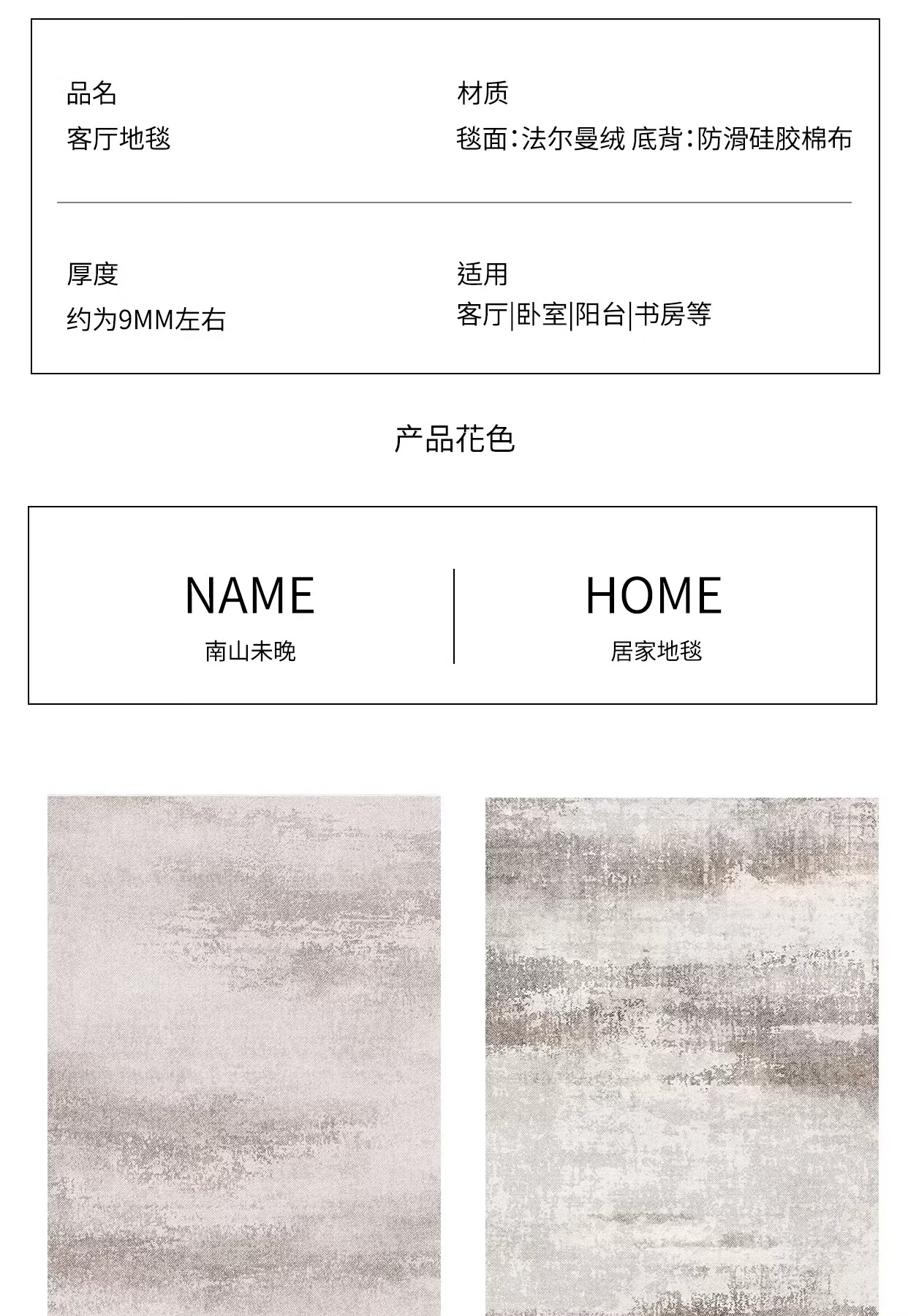 Y U-LIVE地毯客厅轻奢高级免洗可擦灰色意式极简卧室地垫家用沙发防水防污 圈绒-南山未晚 120×160cm【加厚不加价】