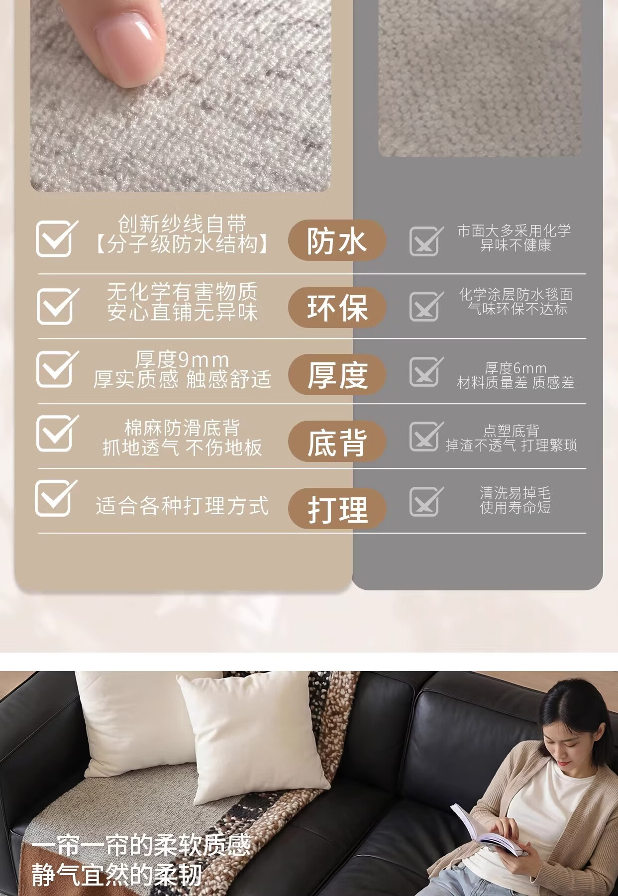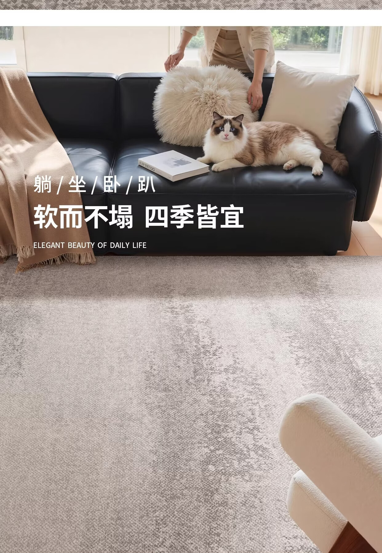 Y U-LIVE地毯客厅侘寂风2026新款轻奢高级全铺大面积免洗可擦沙发卧室 S仿羊绒-逐浪 200*300CM【客厅优选尺寸】
