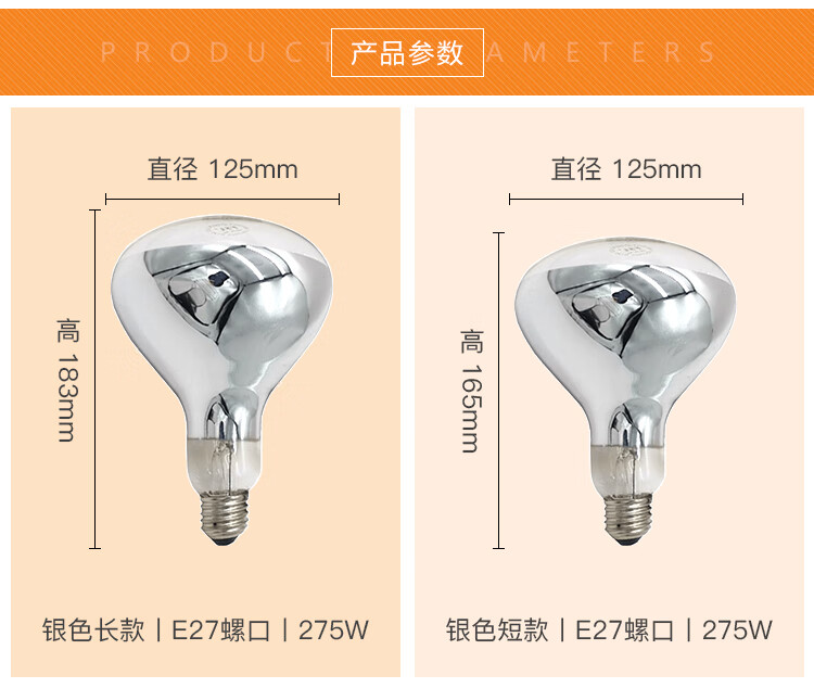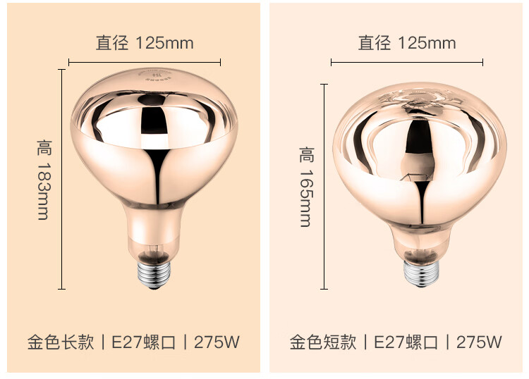 FSL佛山照明 浴霸灯泡取暖泡防水防爆 E27通用取暖灯泡 长径 275W 183*Φ125mm