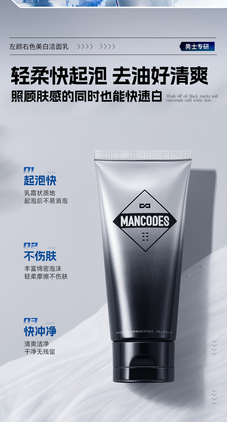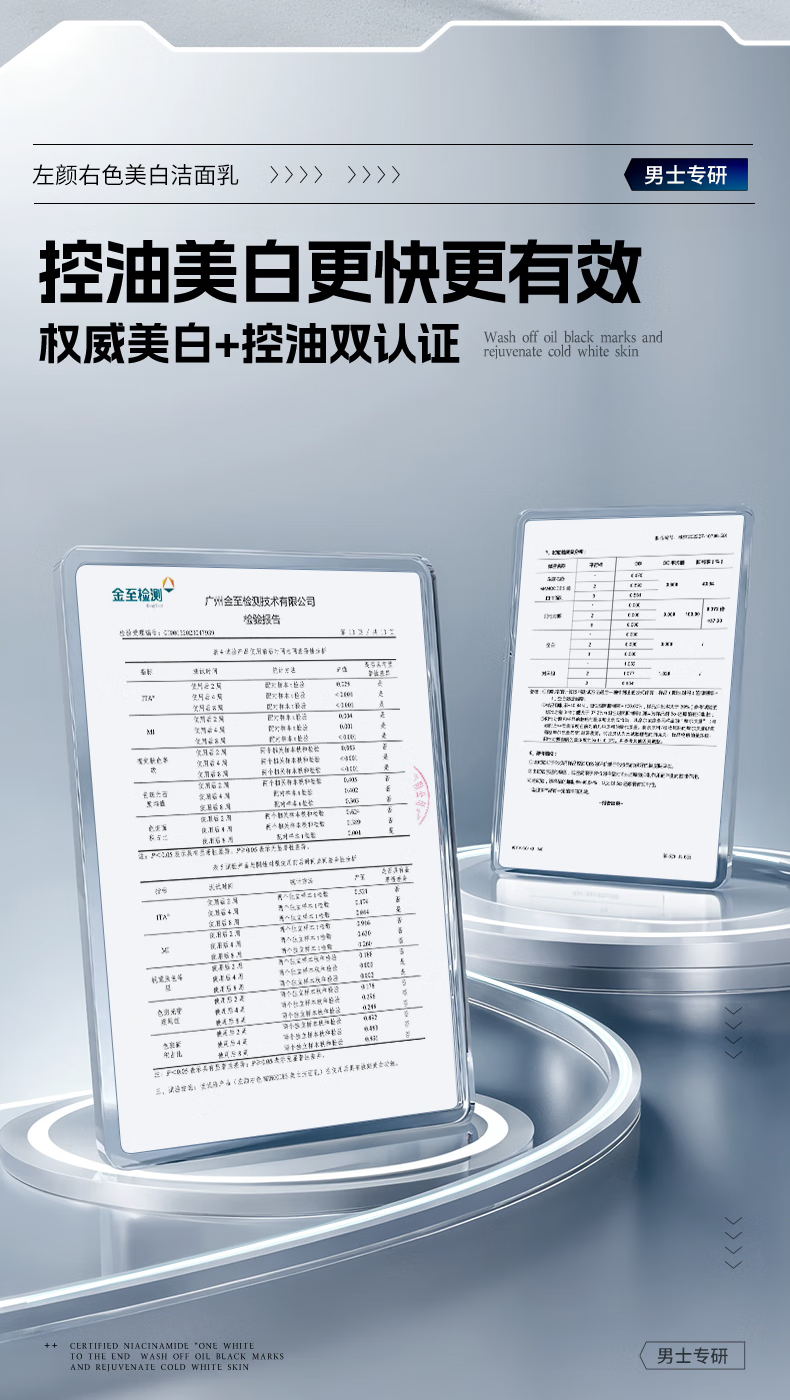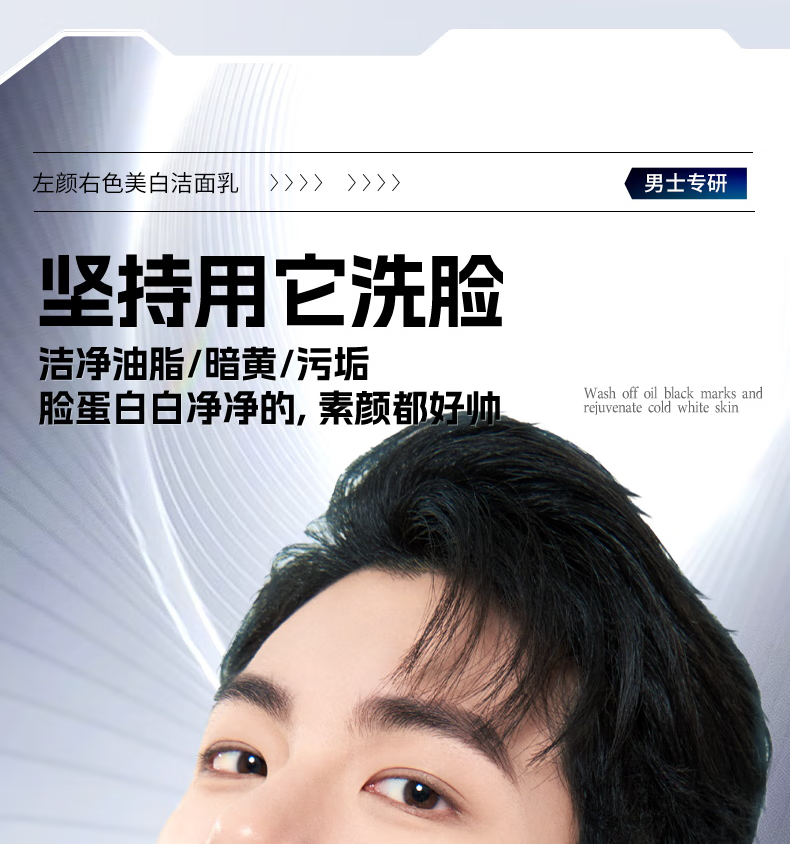 左颜右色【郑恺代言】烟酰胺美白洗面奶100g*2支男士淡化痘印保湿护肤品