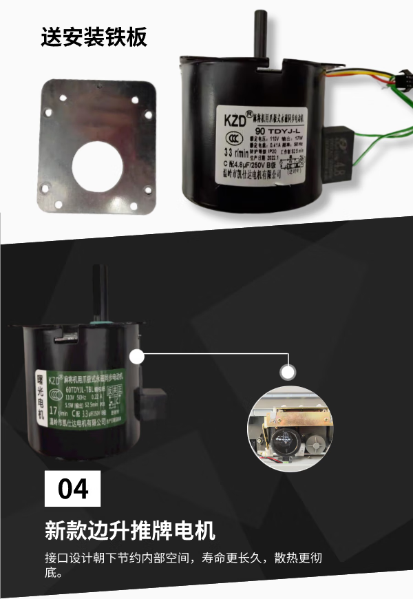 麻将机凯仕达爪极式永磁同步电机电容推牌皮带大盘升降上牌小电机 凯仕达60转【机头电机】