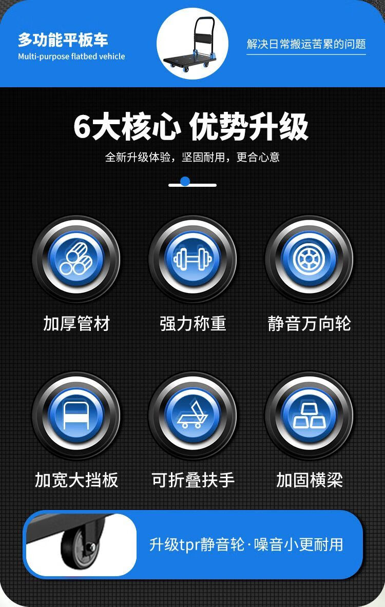 正泰小推车拉货拖车折叠轻便携手拉车搬运平板车家用取快递手推车百 65*40迷你款3寸PU轮 载200
