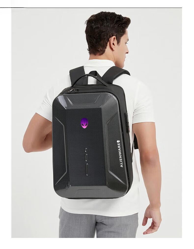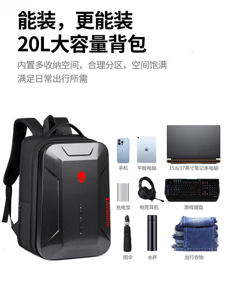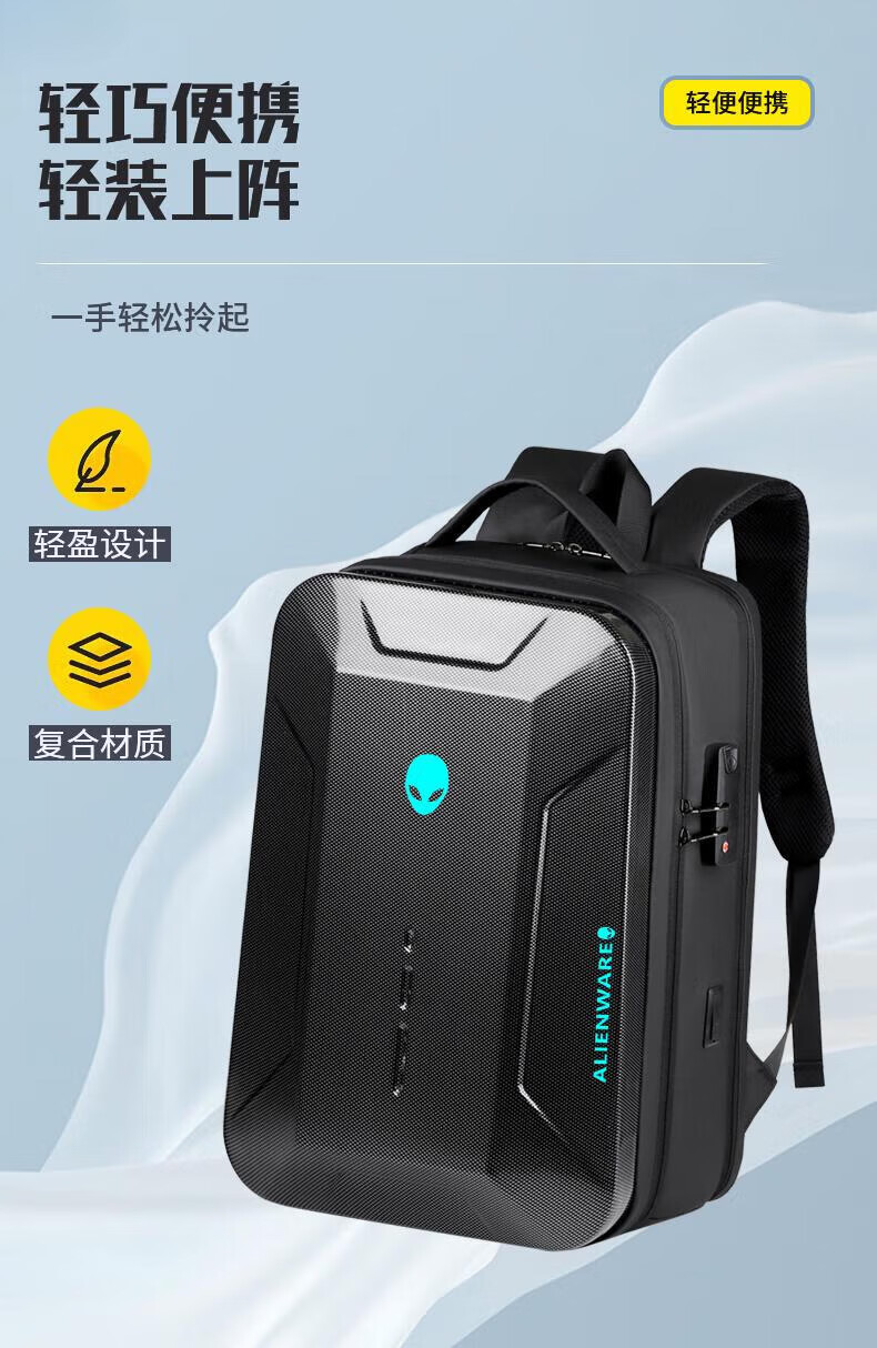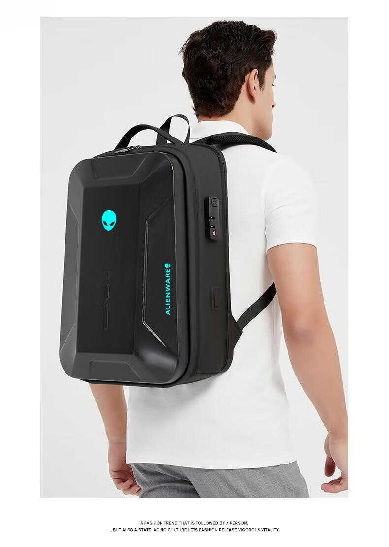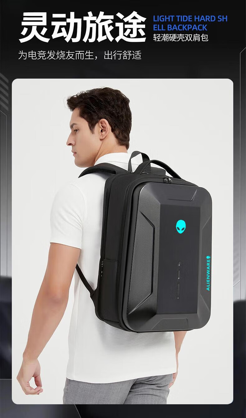 嘉丽诗适用外星人Alienware电脑包16X X17R1游戏笔记本双肩背包17.3英寸 黑色绿外星人+右绿字 升级气囊款 17.3寸 通用尺寸可装机械键盘