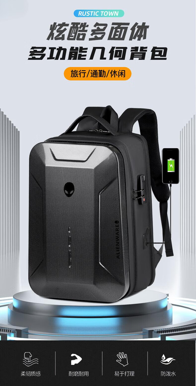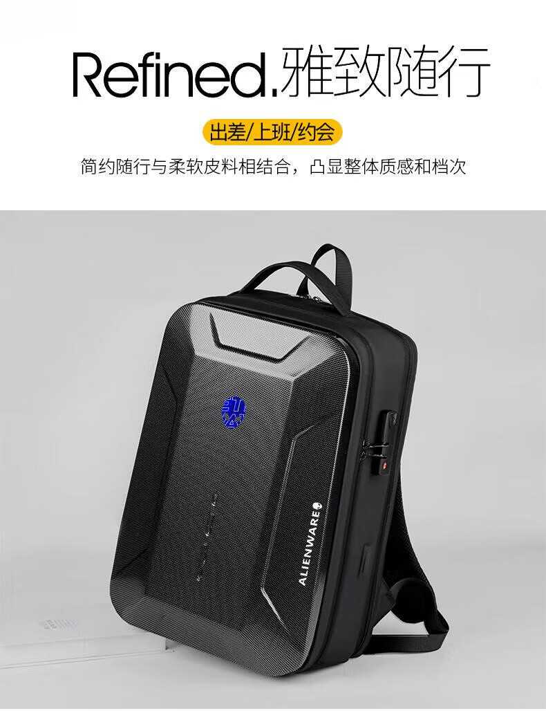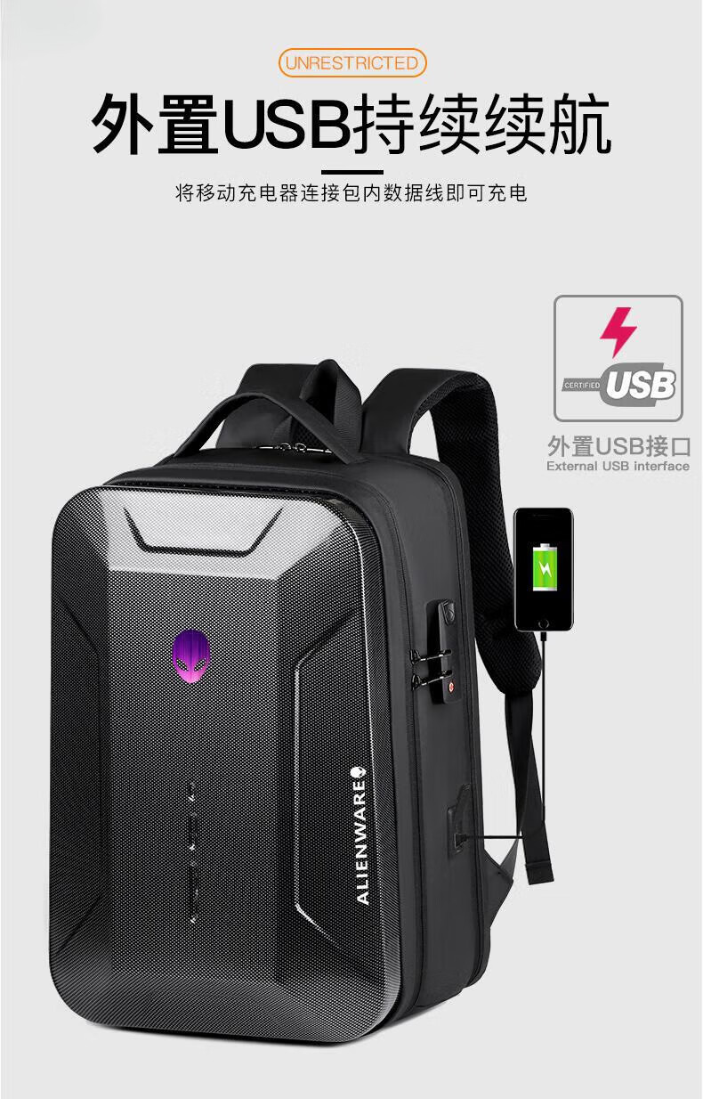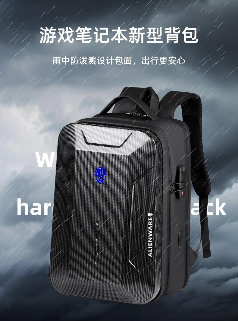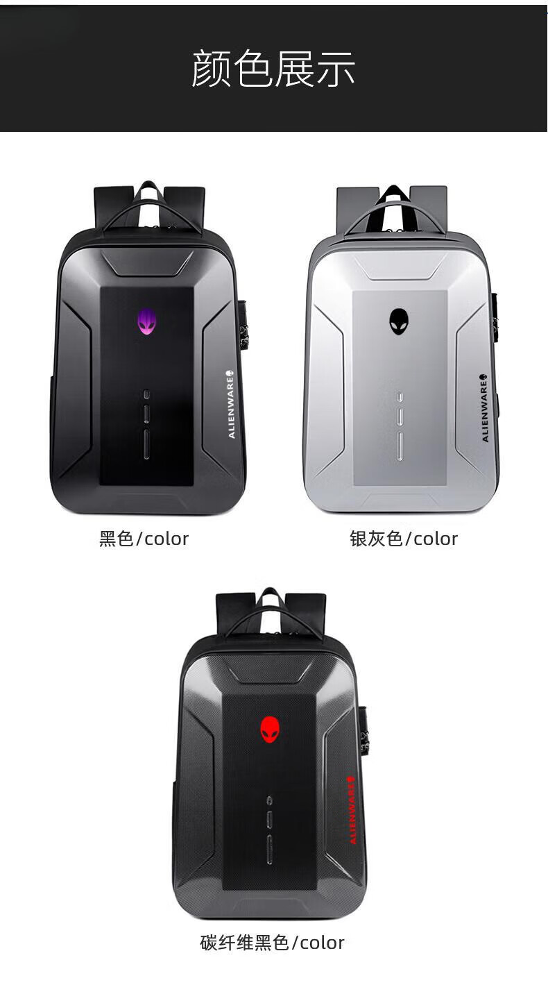 嘉丽诗适用外星人Alienware电脑包16X X17R1游戏笔记本双肩背包17.3英寸 黑色绿外星人+右绿字 升级气囊款 17.3寸 通用尺寸可装机械键盘