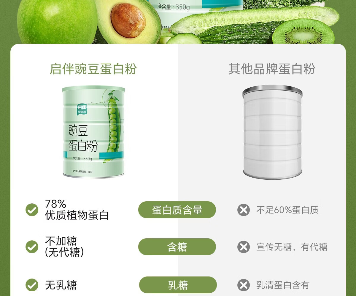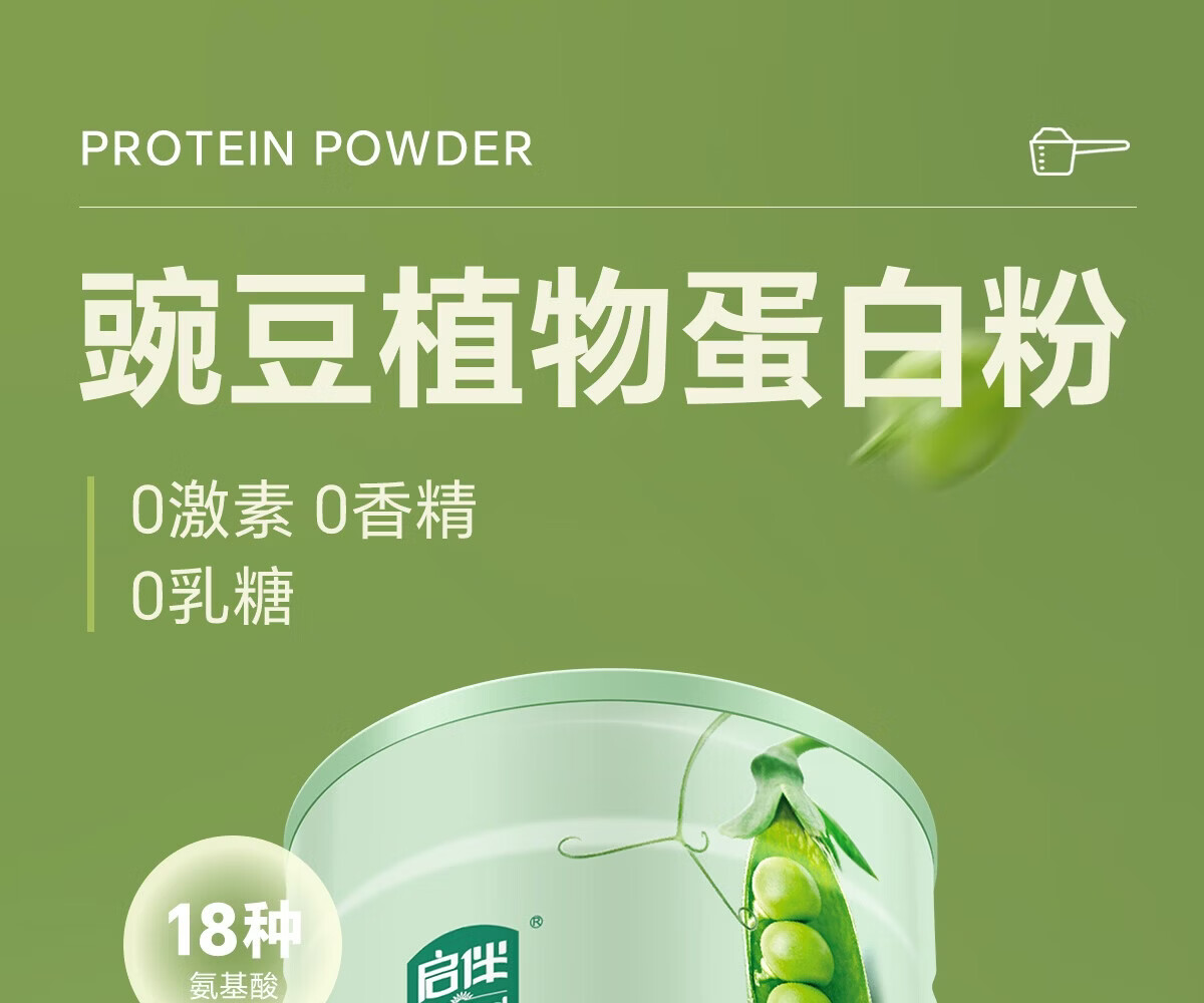 启伴豌豆蛋白粉0糖无麸质桥本 青少年植物蛋白粉营养补品 有机豌豆蛋白粉 500g*1罐