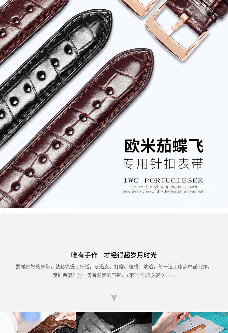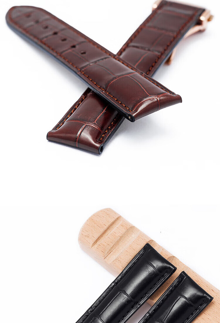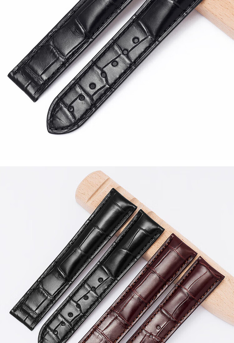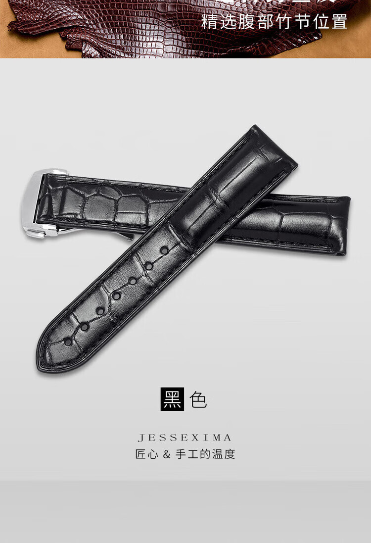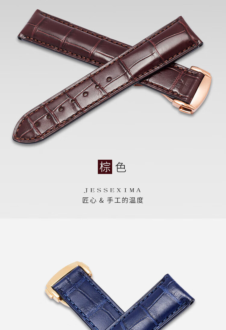 适用于OMEGA欧米茄表带男原装真皮鳄鱼皮蝶飞海马Omega手表带 蓝色-金扣【折叠款】 21mm【表盘接口】