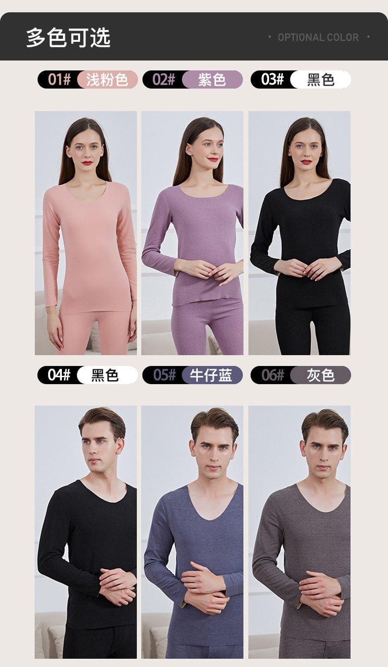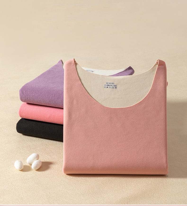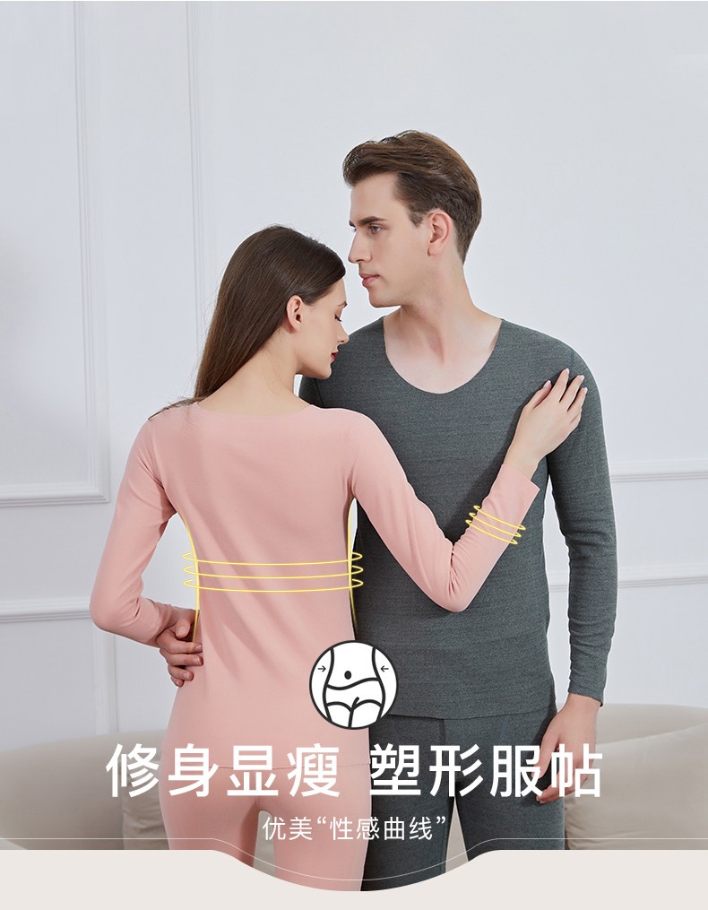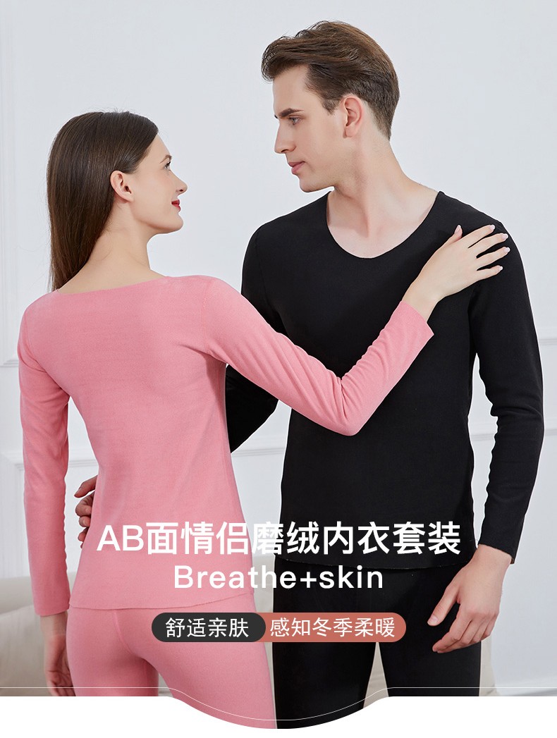 诗莉奥(SHILIAO)无痕情侣保暖内衣男女磨毛圆领秋衣秋裤加绒加厚随心裁长袖 山羊绒蚕丝粉色女 L