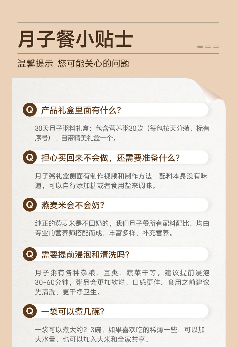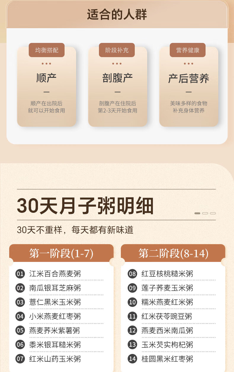 知安和月子餐30天月子粥产后营养粥杂粮人流小产月子调理补品产妇营养品 月子营养粥(30包/每天不重样)