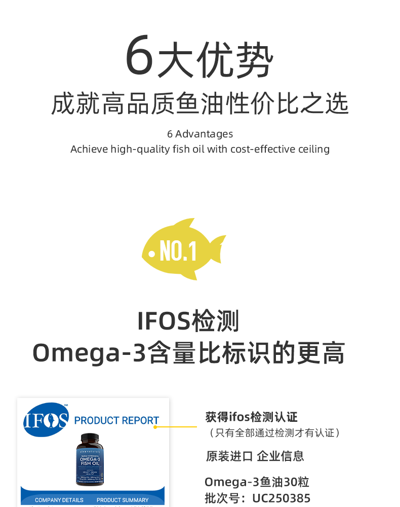Viva Naturals美国进口高纯度rTG结构深海鱼油DPA天然omega3欧米伽3软胶囊30粒
