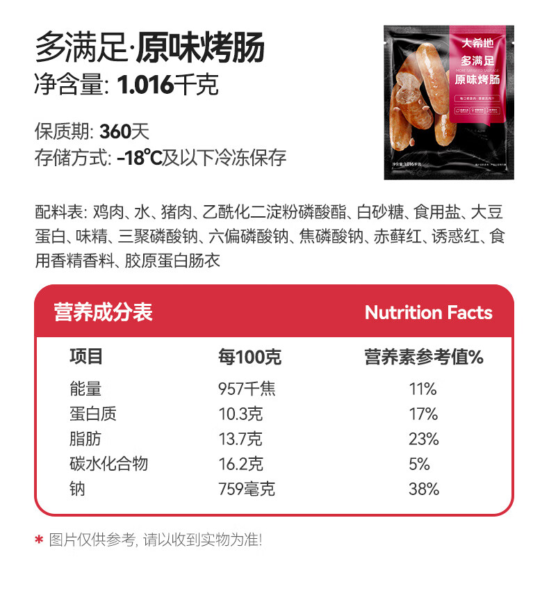 大希地火山石烤肠肉肠1016g/20根早餐火腿肠香肠热狗空气炸锅春节也送货
