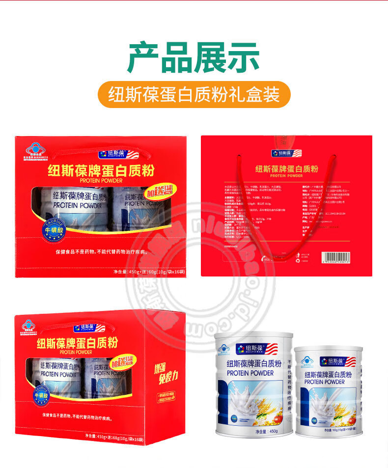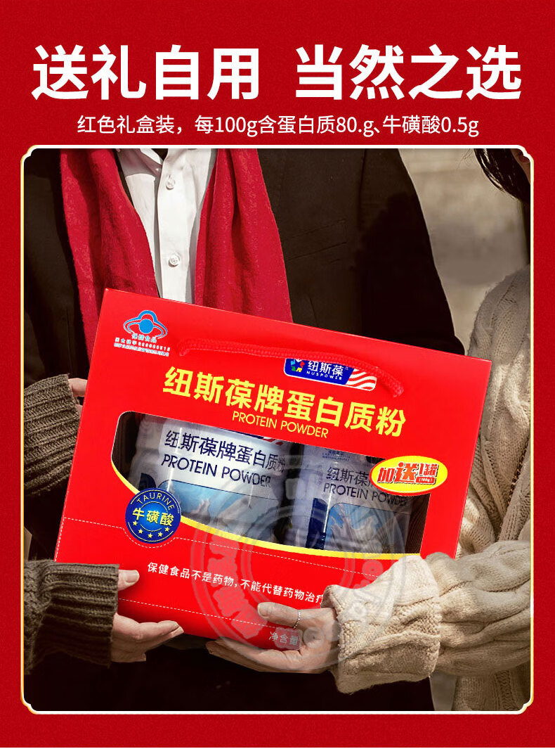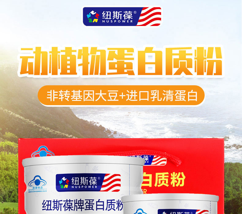 纽斯葆蛋白粉增强免疫力术后中老年营养品动植物双蛋白含牛磺酸送礼盒装 2桶*450克 【赠300克】共1200克