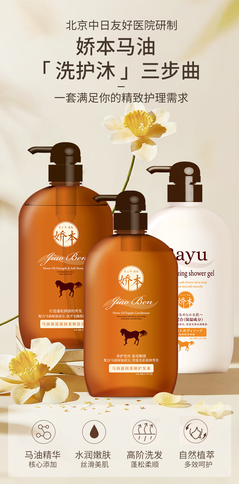娇本 中日友好医院研制清爽柔顺强韧发丝无硅油马油洗发水生日礼物 马油洗发水2瓶 男女成人通用