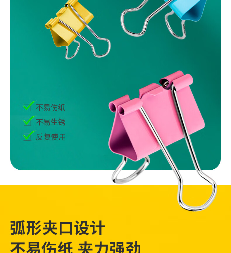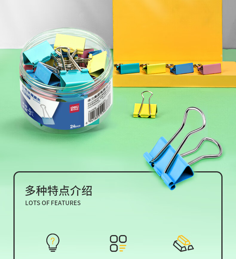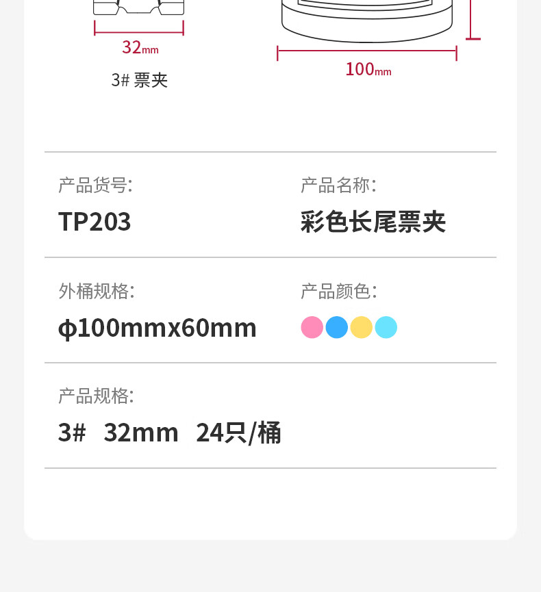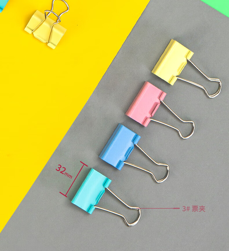 得力(deli)24只32mm彩色长尾夹票夹 3#中号金属燕尾夹票据文件夹子 办公用品 24只/筒 TP203