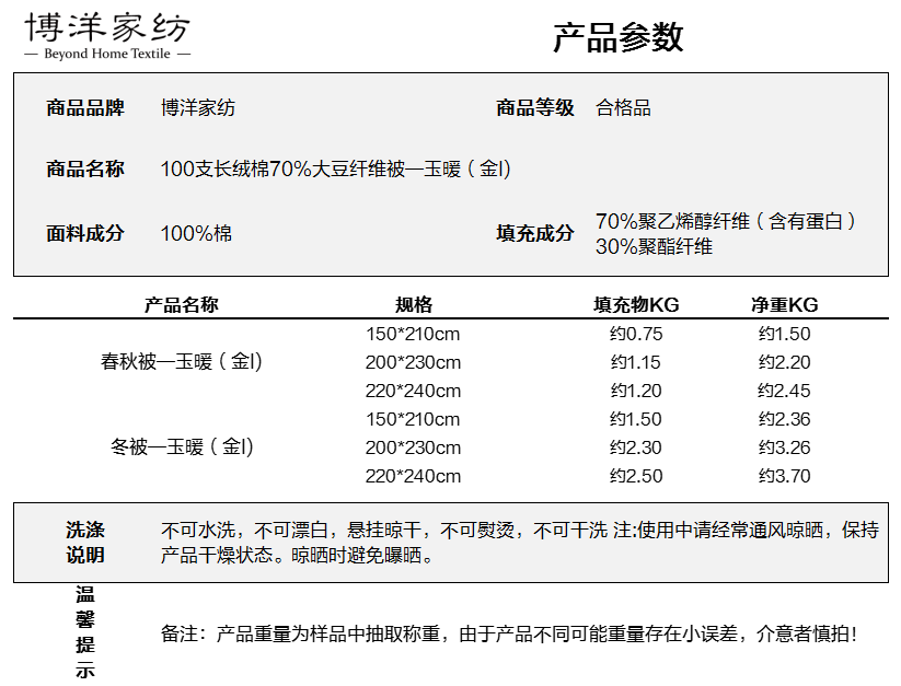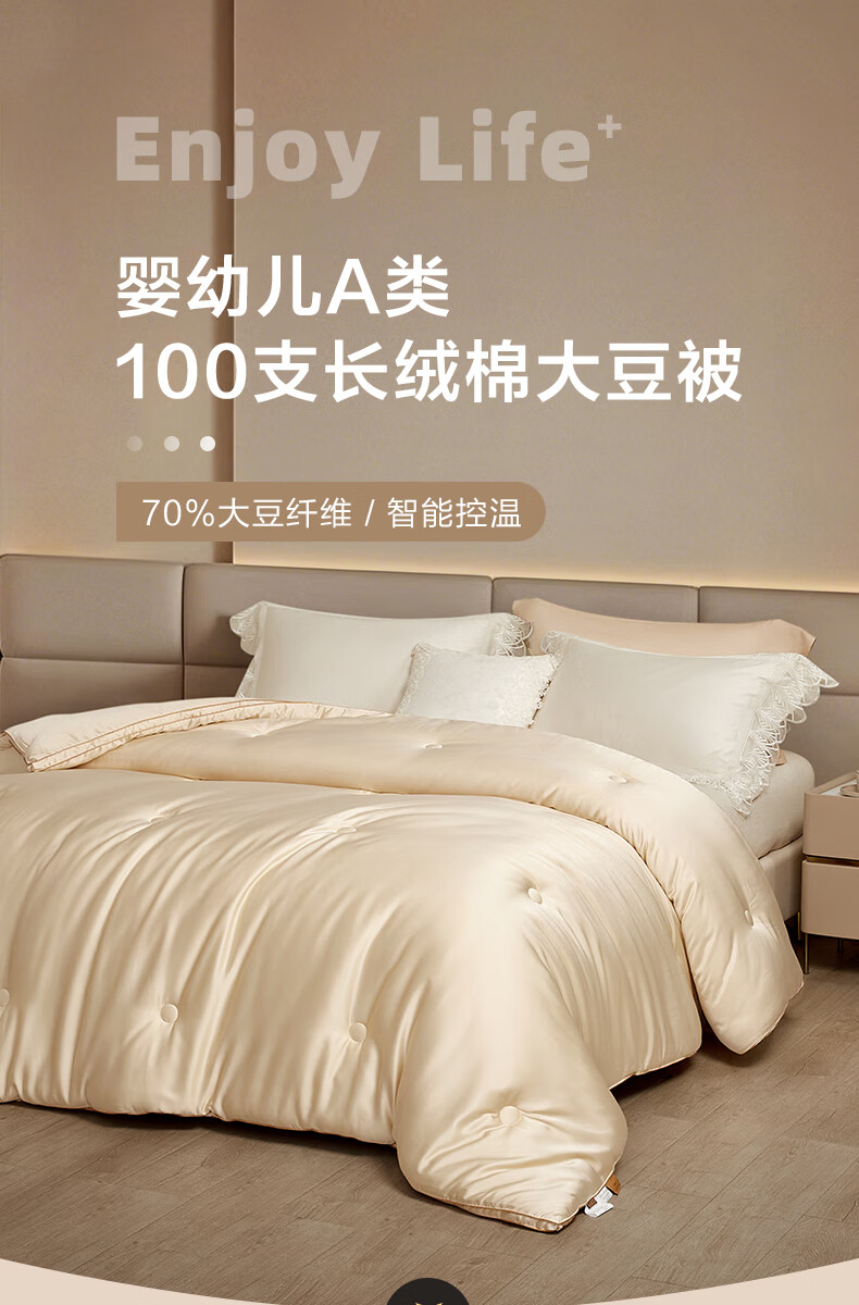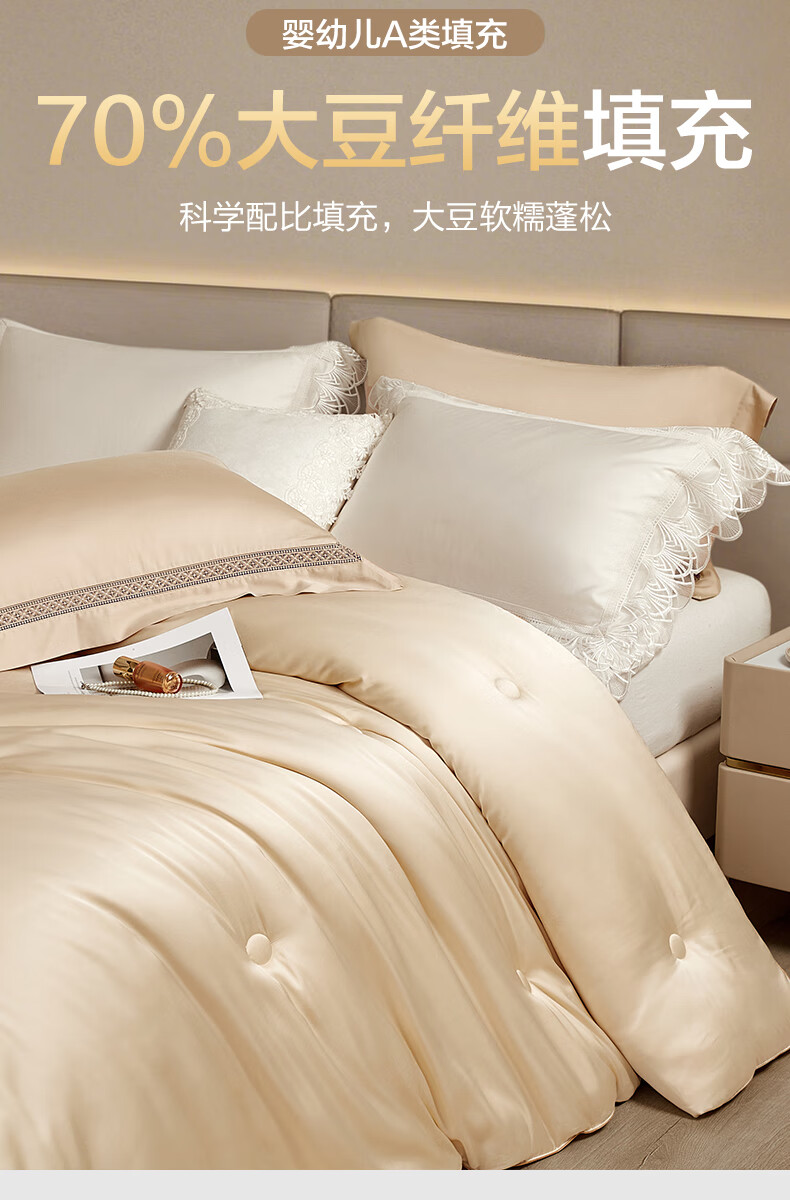 博洋(BEYOND)博洋家纺100支全棉70%大豆被纯棉春秋被子双人被芯保暖长绒棉被 春秋被【100s+70%大豆】玉暖金 220*240cm