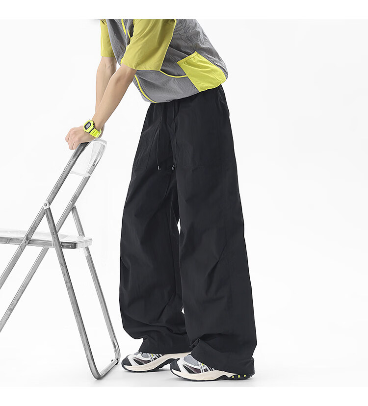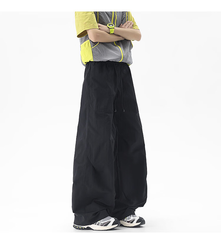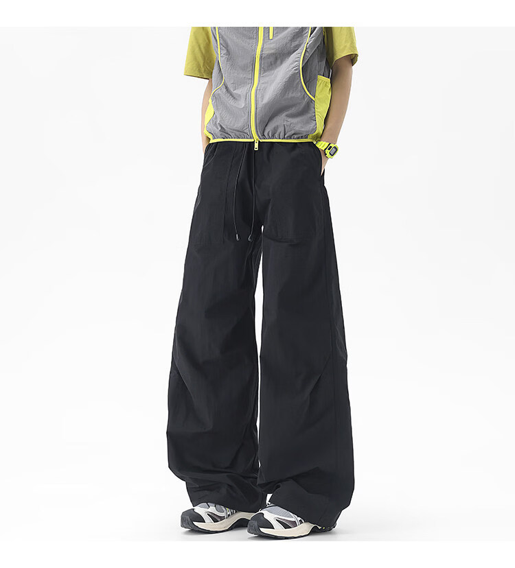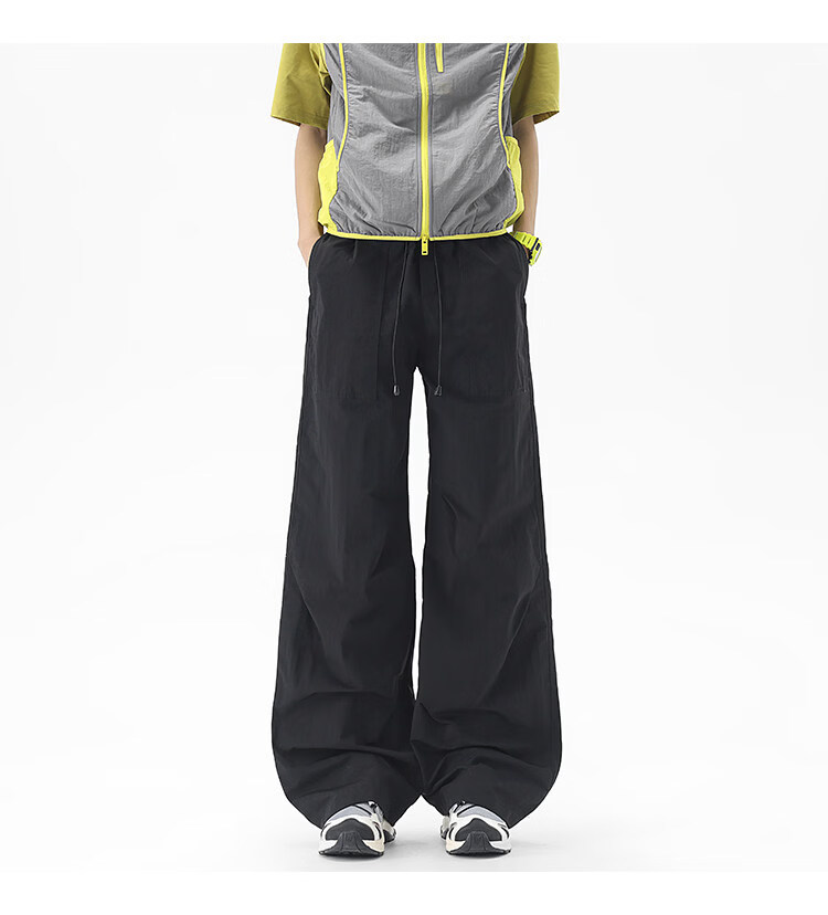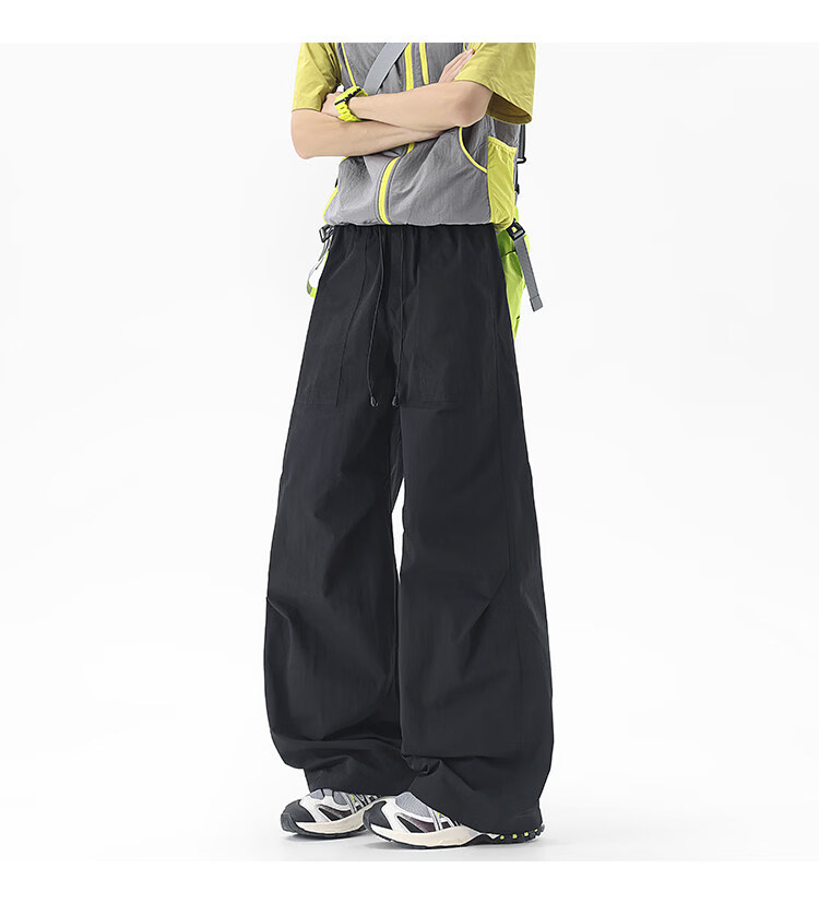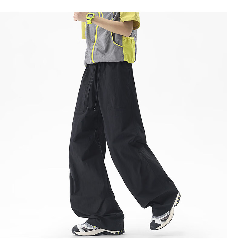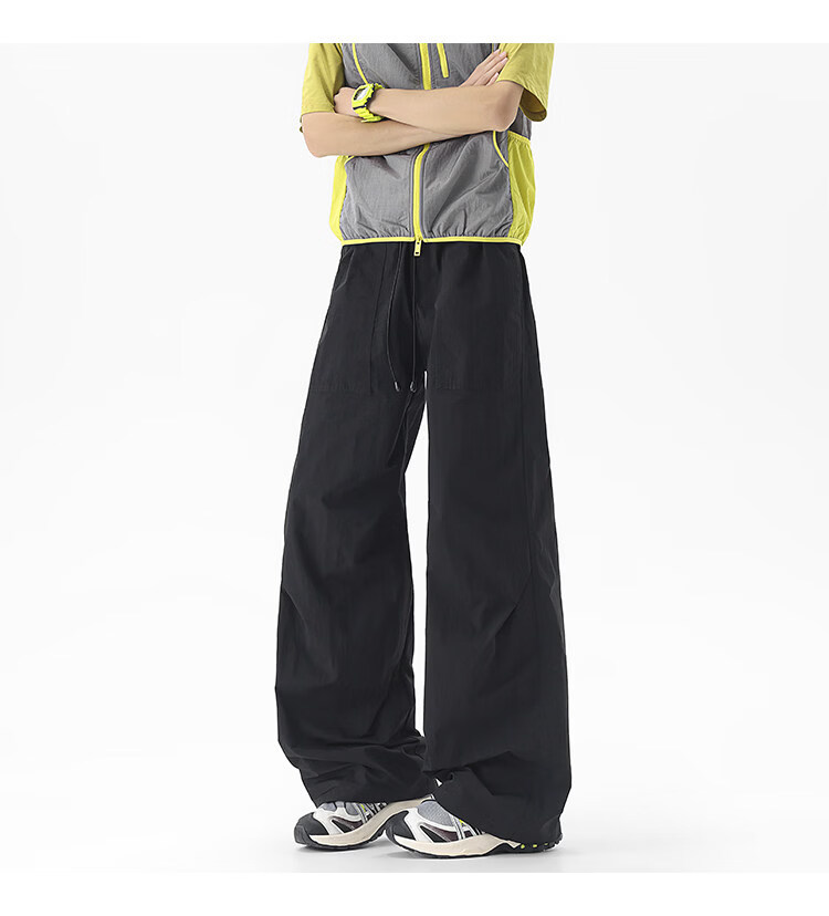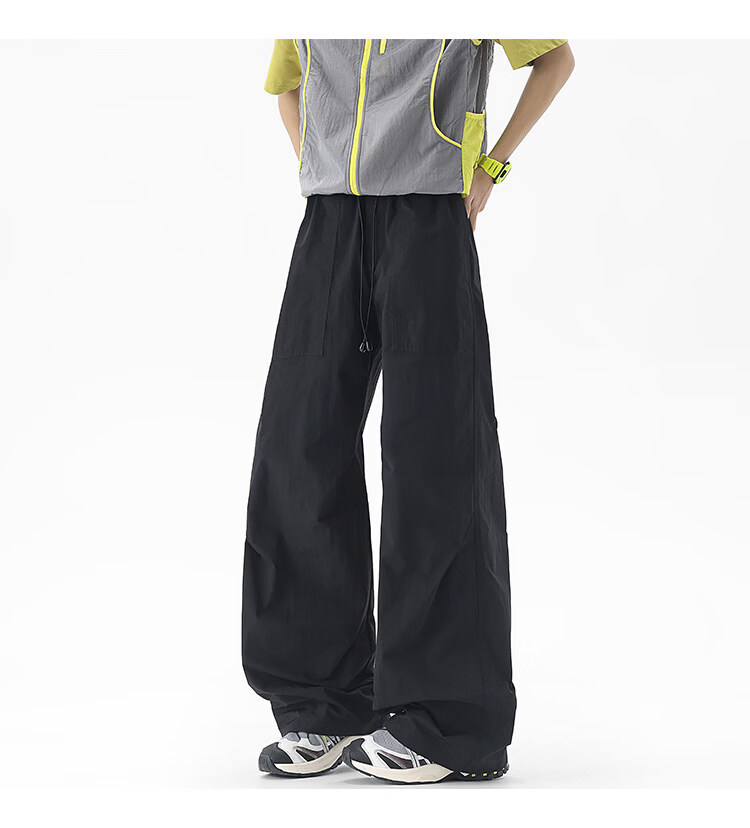 NEW OR MODE户外机能运动登山工装裤子男夏季新款透气宽松褶皱垂感休闲阔腿裤 黑色【高品质】 M 【建议90-110斤】