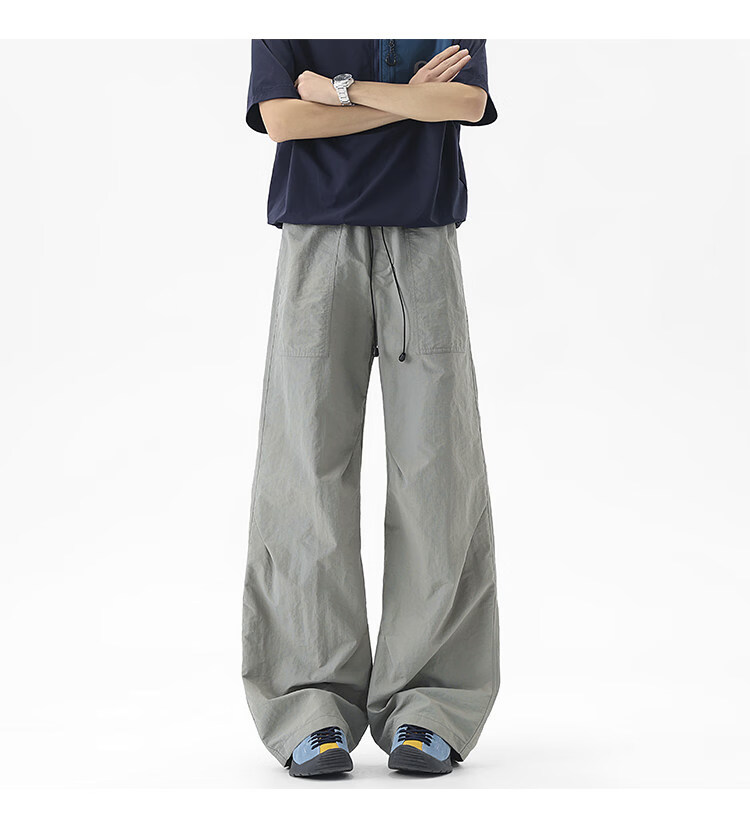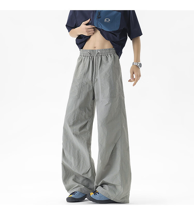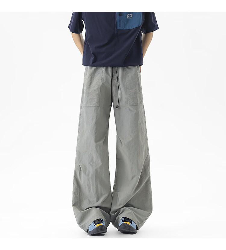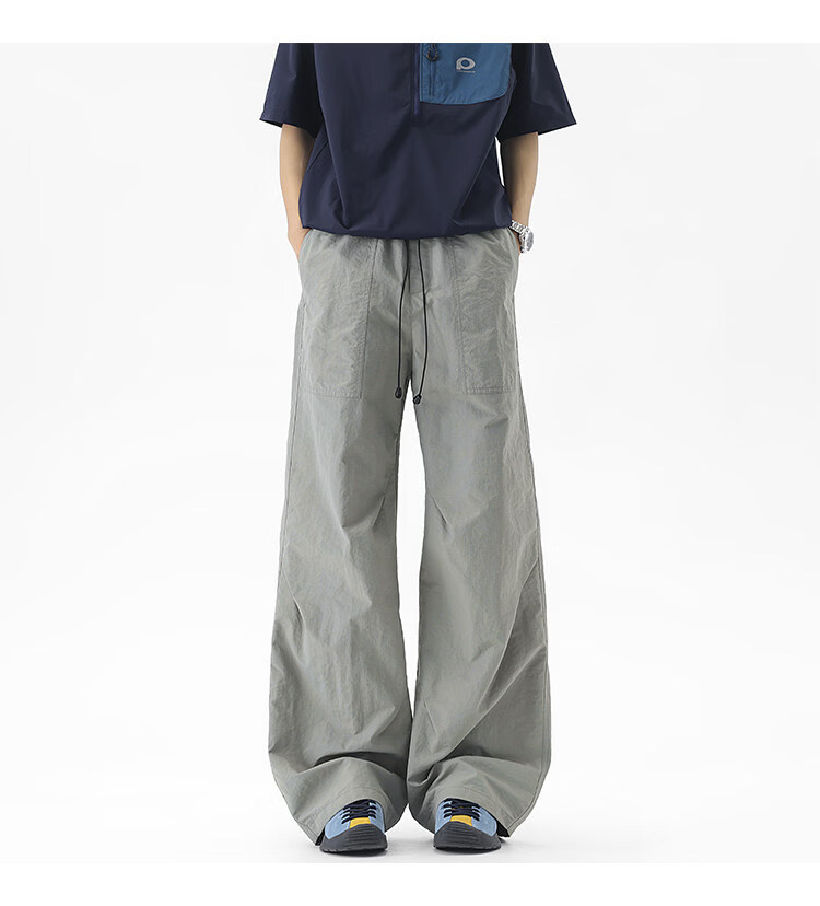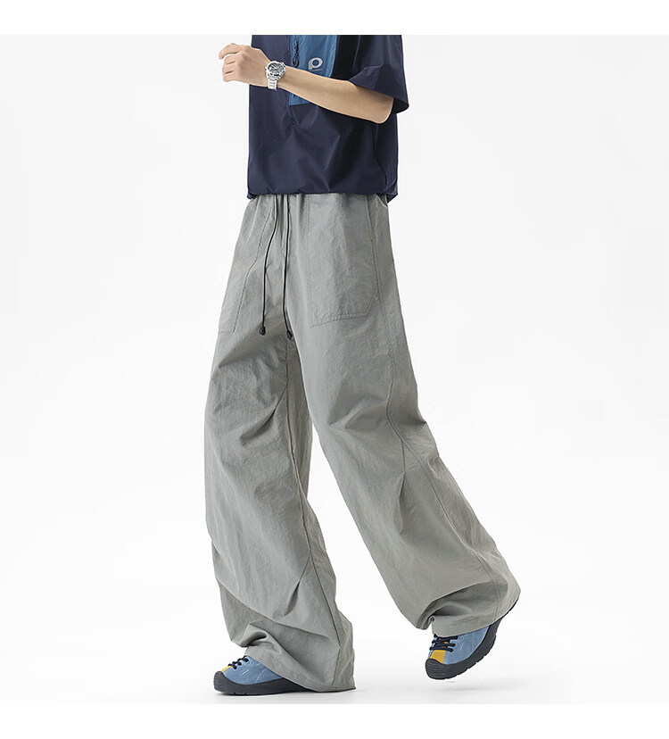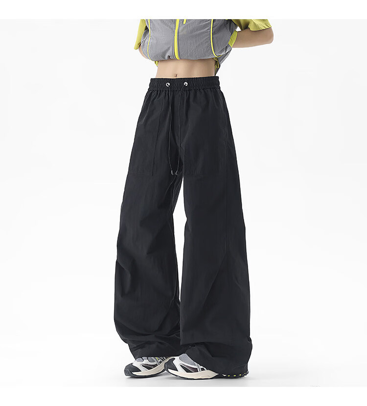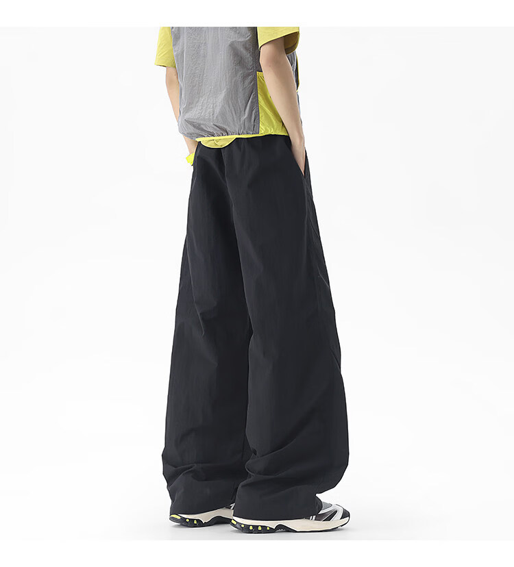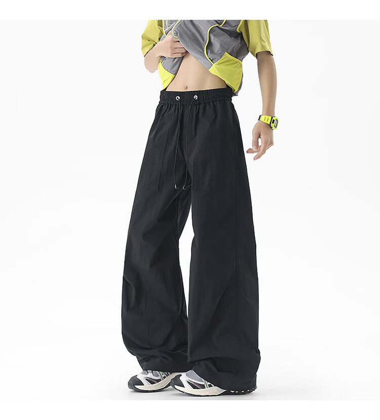 NEW OR MODE户外机能运动登山工装裤子男夏季新款透气宽松褶皱垂感休闲阔腿裤 黑色【高品质】 M 【建议90-110斤】