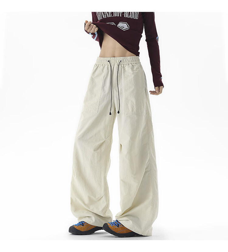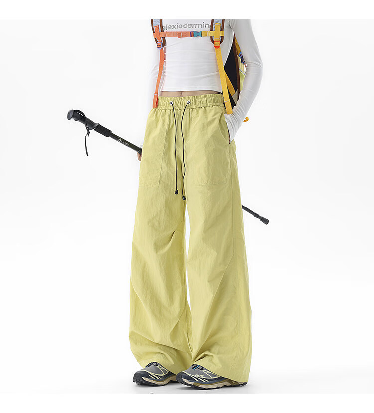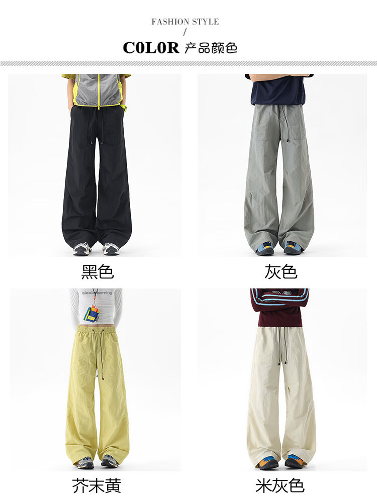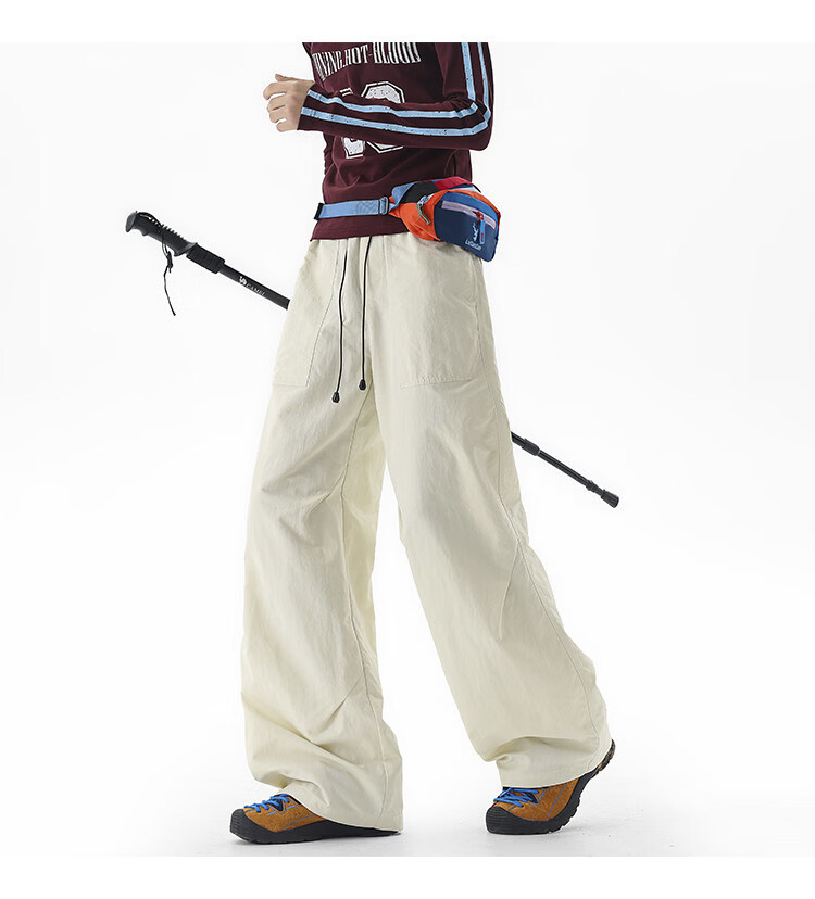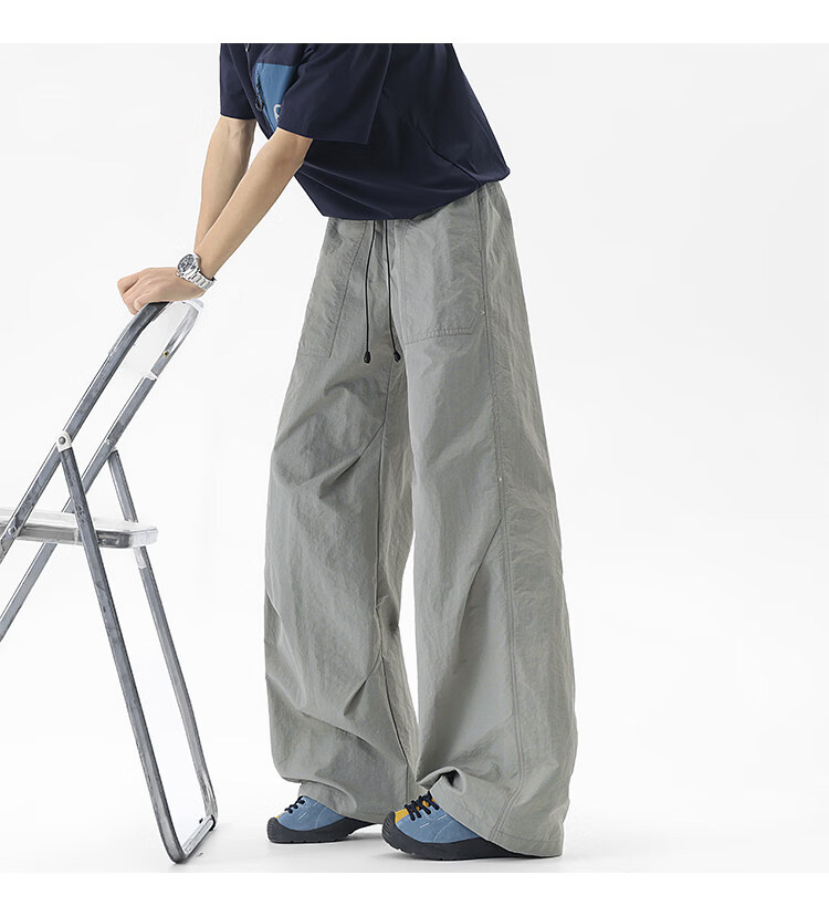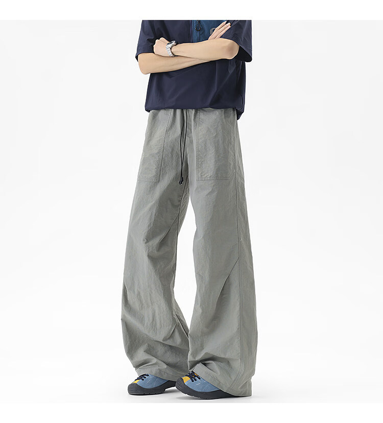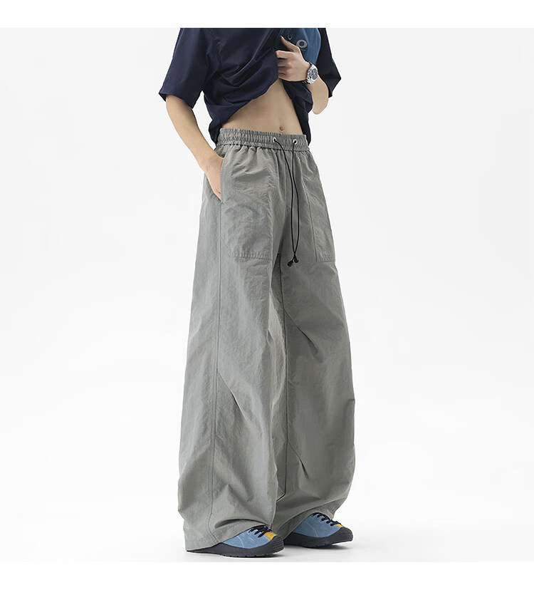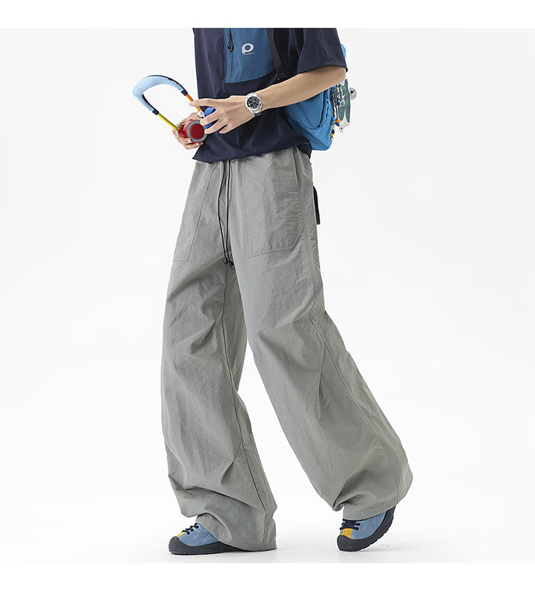 NEW OR MODE户外机能运动登山工装裤子男夏季新款透气宽松褶皱垂感休闲阔腿裤 黑色【高品质】 M 【建议90-110斤】
