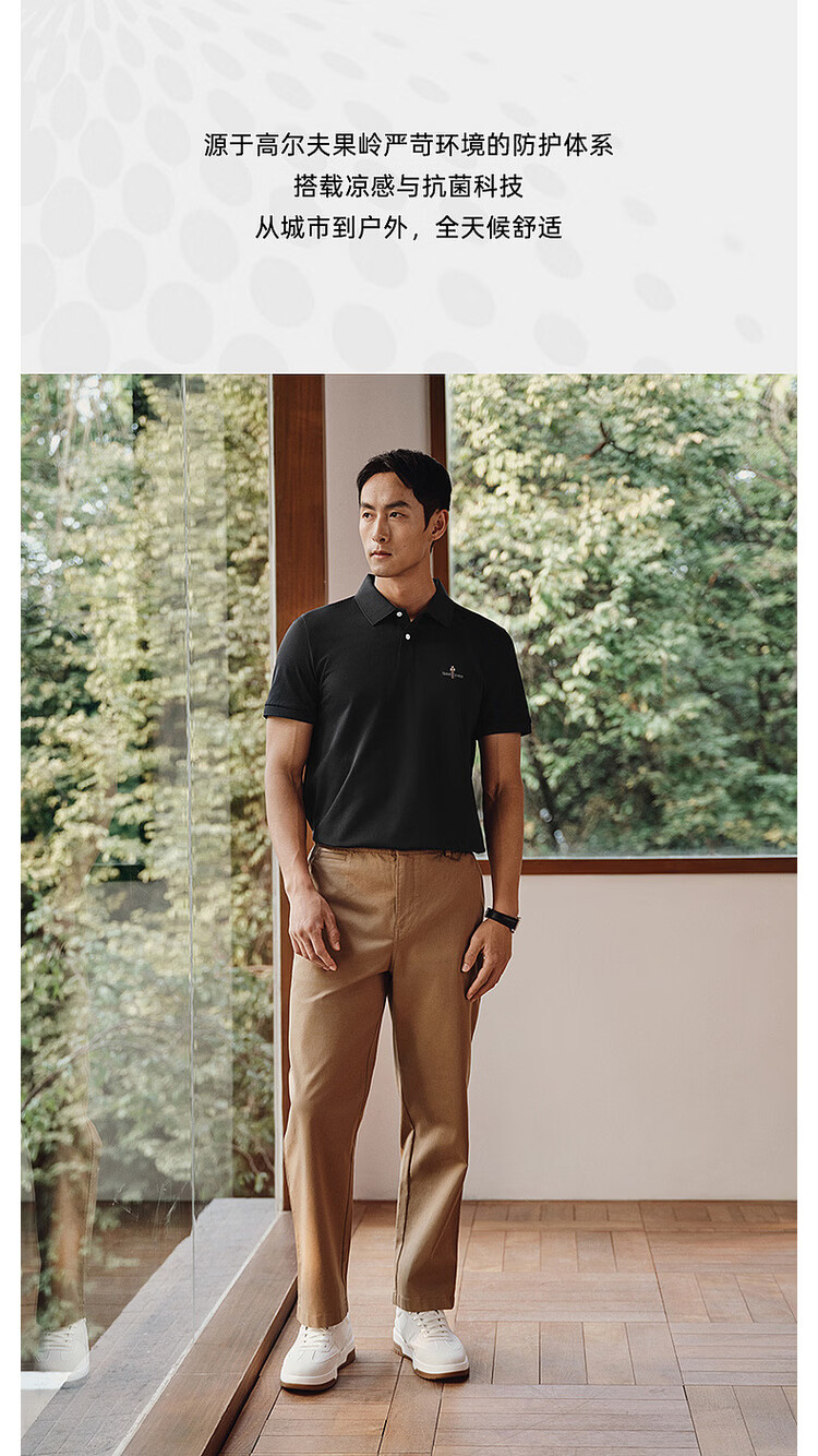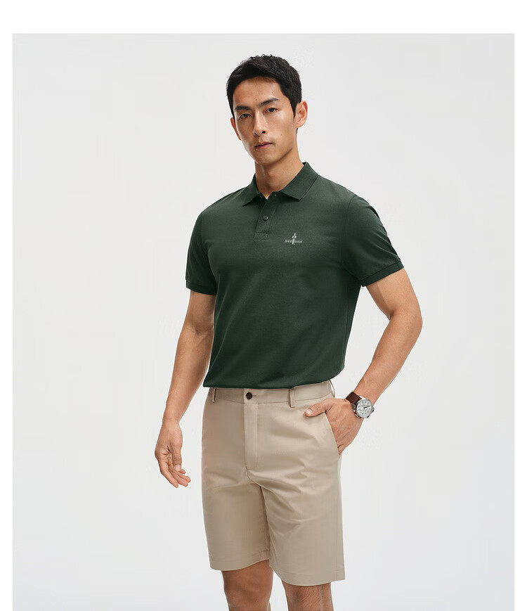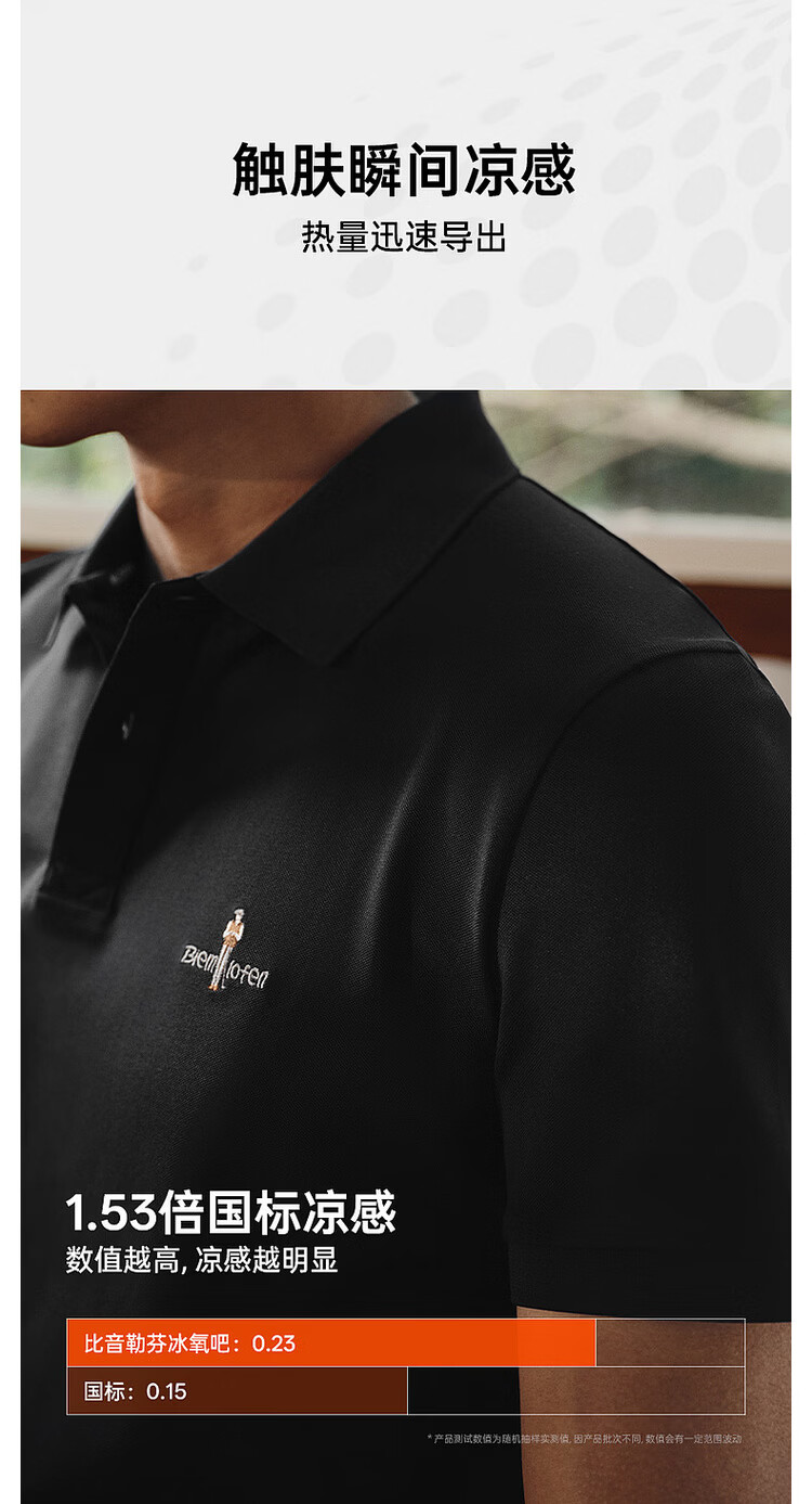 比音勒芬【冰氧吧】夏季款男士时尚休闲上衣多色抗菌凉感舒弹短袖POLO衫T 14浅绿色 3XL (120)