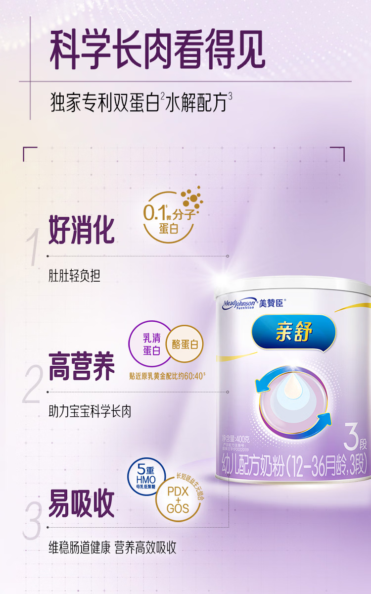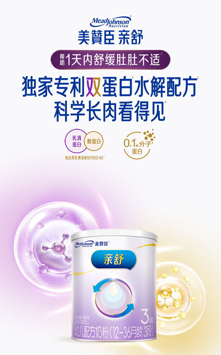 美赞臣亲舒3段幼儿配方奶粉12-36个月400g罐 部分水解蛋白