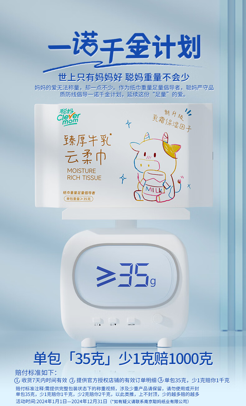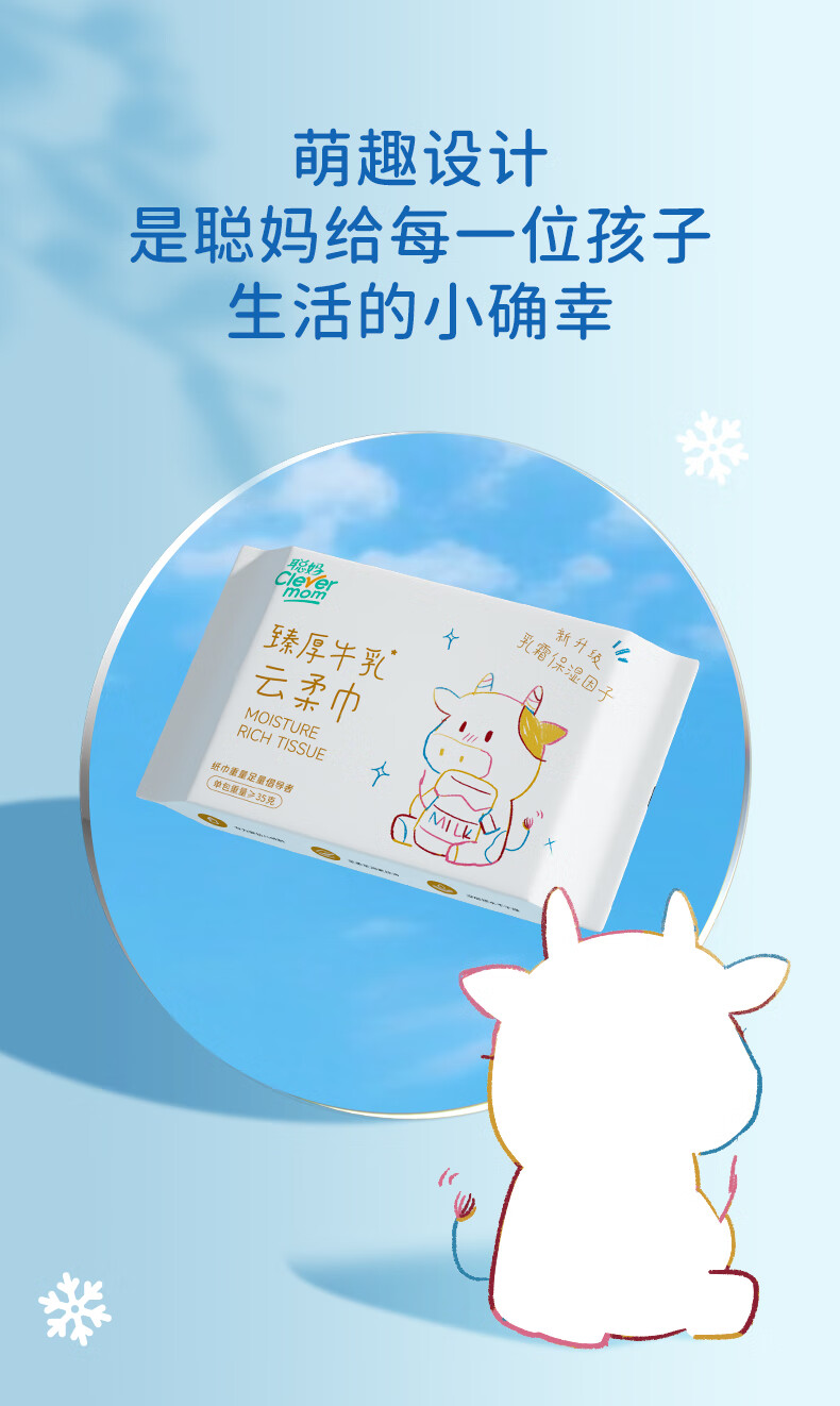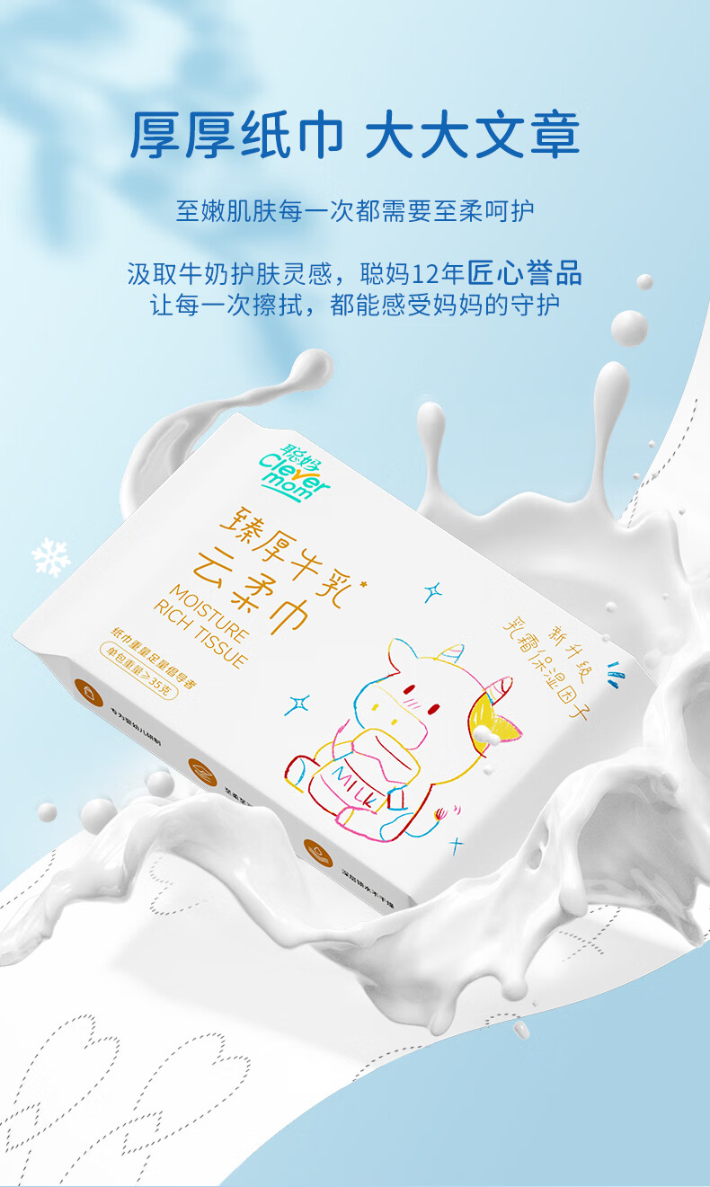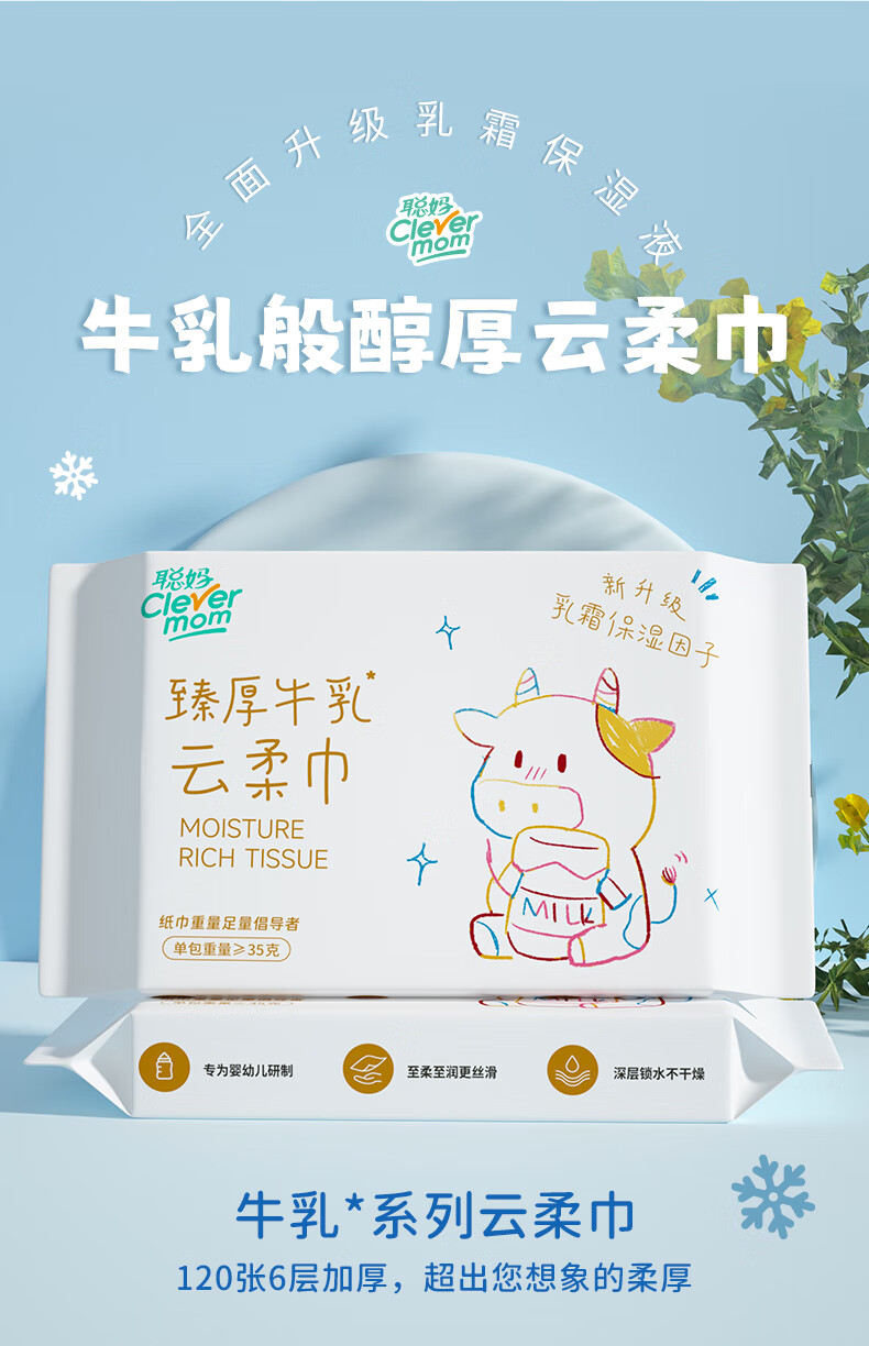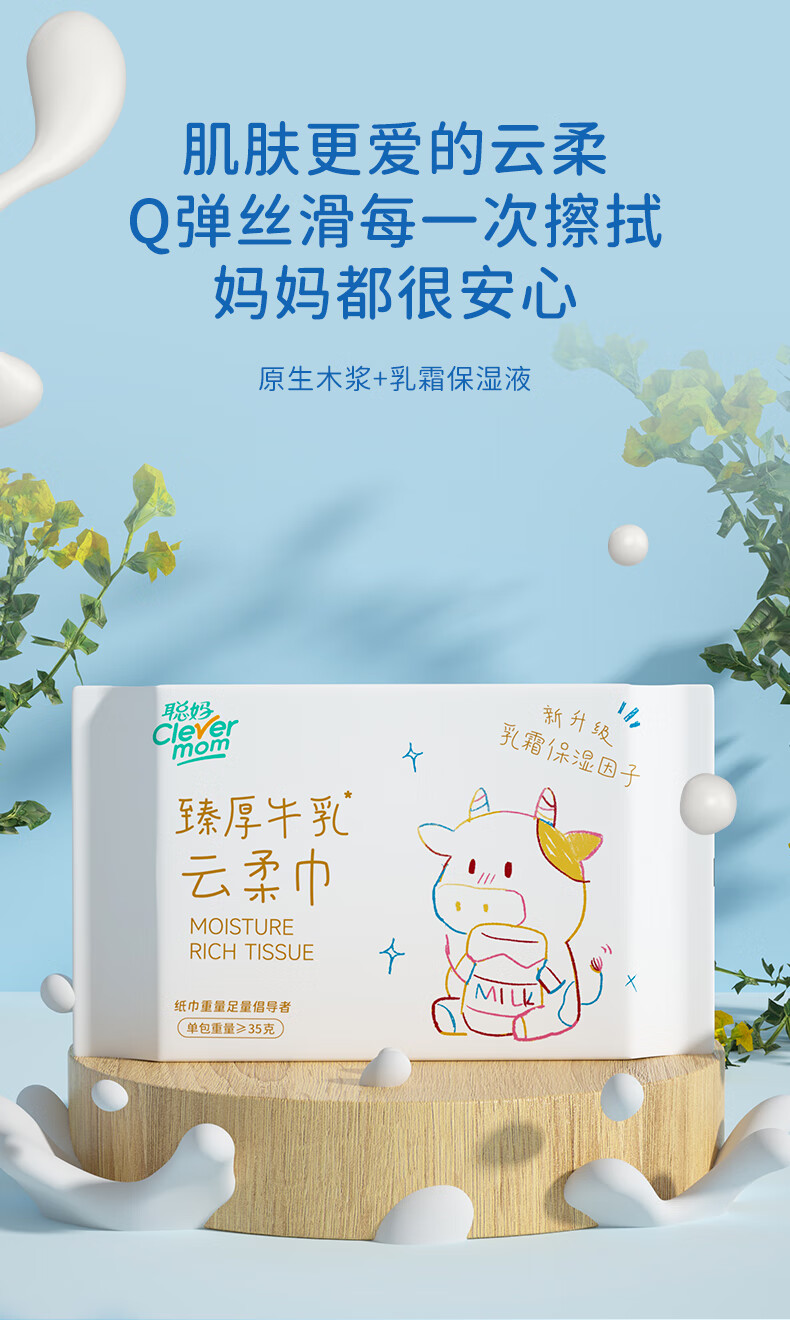 聪妈乳霜纸云柔巾牛乳纸柔纸巾柔润保湿婴儿纸巾抽纸宝宝家庭装擦脸 牛乳乳霜纸 6层 20抽*4包