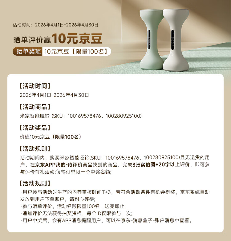 米家智能哑铃 男女家用家庭健身肌肉塑形手臂轻重量浅沙色 1kg*2