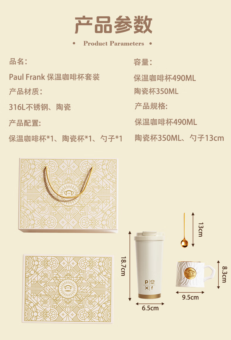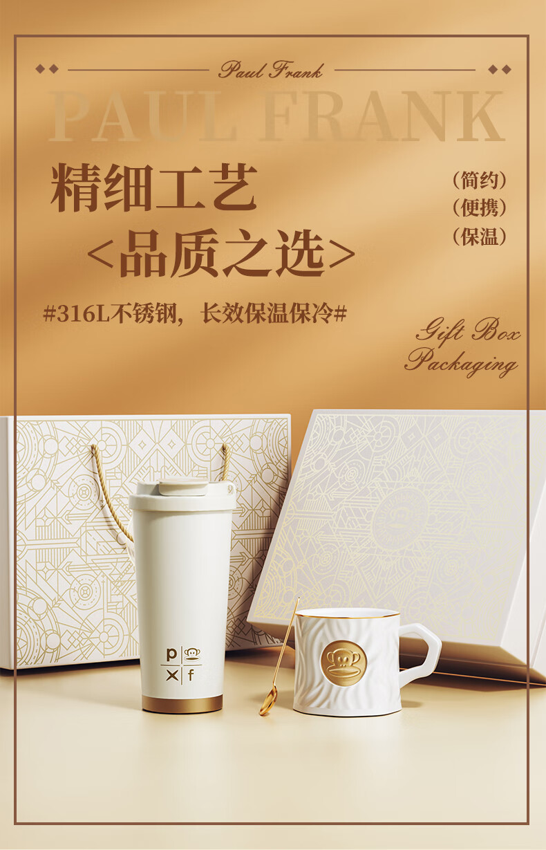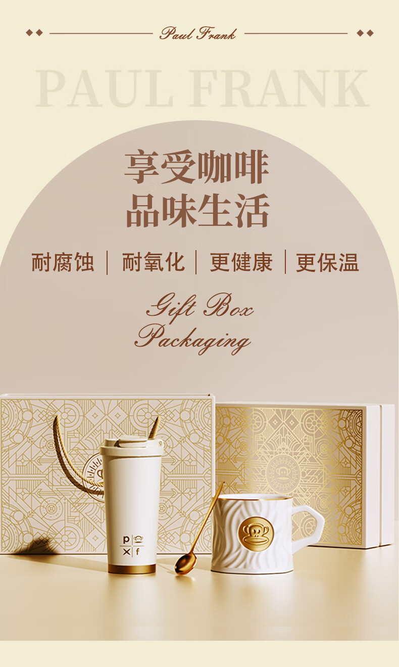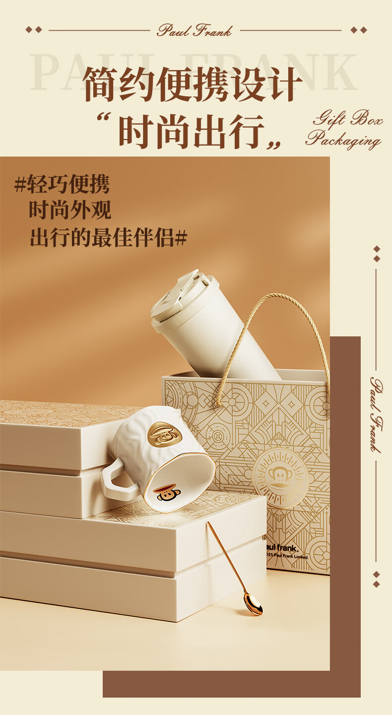 paul frank咖啡杯三件套PFC919T保温杯马克杯套装颜色随机发货