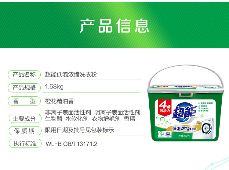 超能 低泡浓缩洗衣粉 橙花精油香 3.36斤 4倍洁净力 低泡易漂