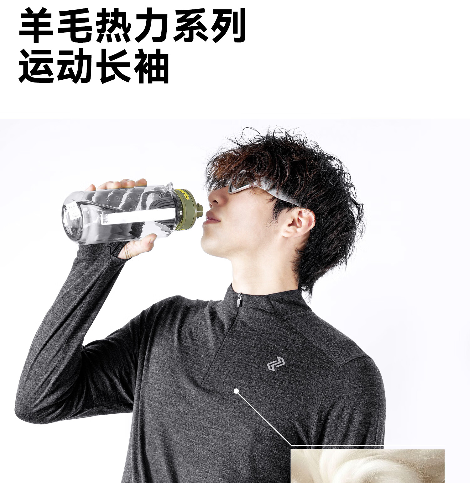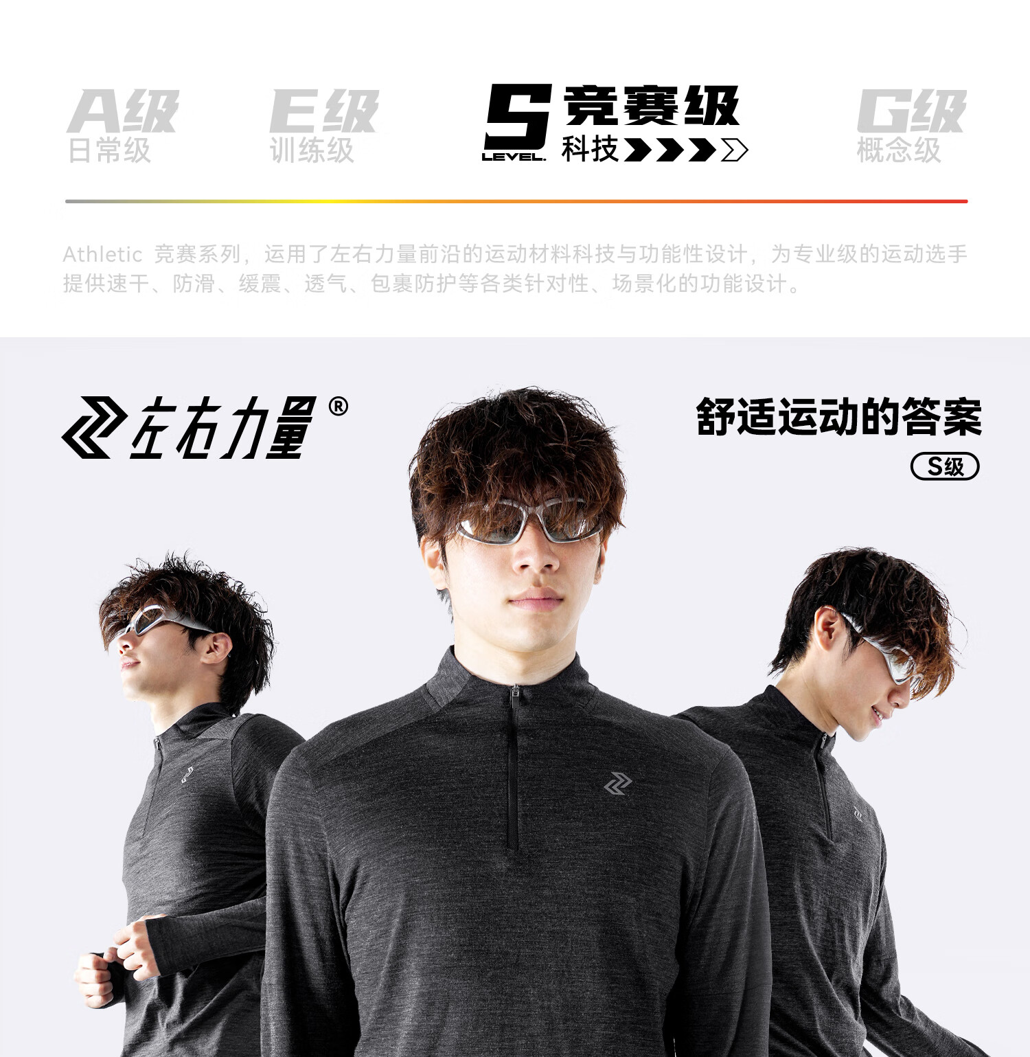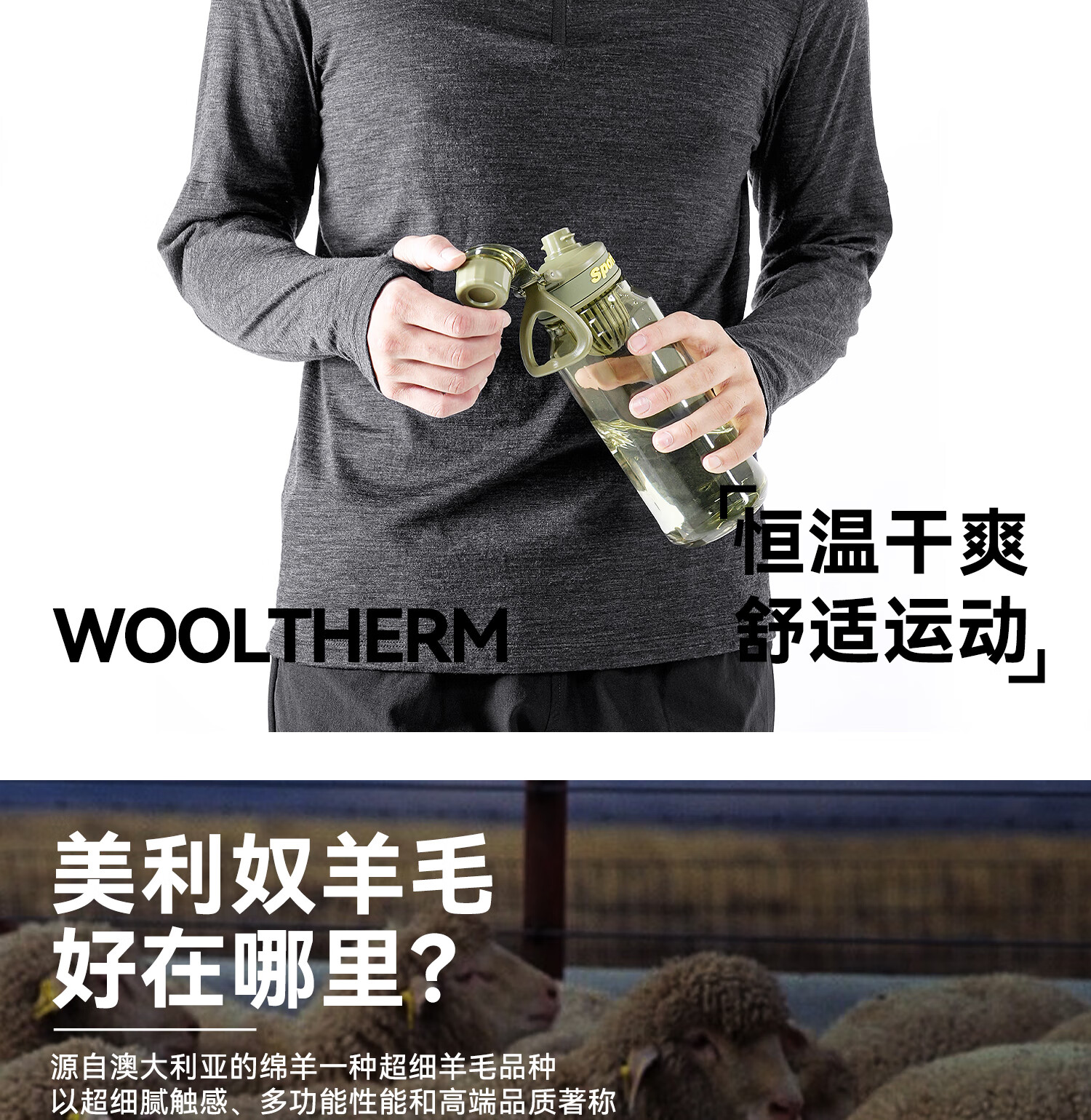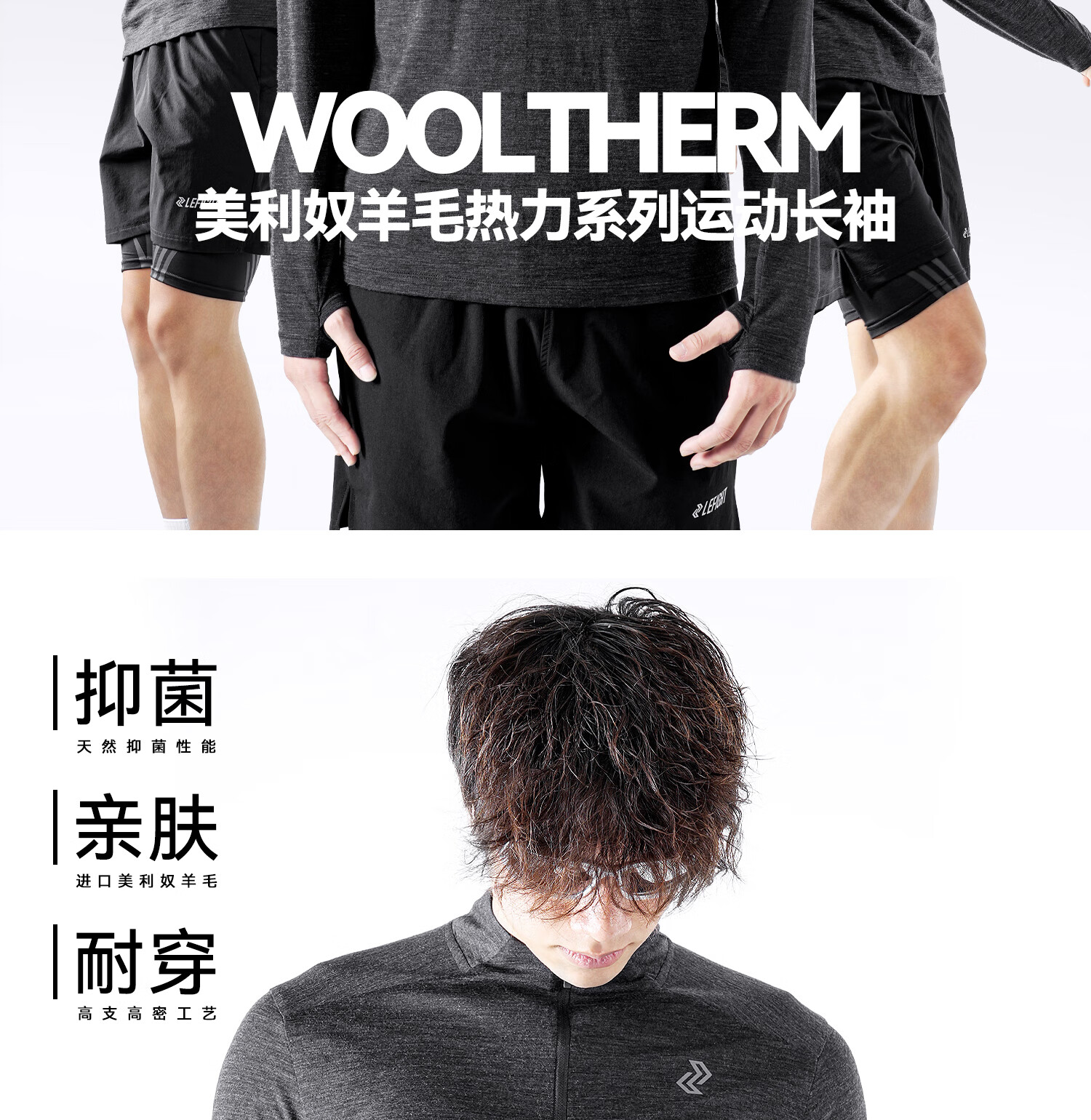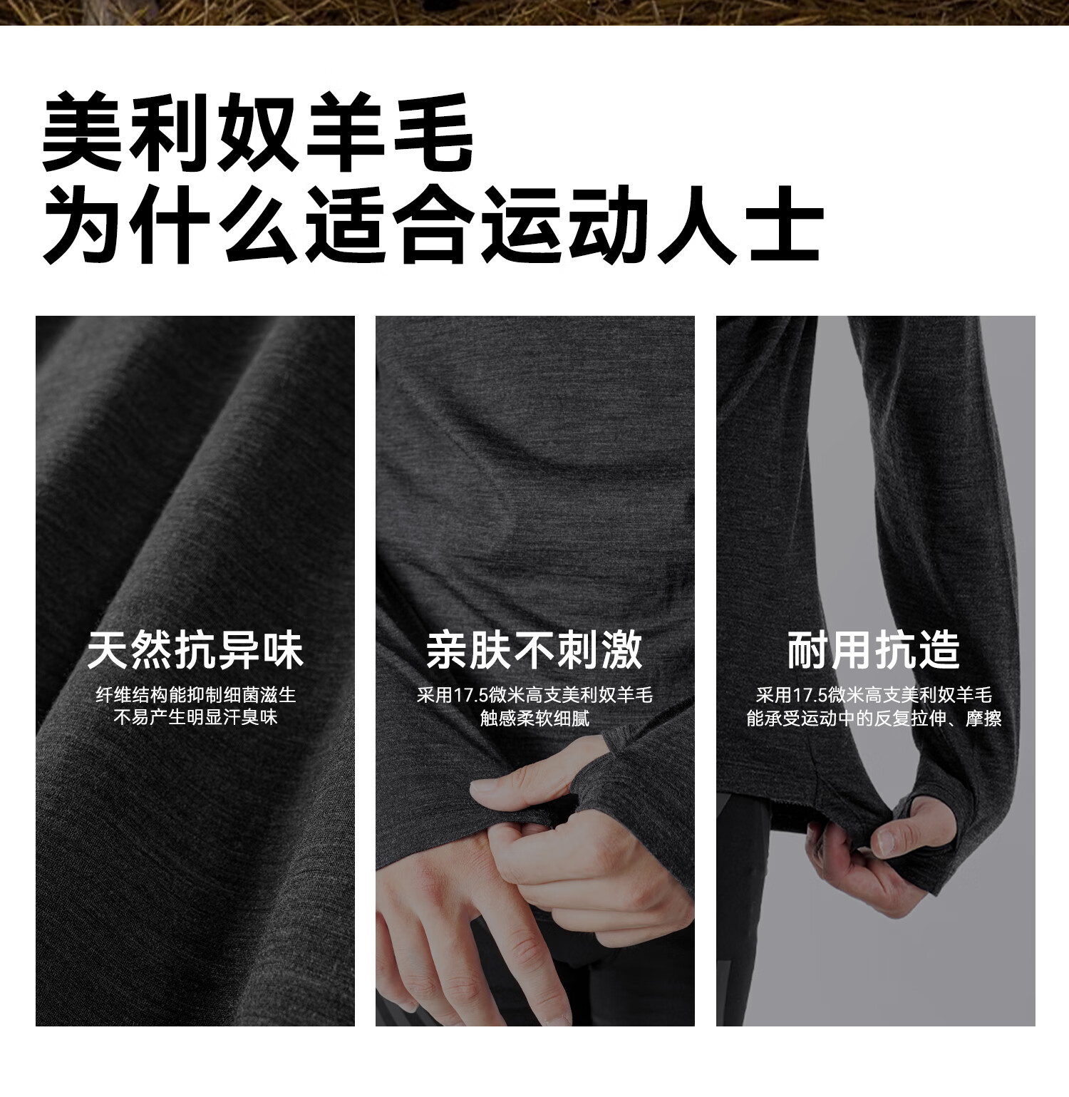 左右力量美利奴羊毛速干透气长袖偏宽松男士运动T恤户外运动跑步 黑色 XL