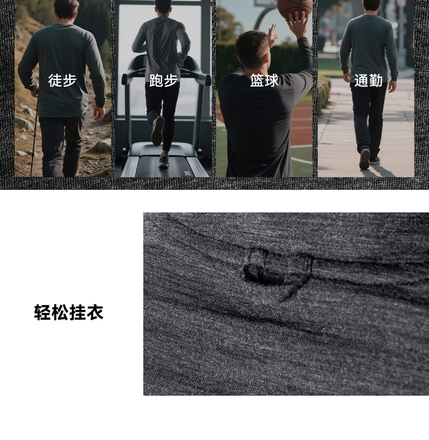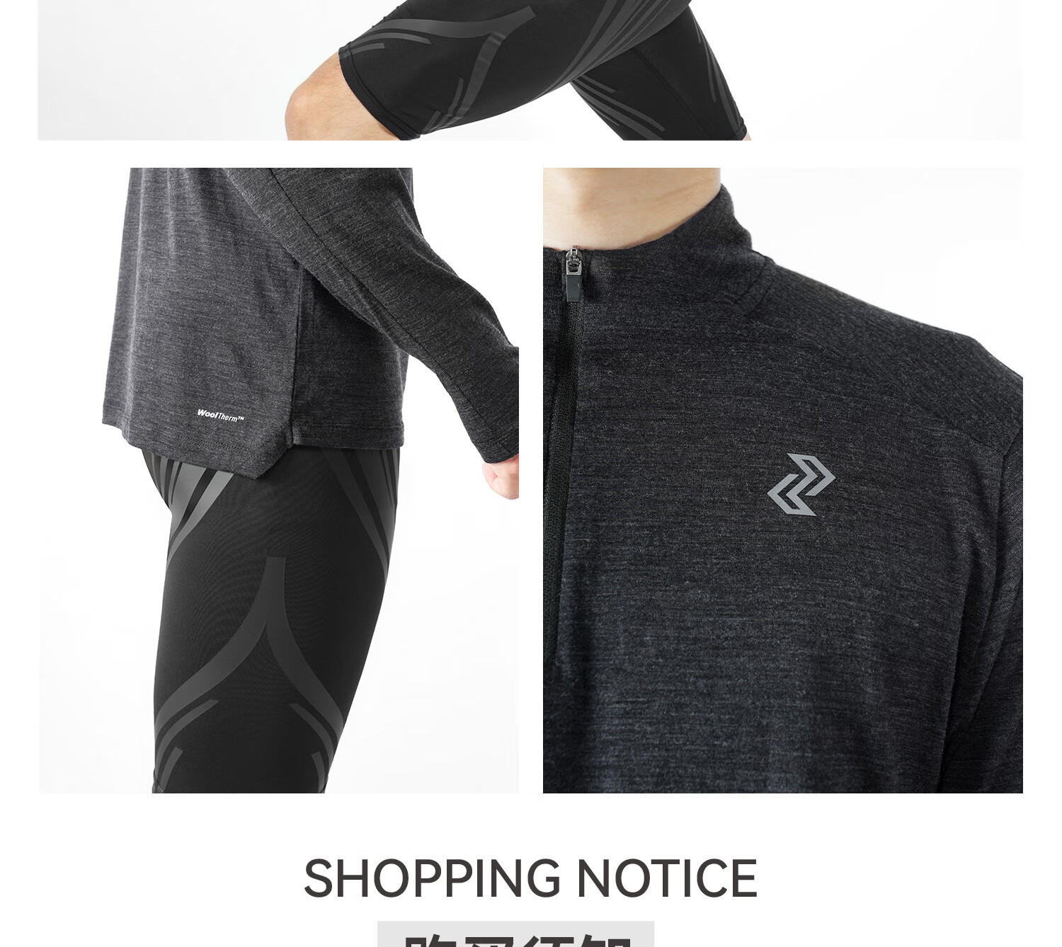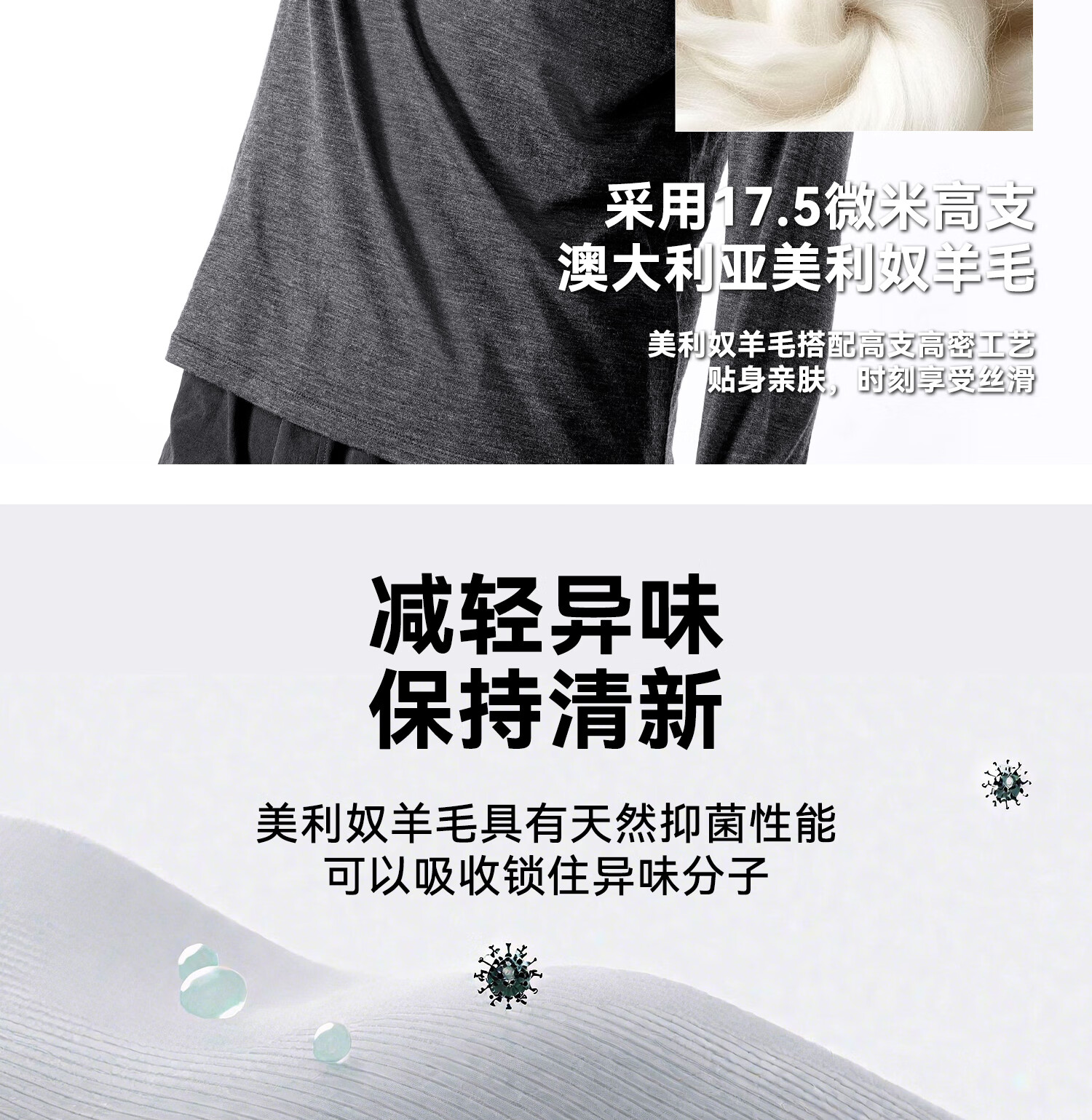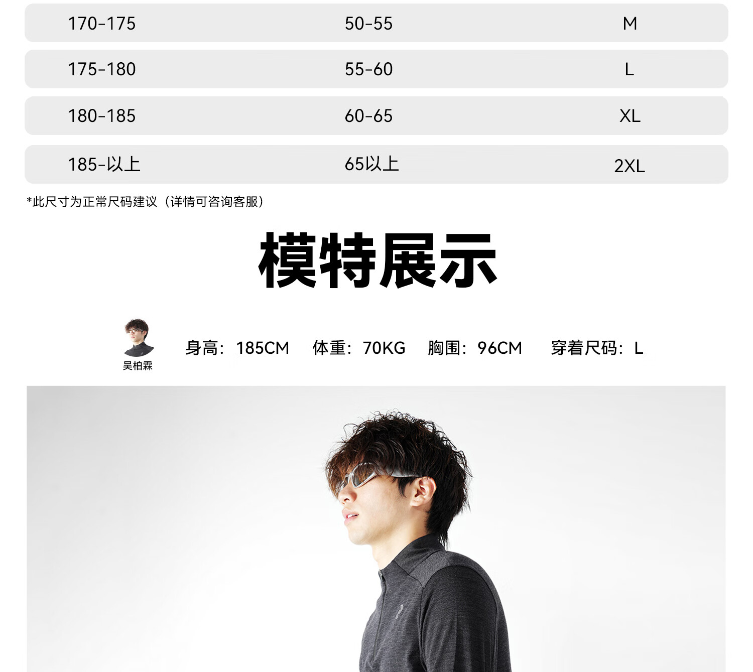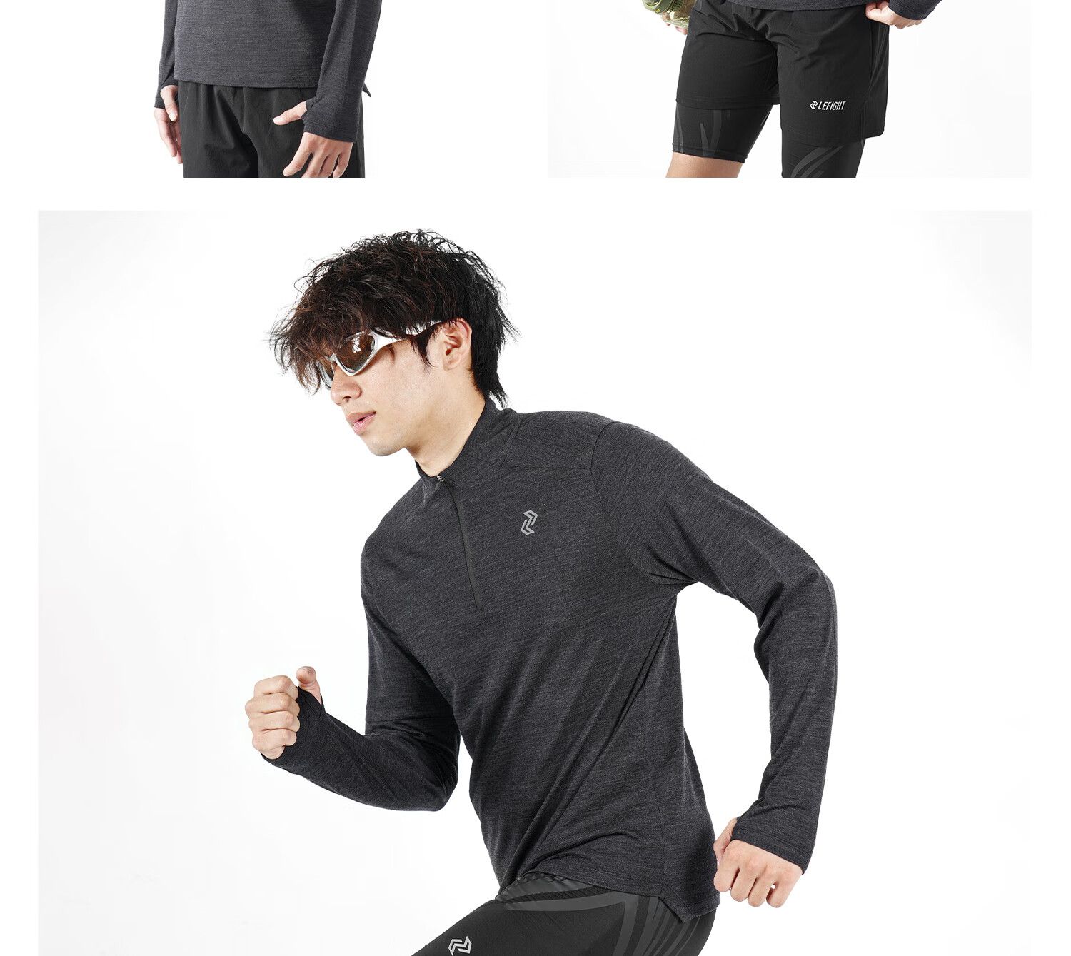 左右力量美利奴羊毛速干透气长袖偏宽松男士运动T恤户外运动跑步 黑色 XL