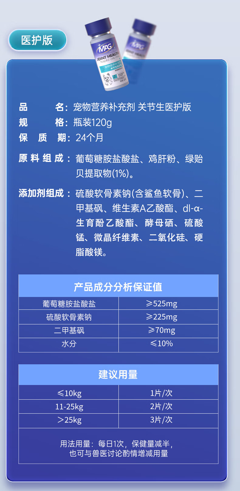 MAG【警犬基地认证】狗狗鲨鱼软骨素医护版120g 宠物钙片犬用关节生