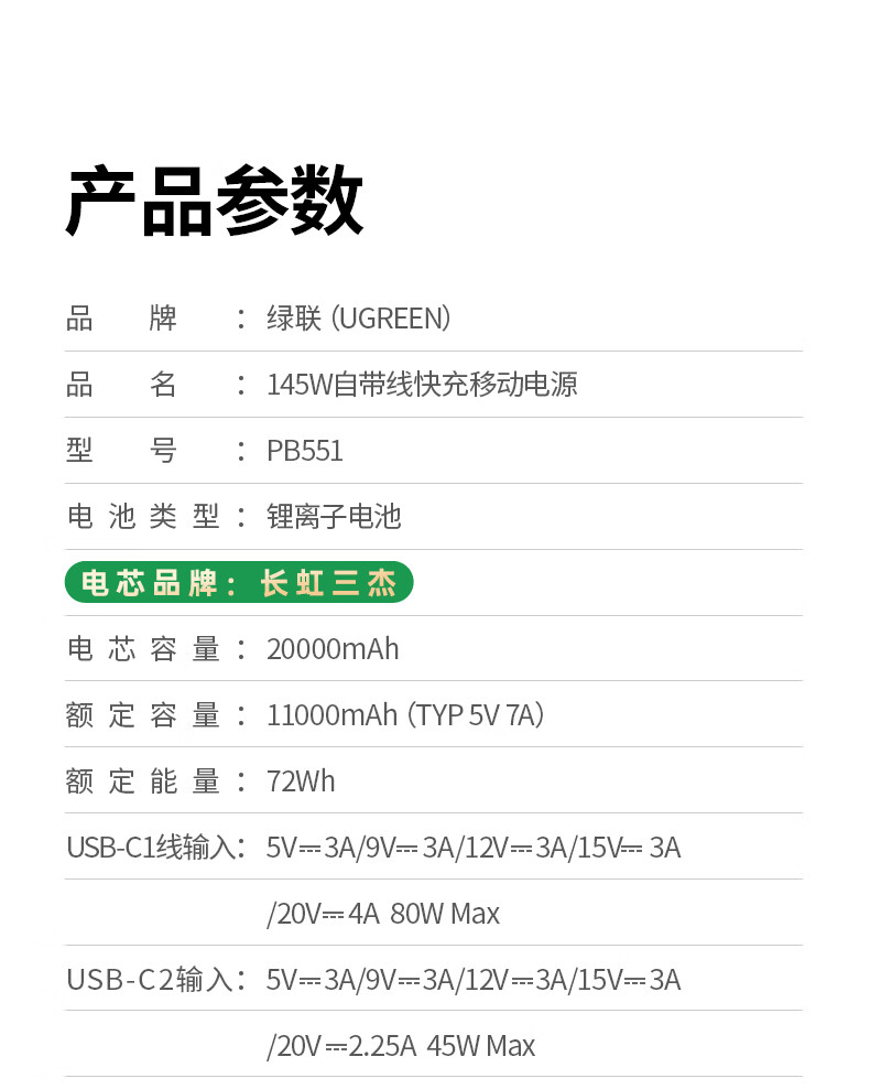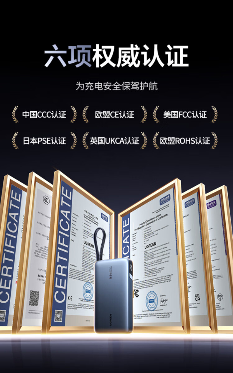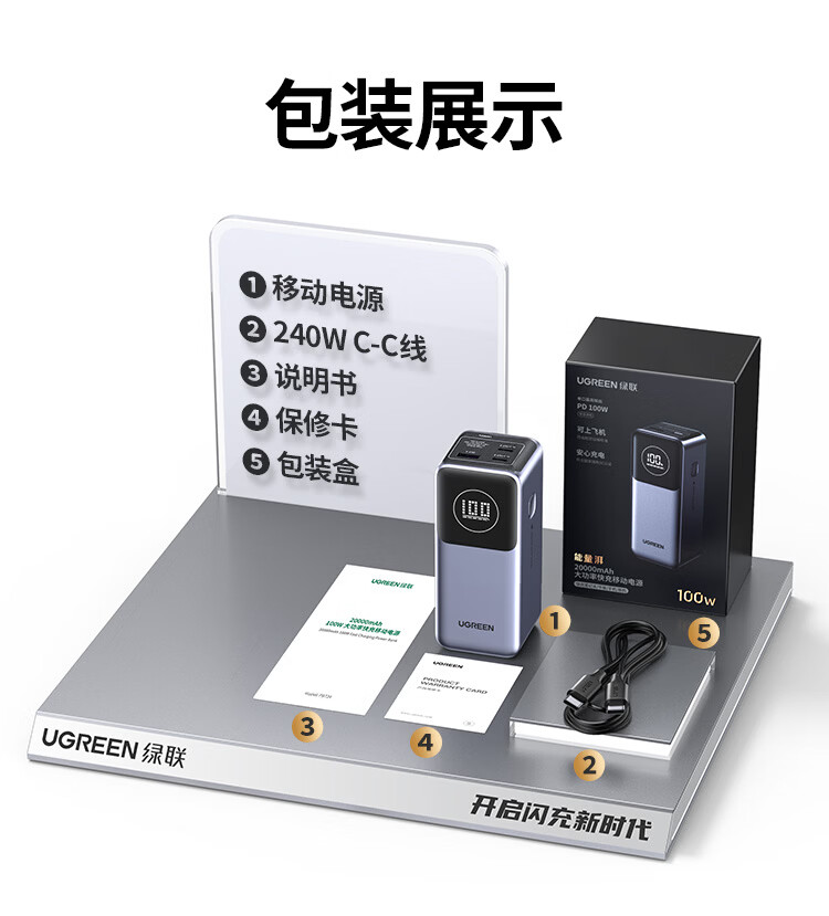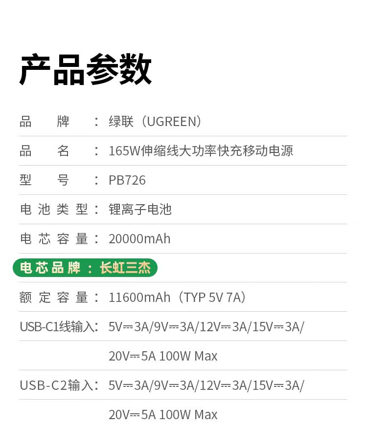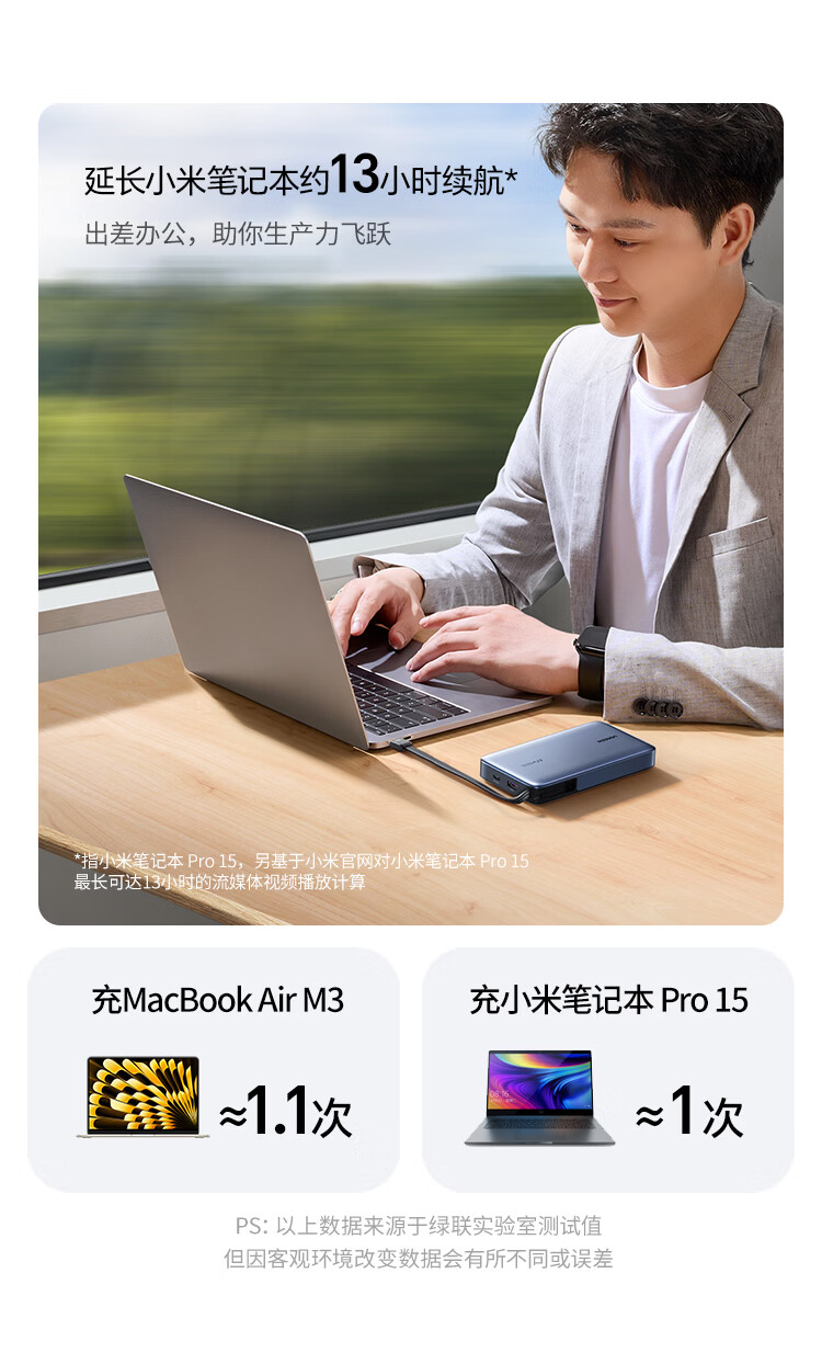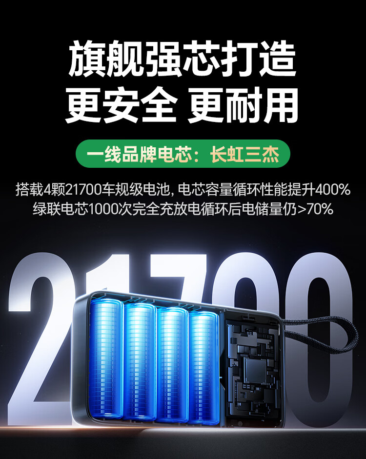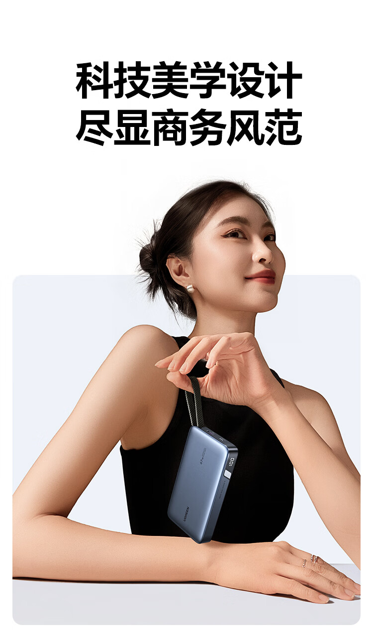 绿联【3C认证可上飞机】充电宝20000毫安67W自带线大功率快充 适用于苹果17小米华为笔记本电脑 【67W自带线】支持笔记本快充
