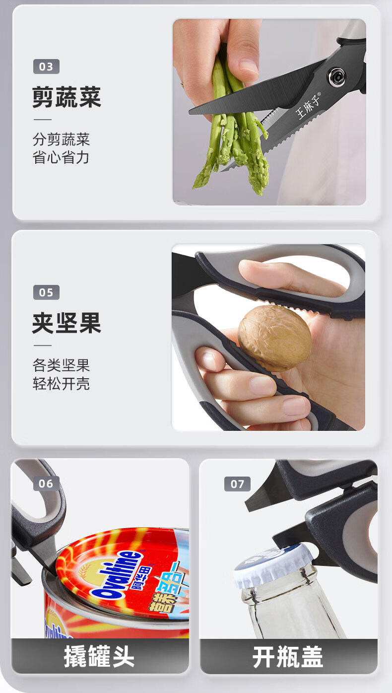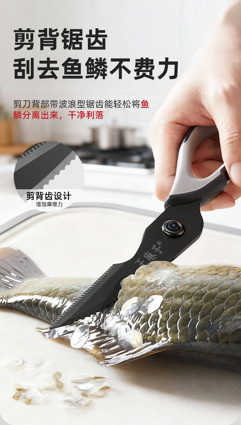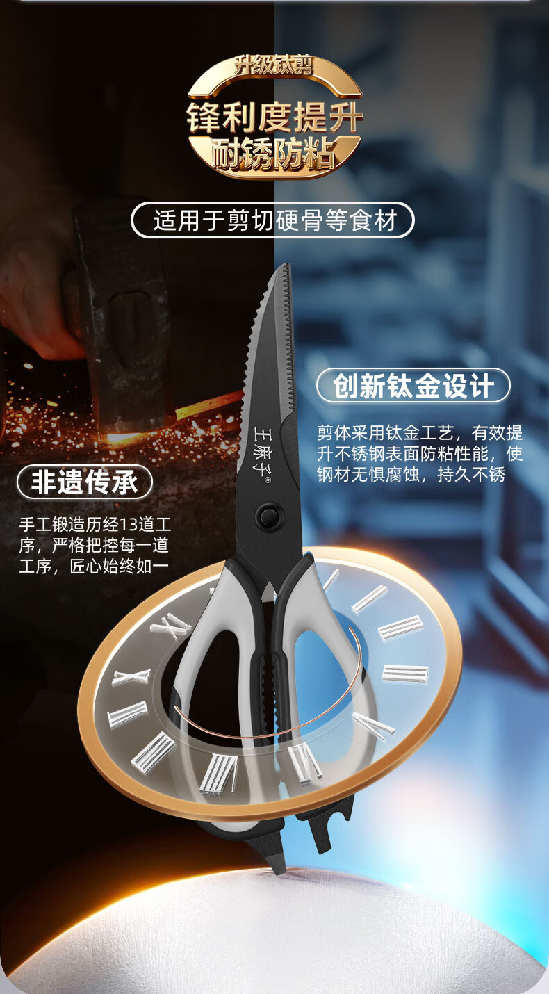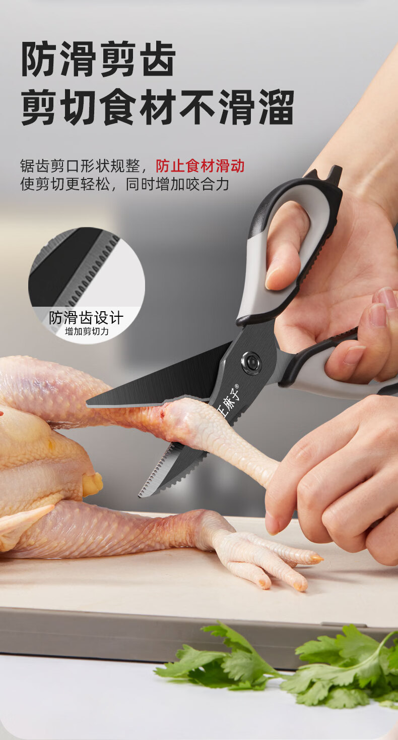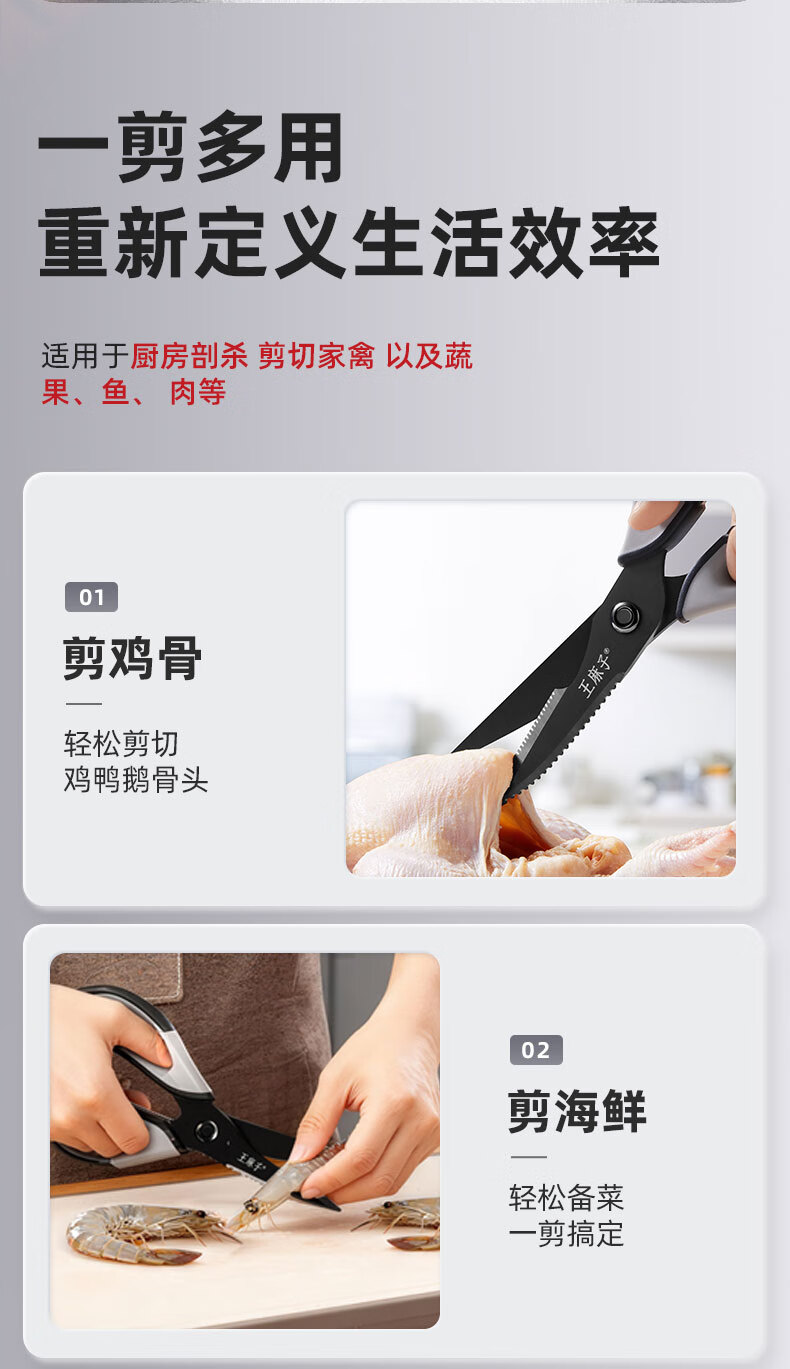 王麻子厨房剪刀 多功能厨房专用剪骨刀 剪鸡骨肉大剪子【食品级钛防锈】