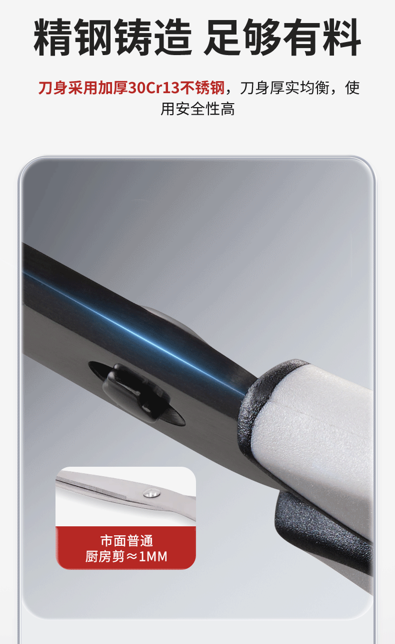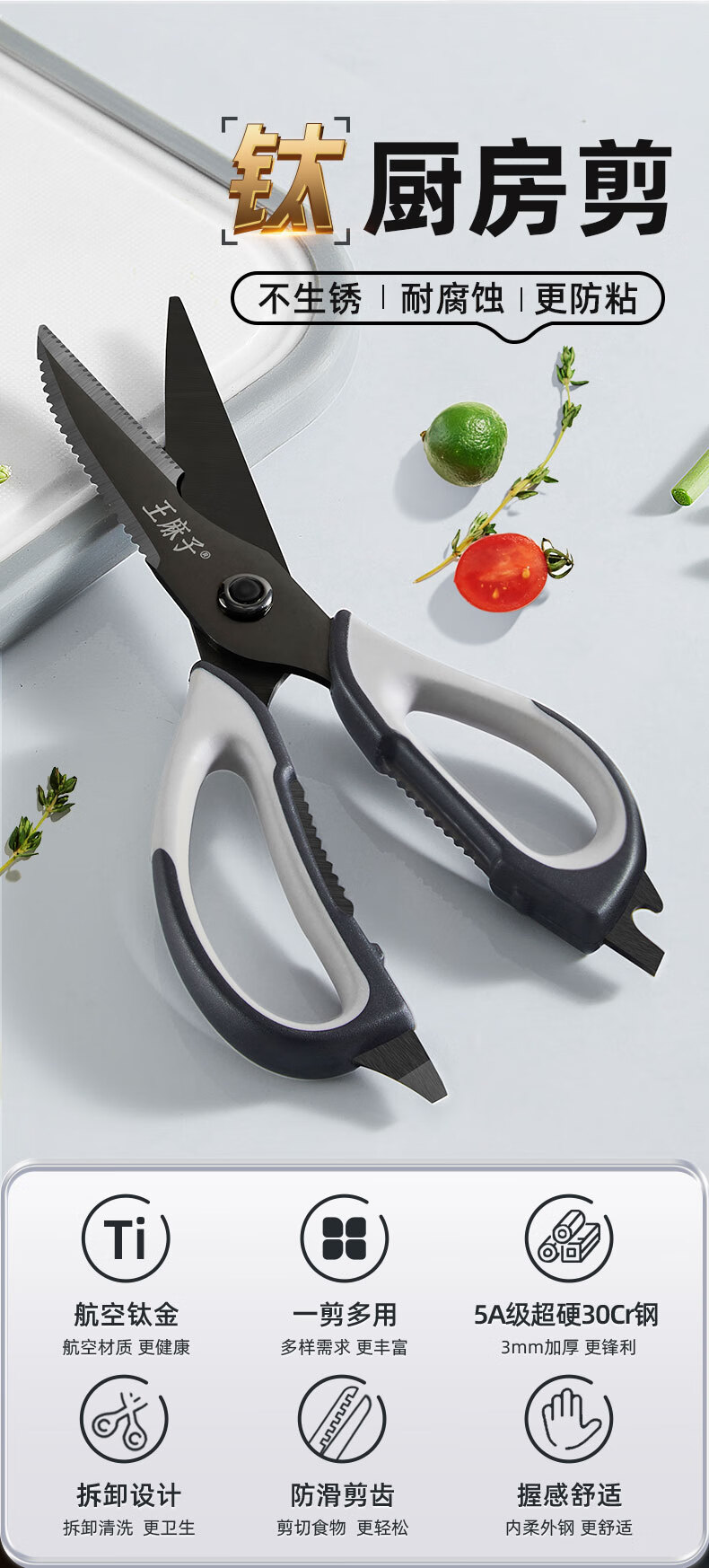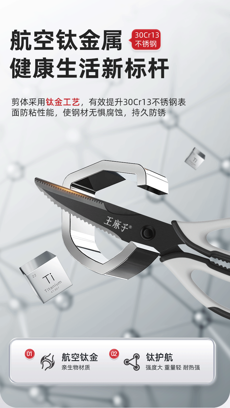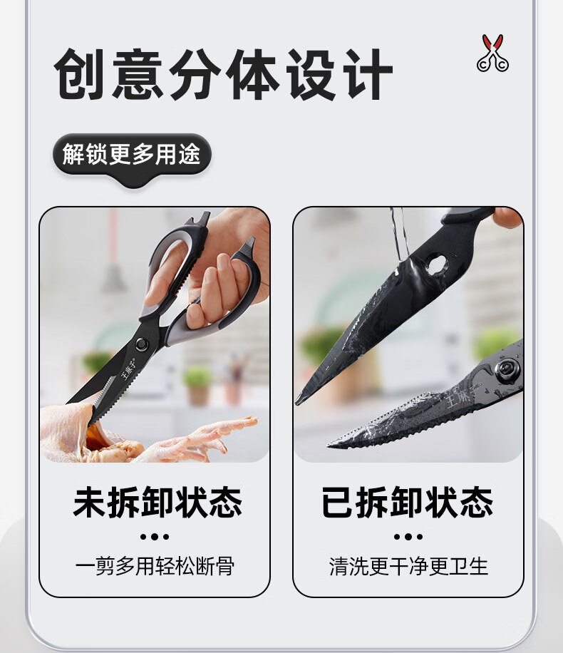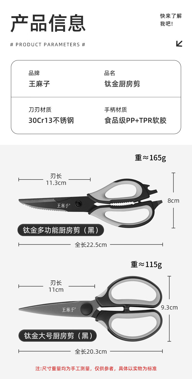 王麻子厨房剪刀 多功能厨房专用剪骨刀 剪鸡骨肉大剪子【食品级钛防锈】